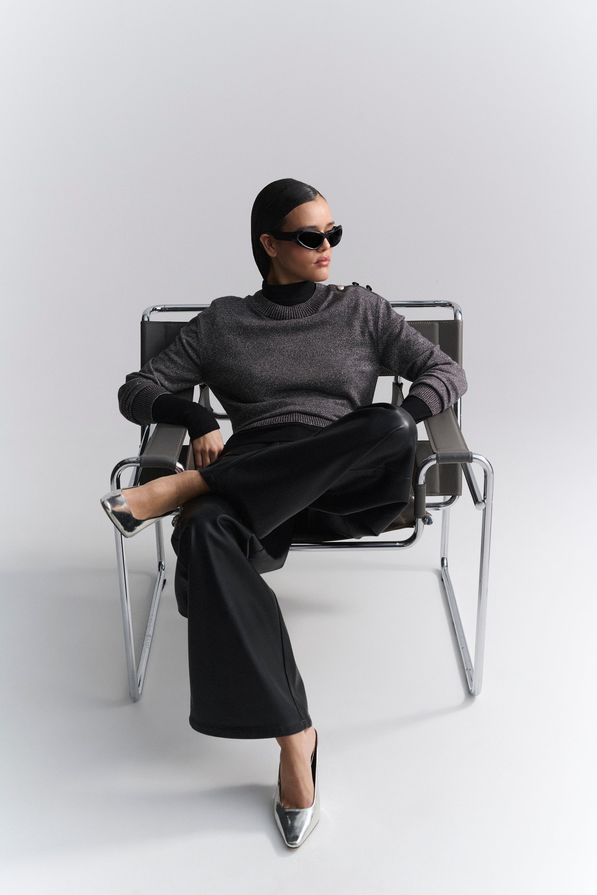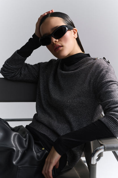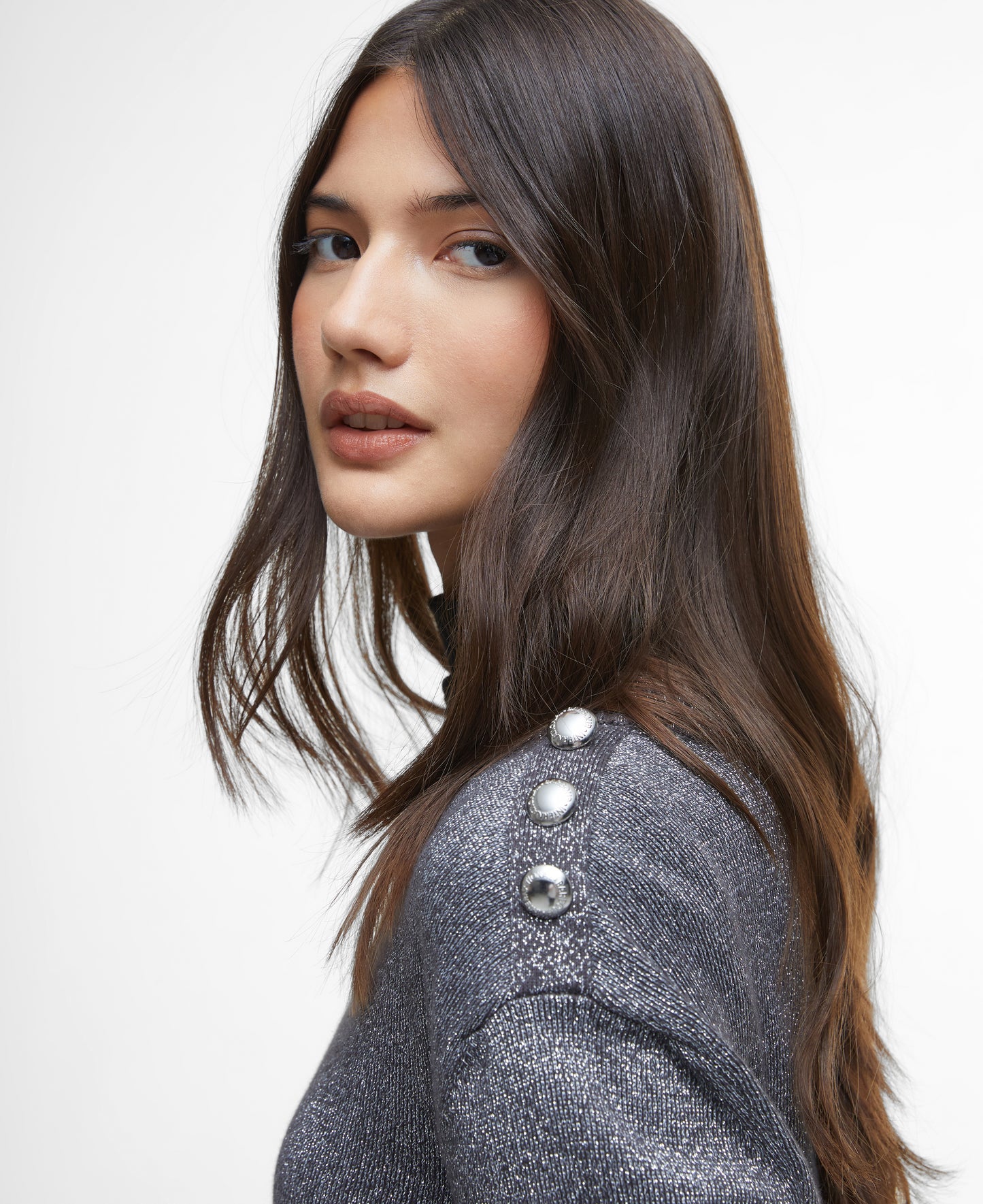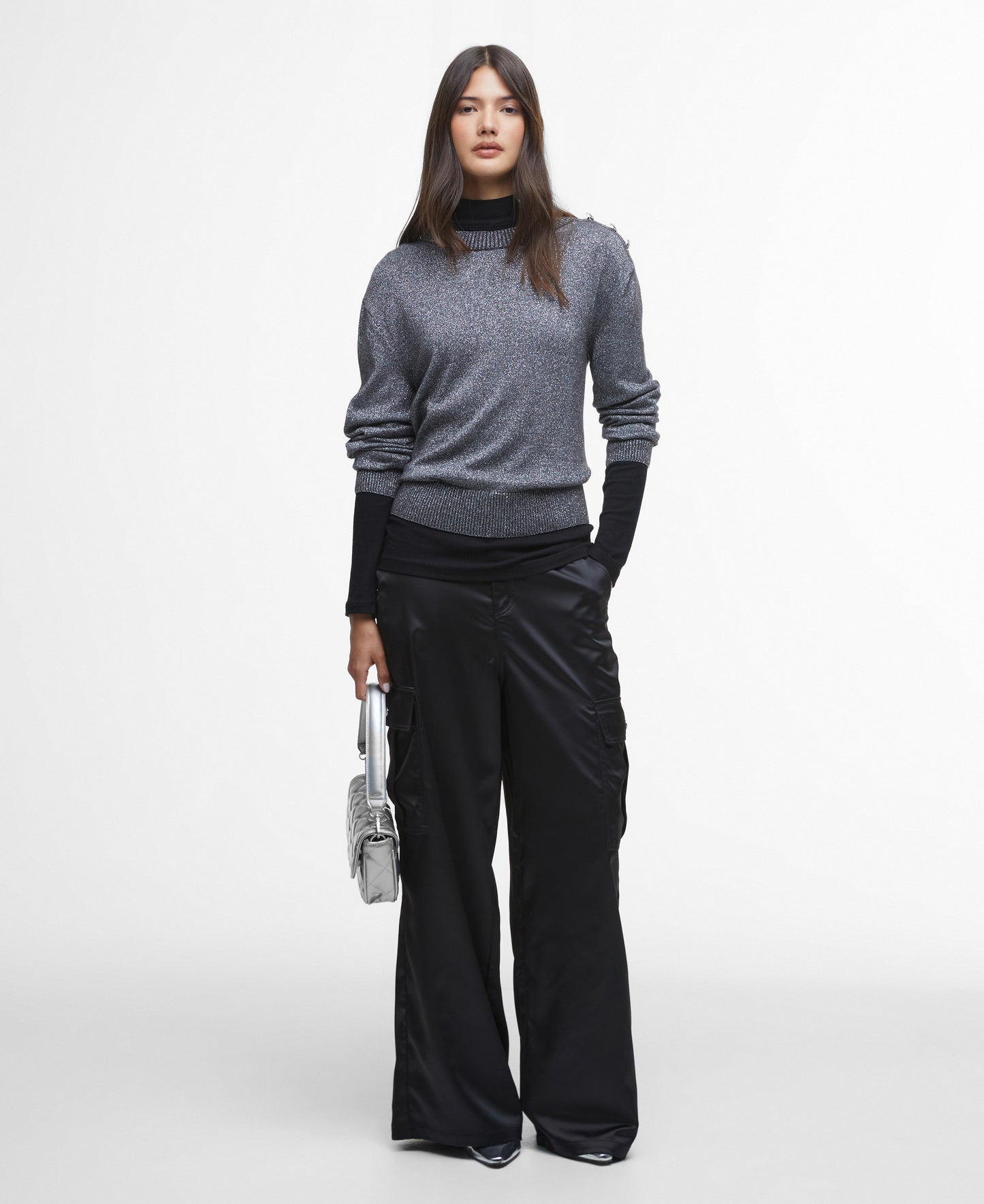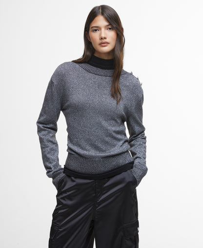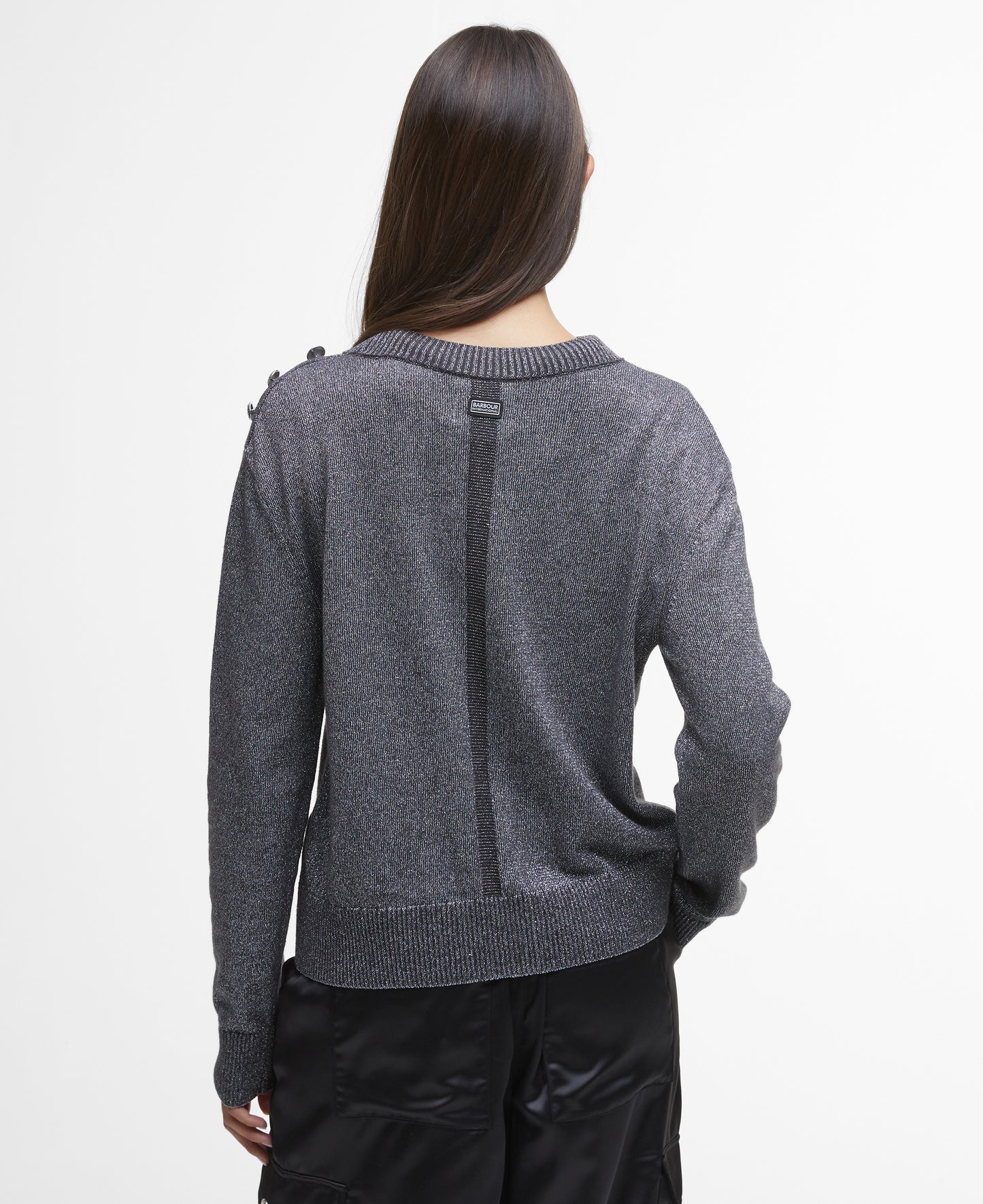 This season, we have reset our palette to bring you a new selection of bold metallics for a timeless dose of attitude. Even our knitwear has recieved a shimmering innovation with the B.Intl Jade Crew Neck Jumper woven with metallic threads and bright silver branded buttons to the left shoulder. Finished with a BI logo badge to the back of the neck, there's no denying this is a Barbour International staple.