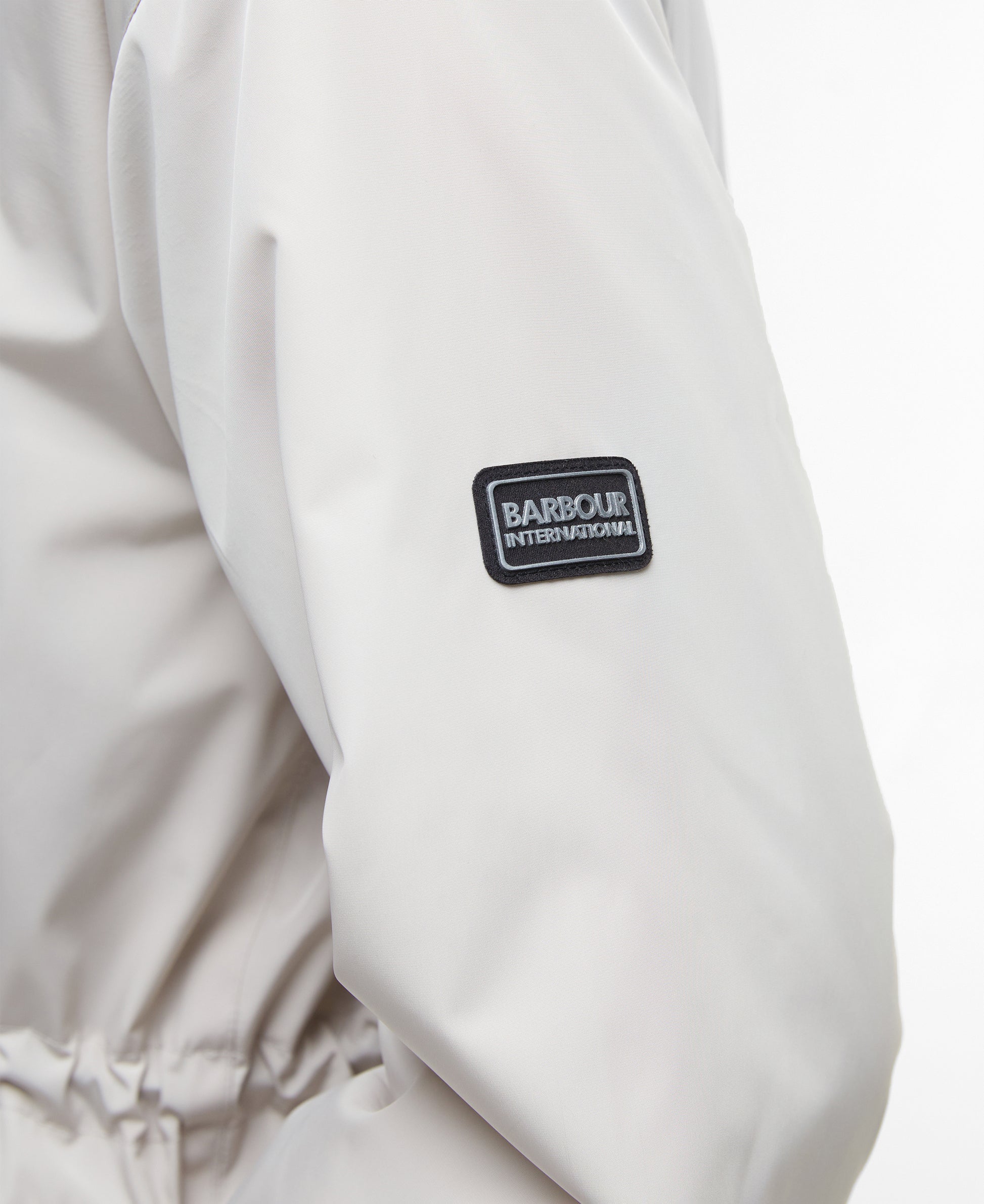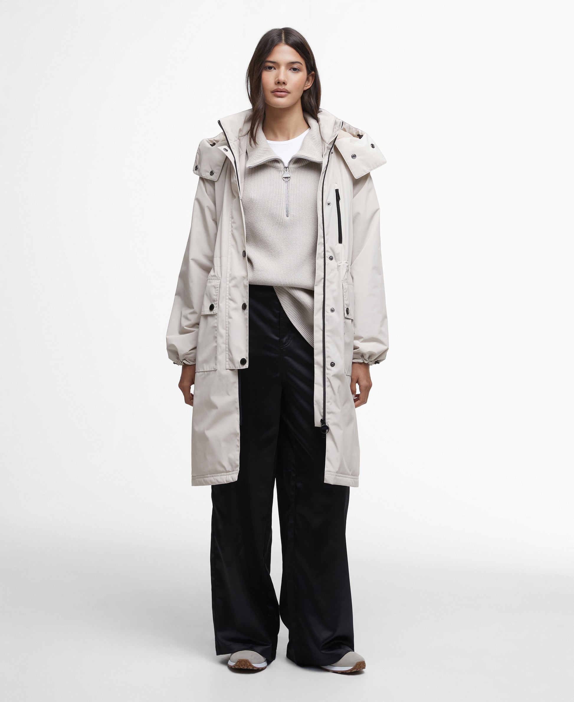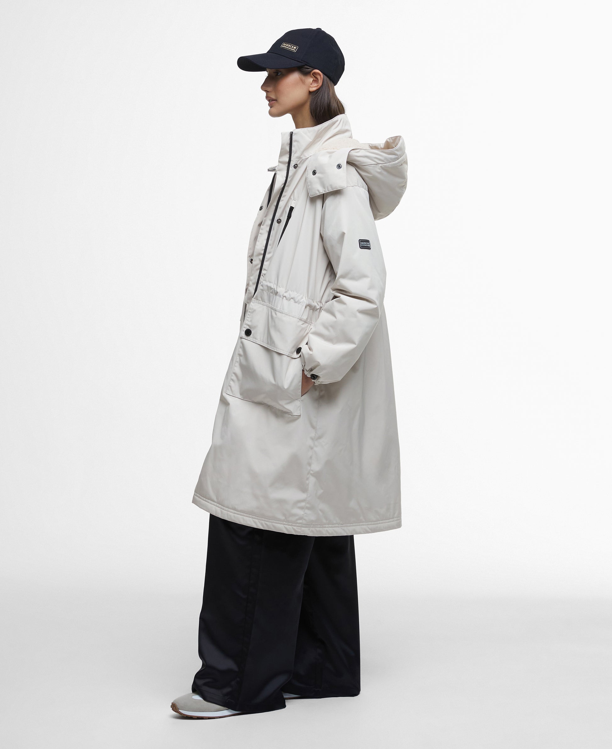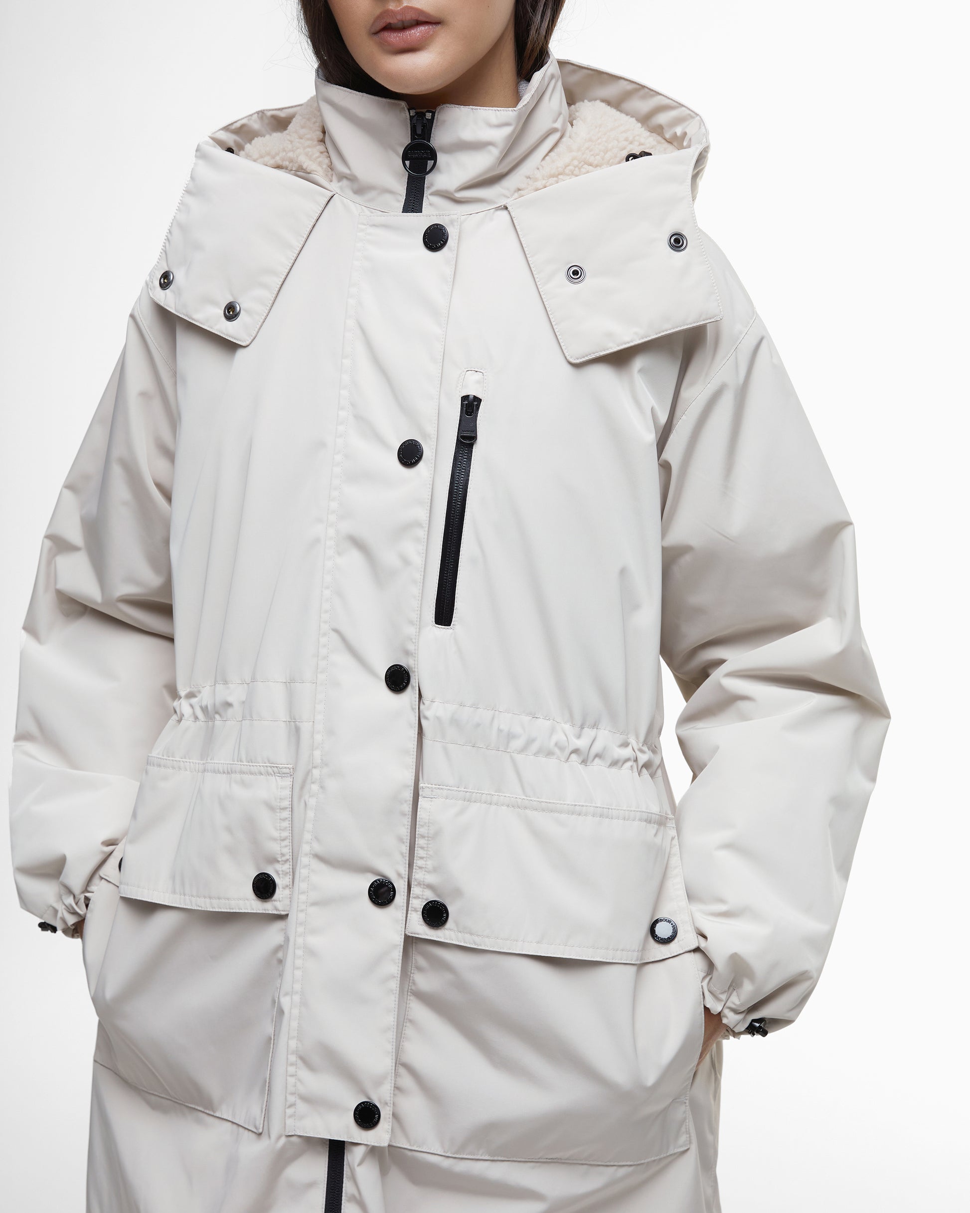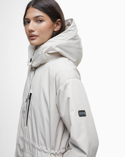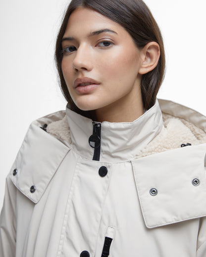 Made for the unpredictability of classic British weather, the B.Intl Kaylee Insulated Showerproof Jacket is a must for your outerwear wardrobe. This mid-length showerproof style is detailed with bold black gloss trims and a sherpa teddy lining to the hood for added warmth. Simply use the drawstring at the waist to cinch in the silhouette and elasticated cuffs to lock out the seasonal chill.
