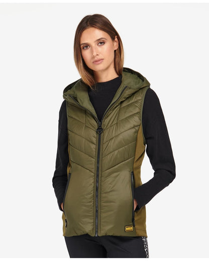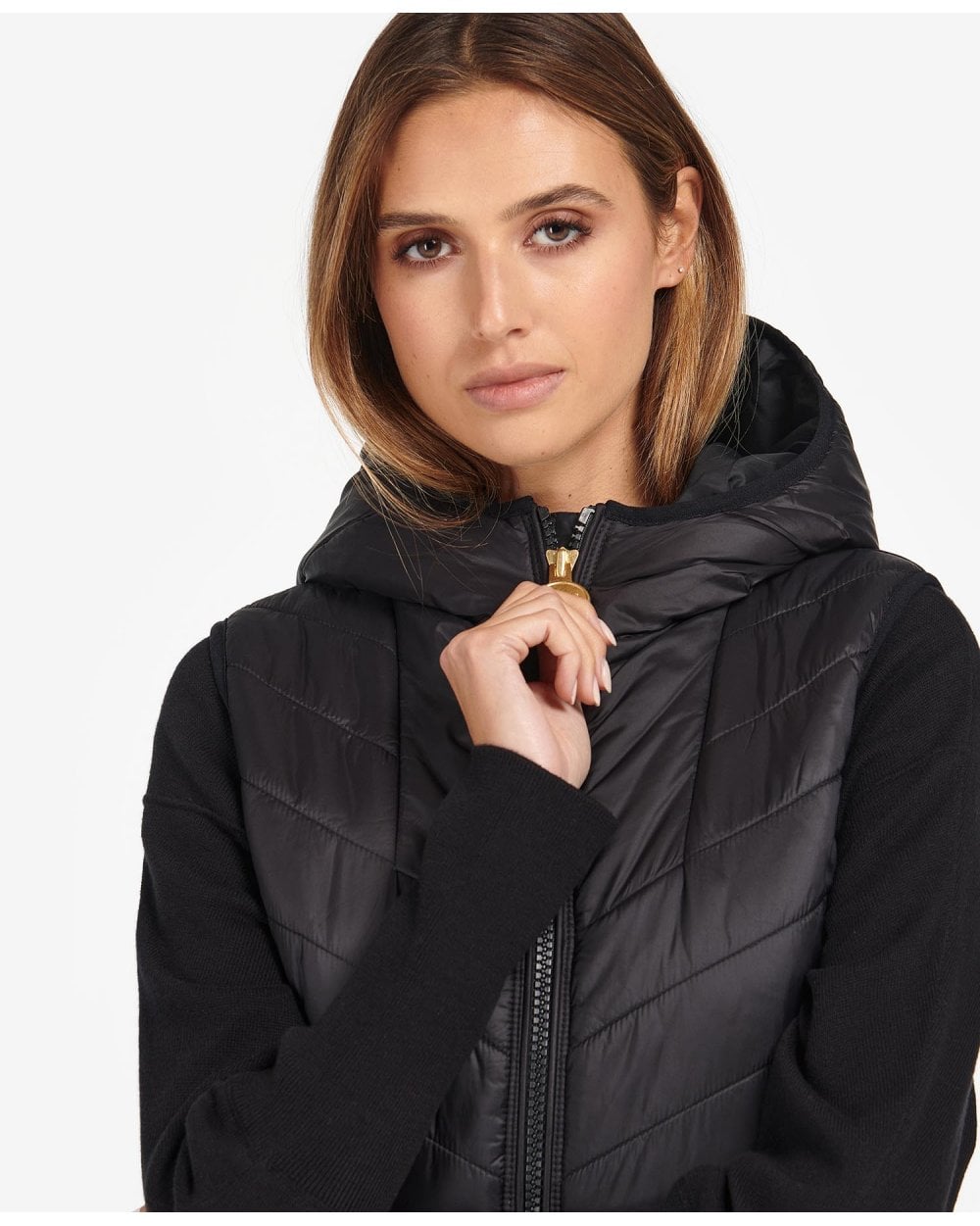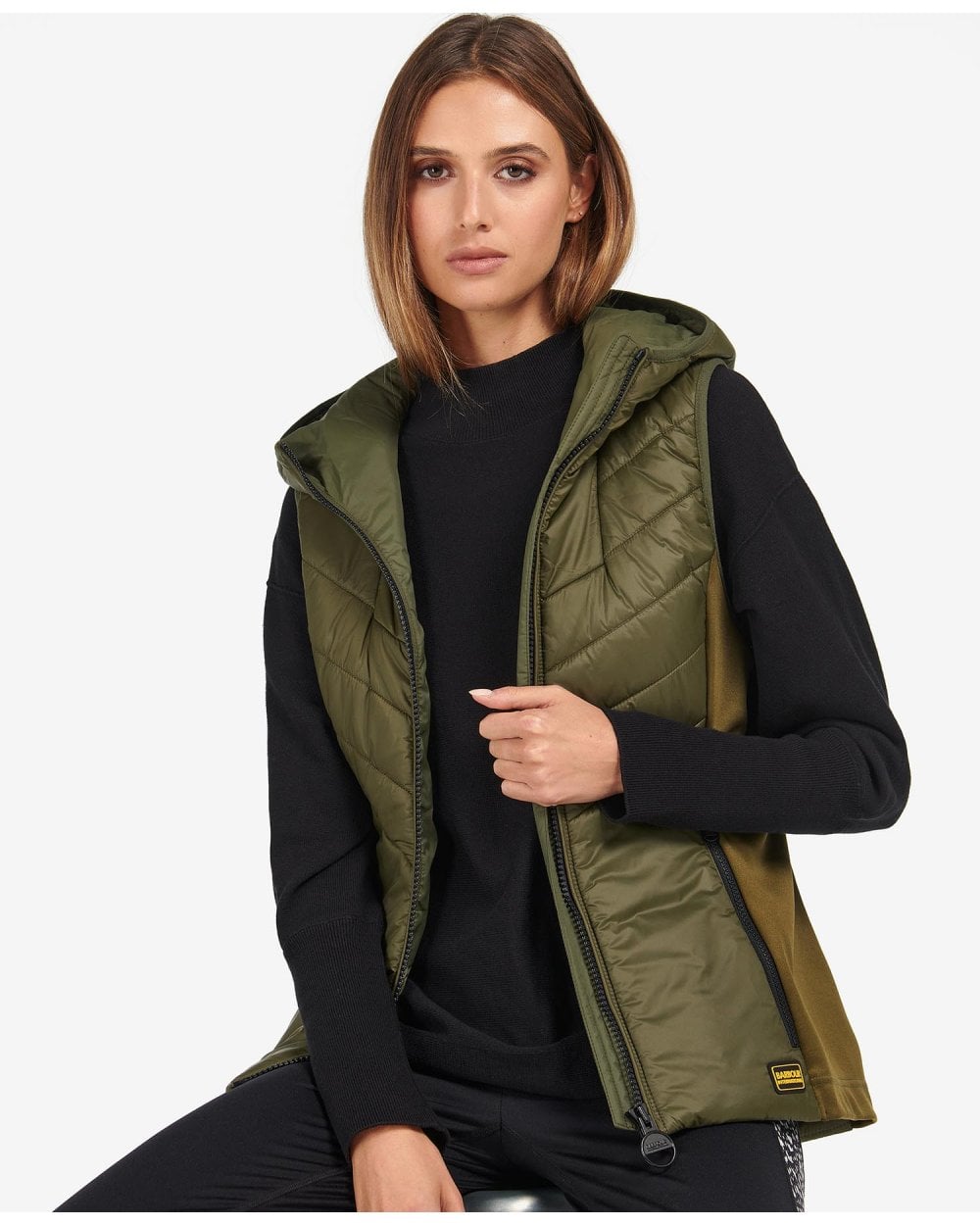 Classic country style comes in the form of this quilted gilet. The athleisure design is complete with contrasting side panels, zipped pockets and a fixed hood to ensure extra warmth when layering up.