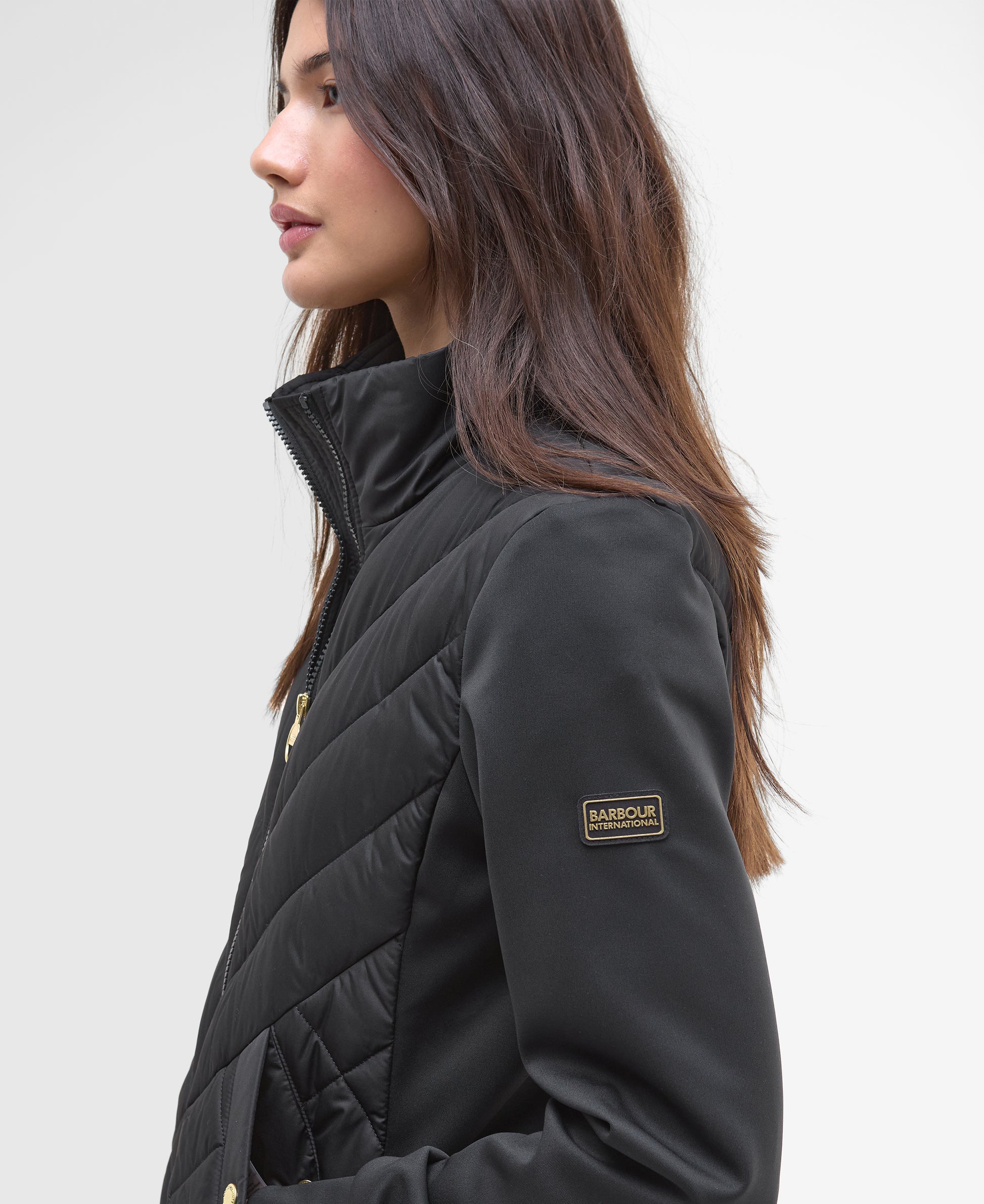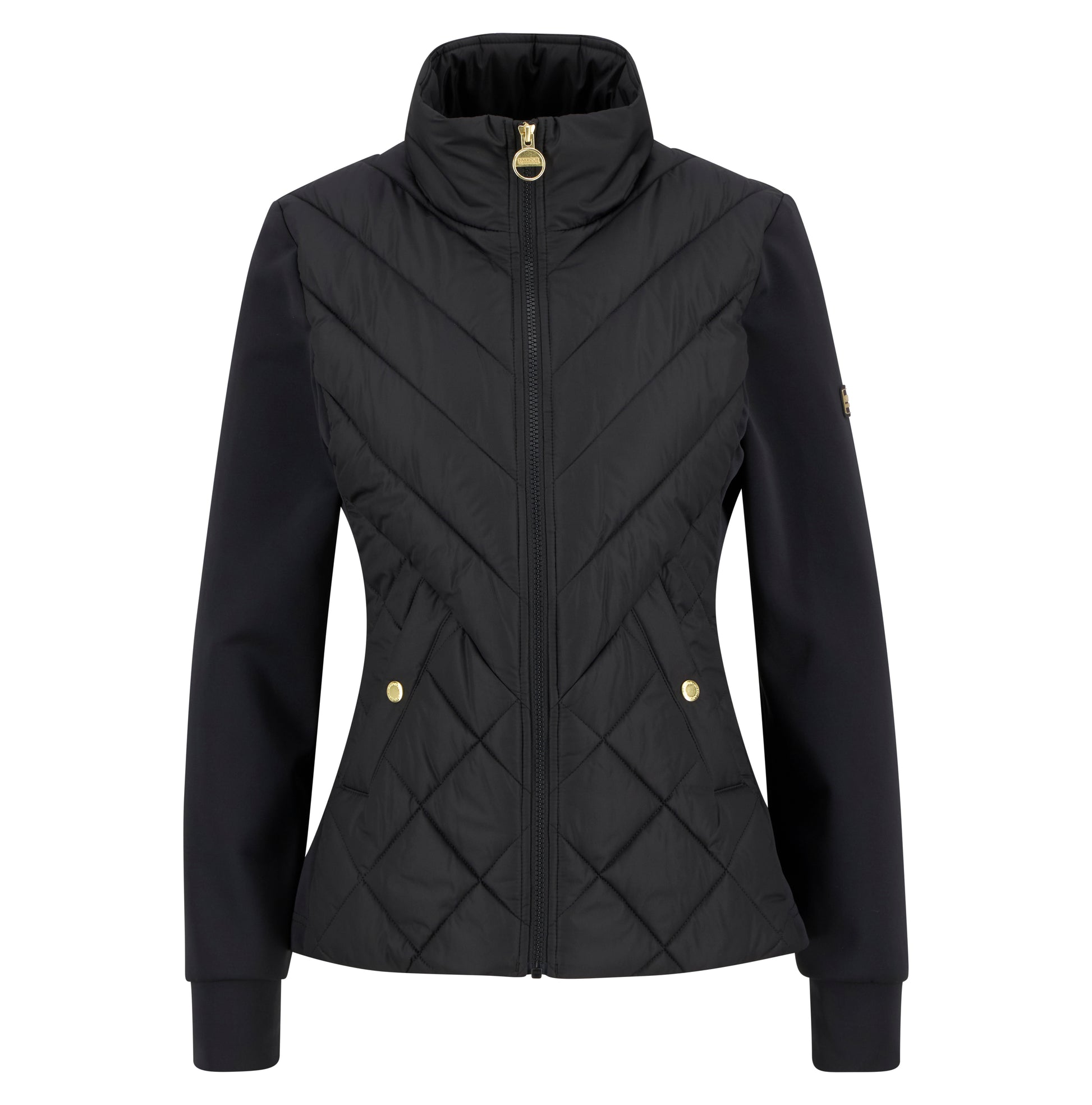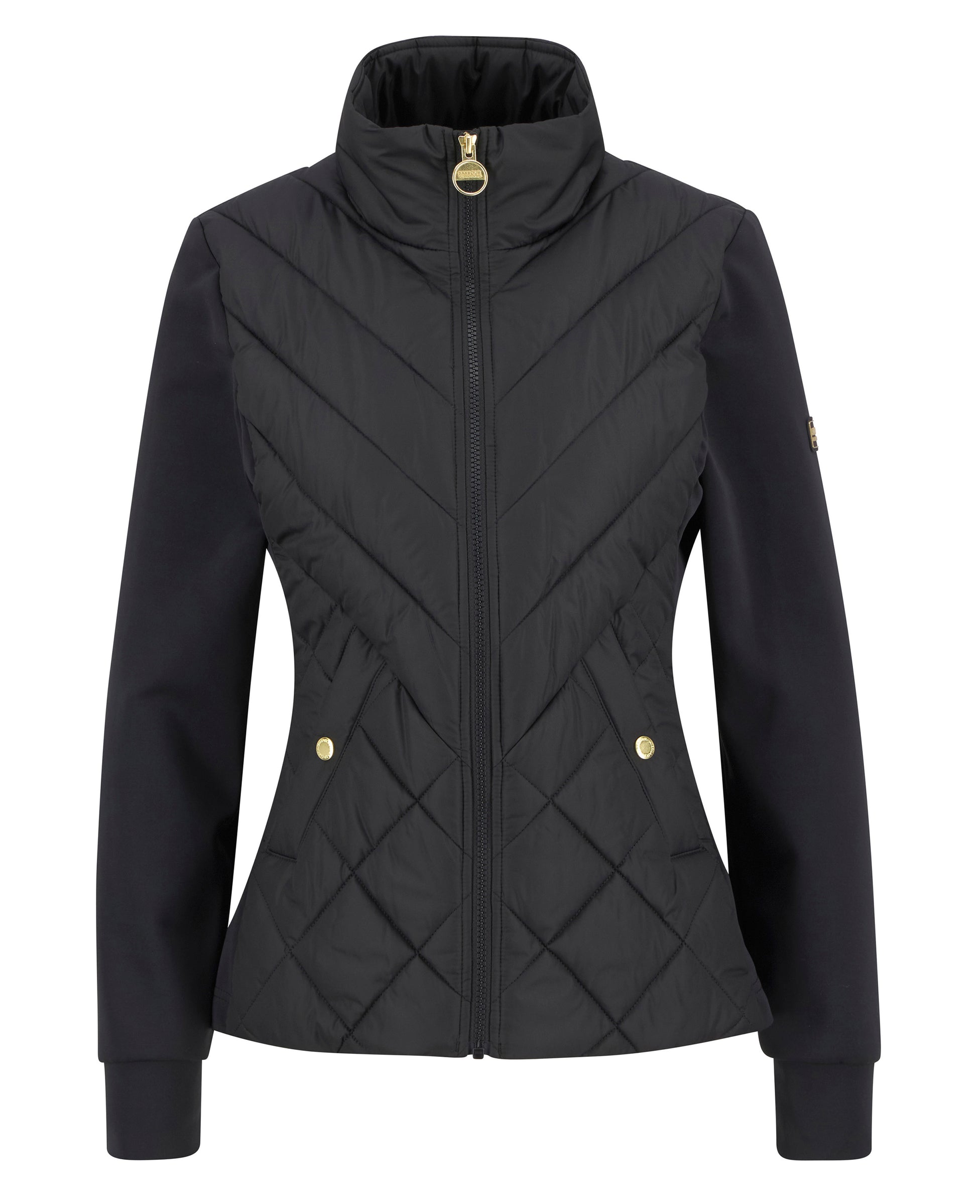 Elevate your casual style with the Barbour International Natalia Quilted Sweatshirt. Blending sport-inspired design with everyday comfort, it features hybrid baffle quilting, providing warmth without sacrificing style. The tech stretch fabric on the sleeves and side panels ensures freedom of movement, while the zip fastening and pockets add practicality. Perfect for those who appreciate both function and style.