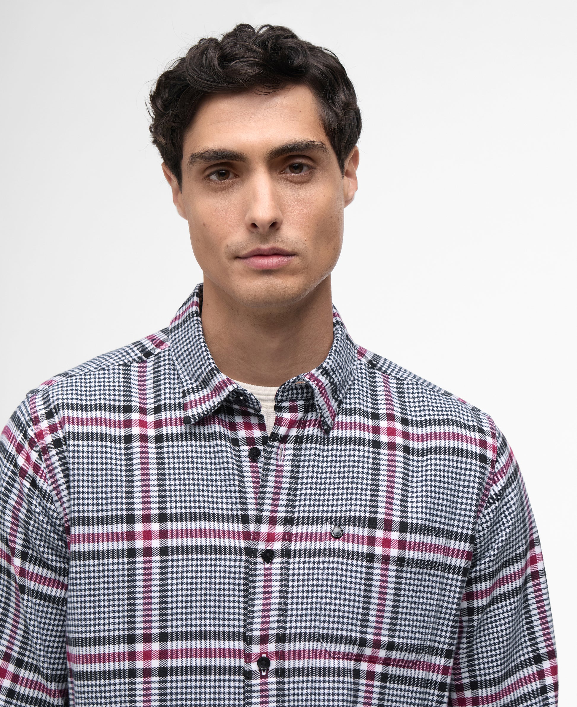 Elevate your wardrobe with the timeless B.Intl Owain Shirt. Made from 100% brushed cotton twill, this modern Prince of Wales check shirt offers a refined yet rugged appeal. The bias-cut chest pocket with a Barbour International branded stud adds distinctive character, while the branded button placket and cuffs ensure a polished finish. Perfect for both casual and formal settings.