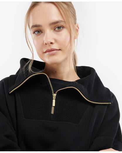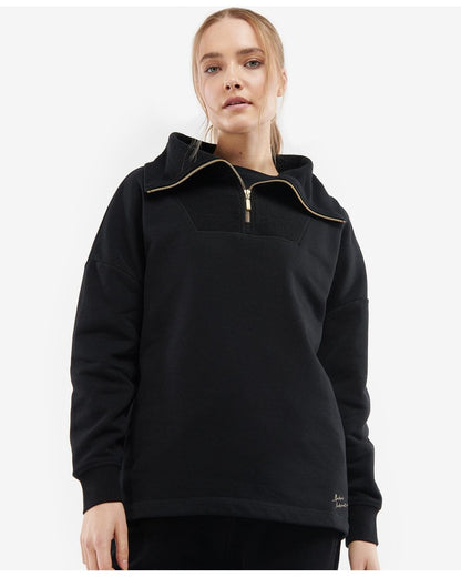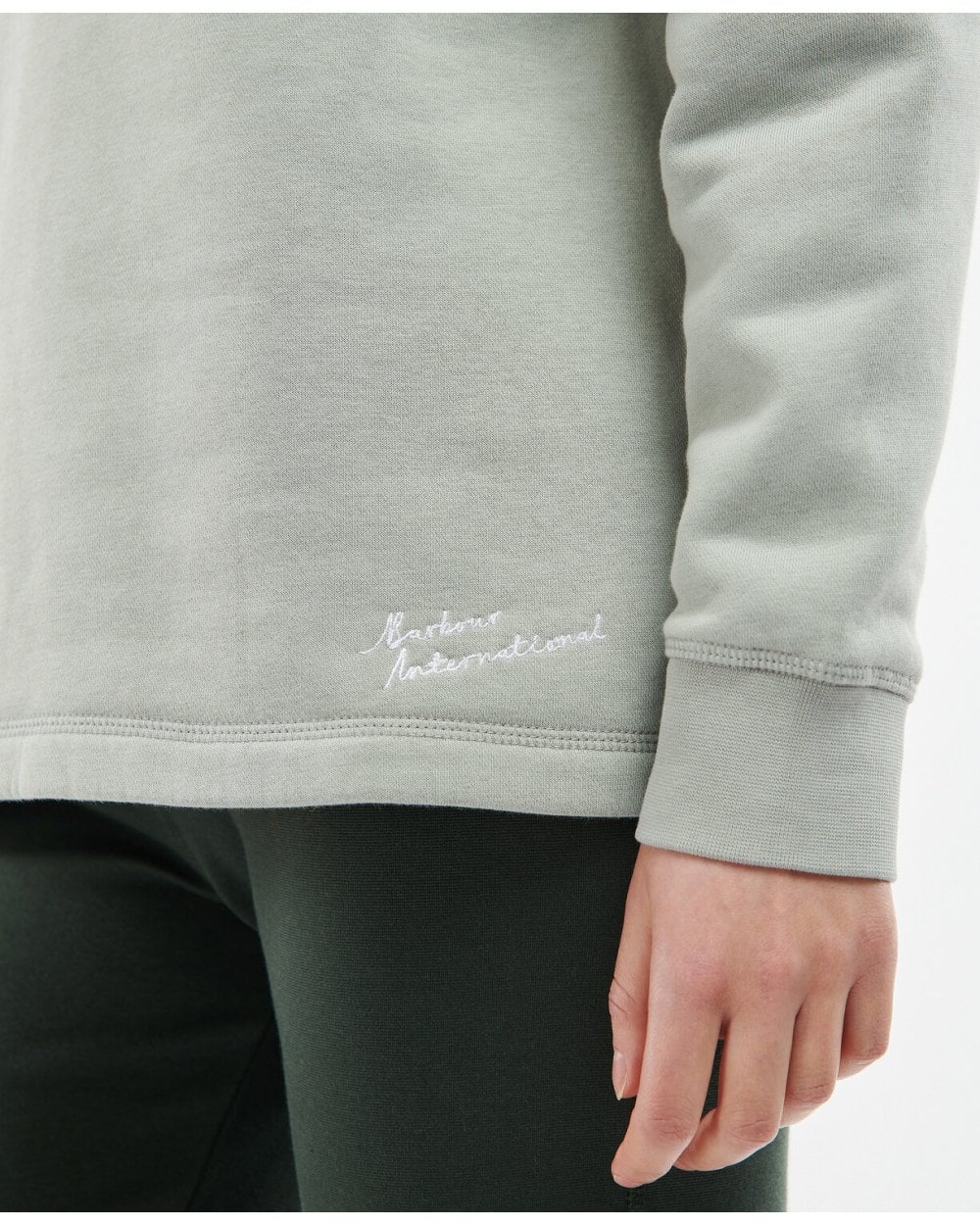 The Barbour International Rafaela Sweatshirt is a sporty everyday staple, perfect to keep you warm in style this winter. Created from a super-soft cotton blend, this effortlessly stylish sweatshirt features a dropped shoulder design and half zip placket with ribbed detailing. Finished with a wide neck collar and embroidered detailing to the left hem.