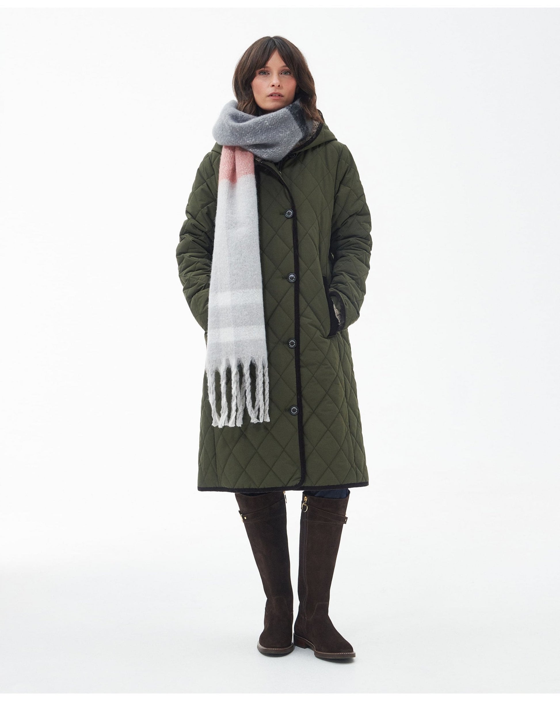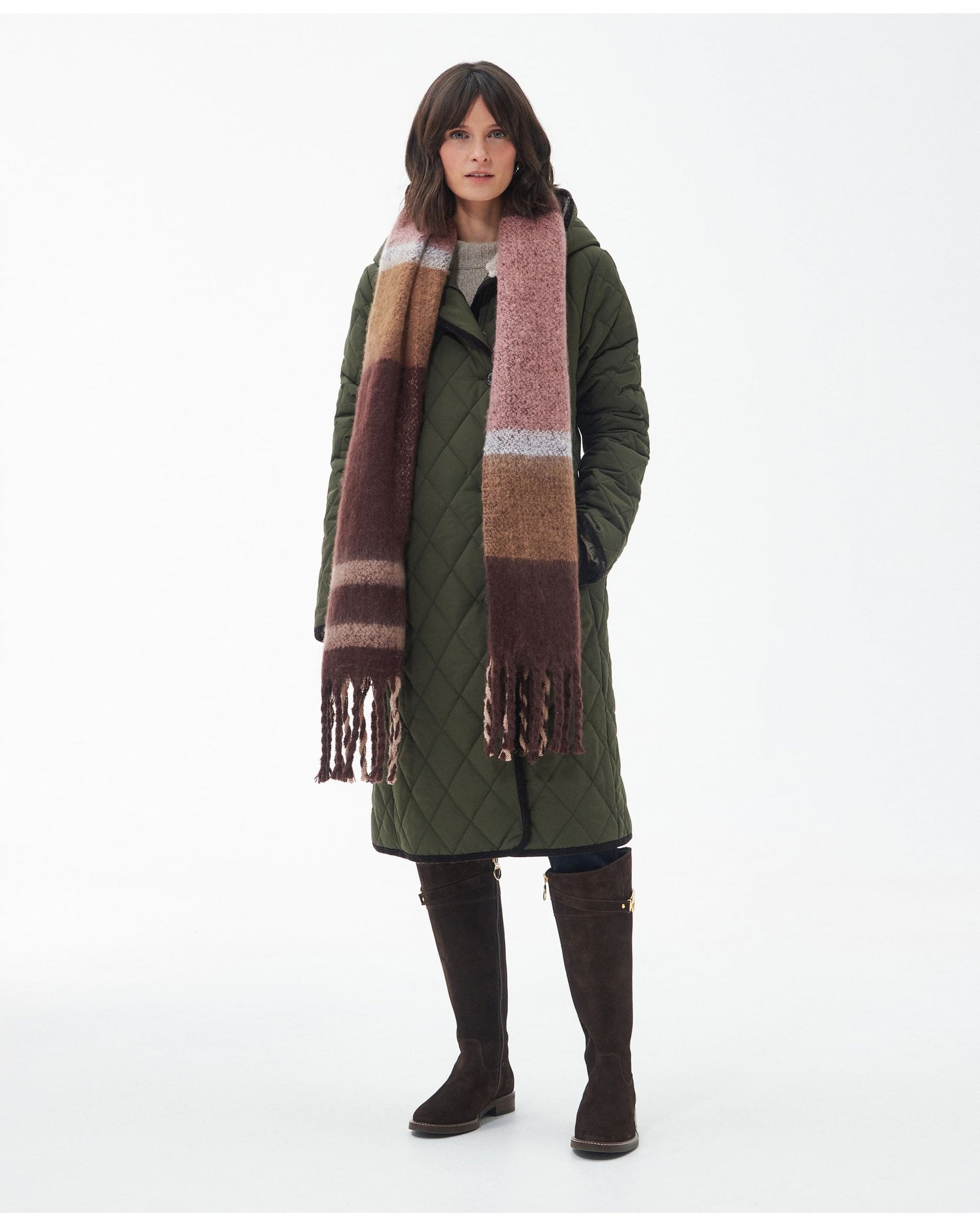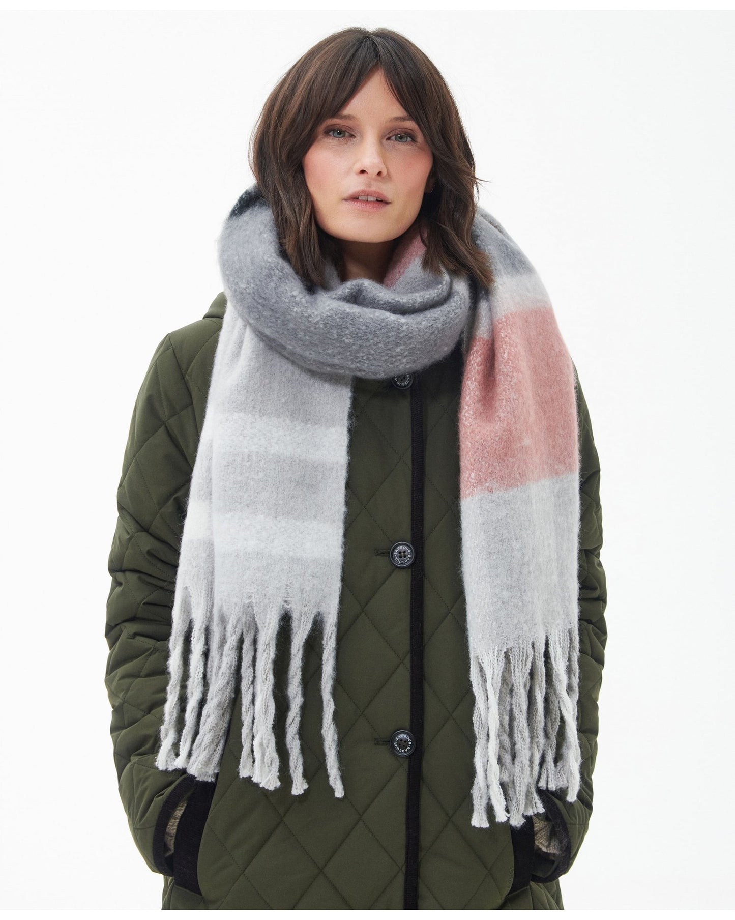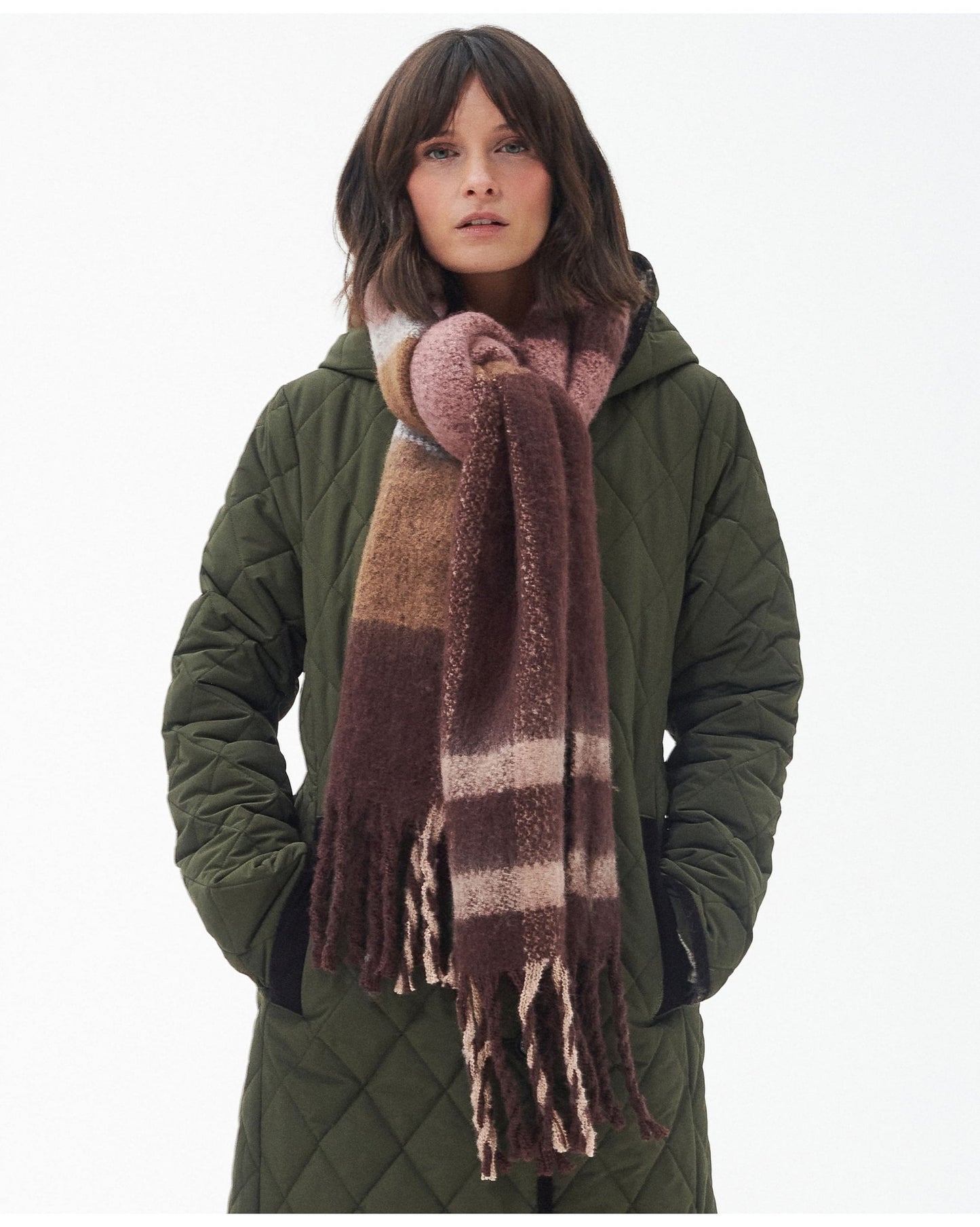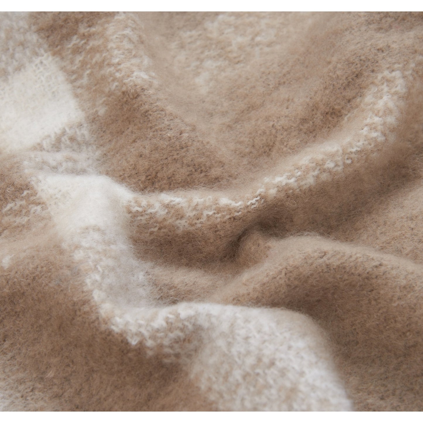 This boucle scarf has been created in a felted abstract tartan design. Super soft and super-sized this generously large scarf is perfect for wrapping up on cold winter days. Finished with a twisted tasselled hem to add extra detail, this gorgeous scarf is a great addition to your winter wardrobe.