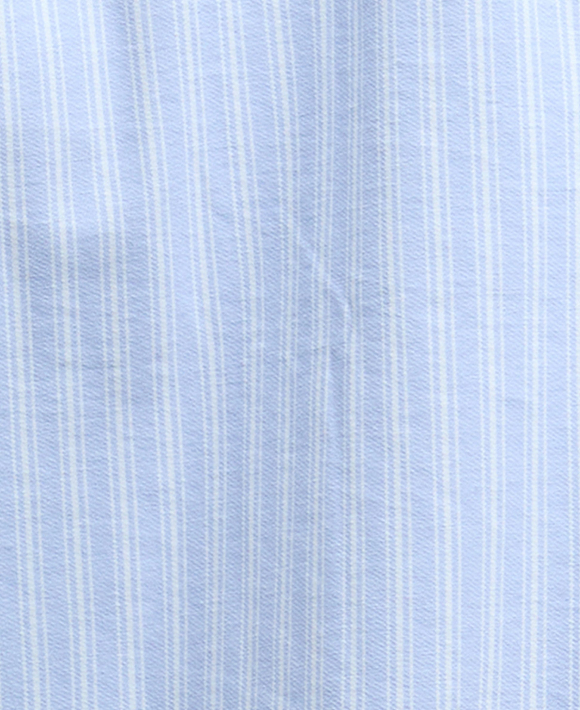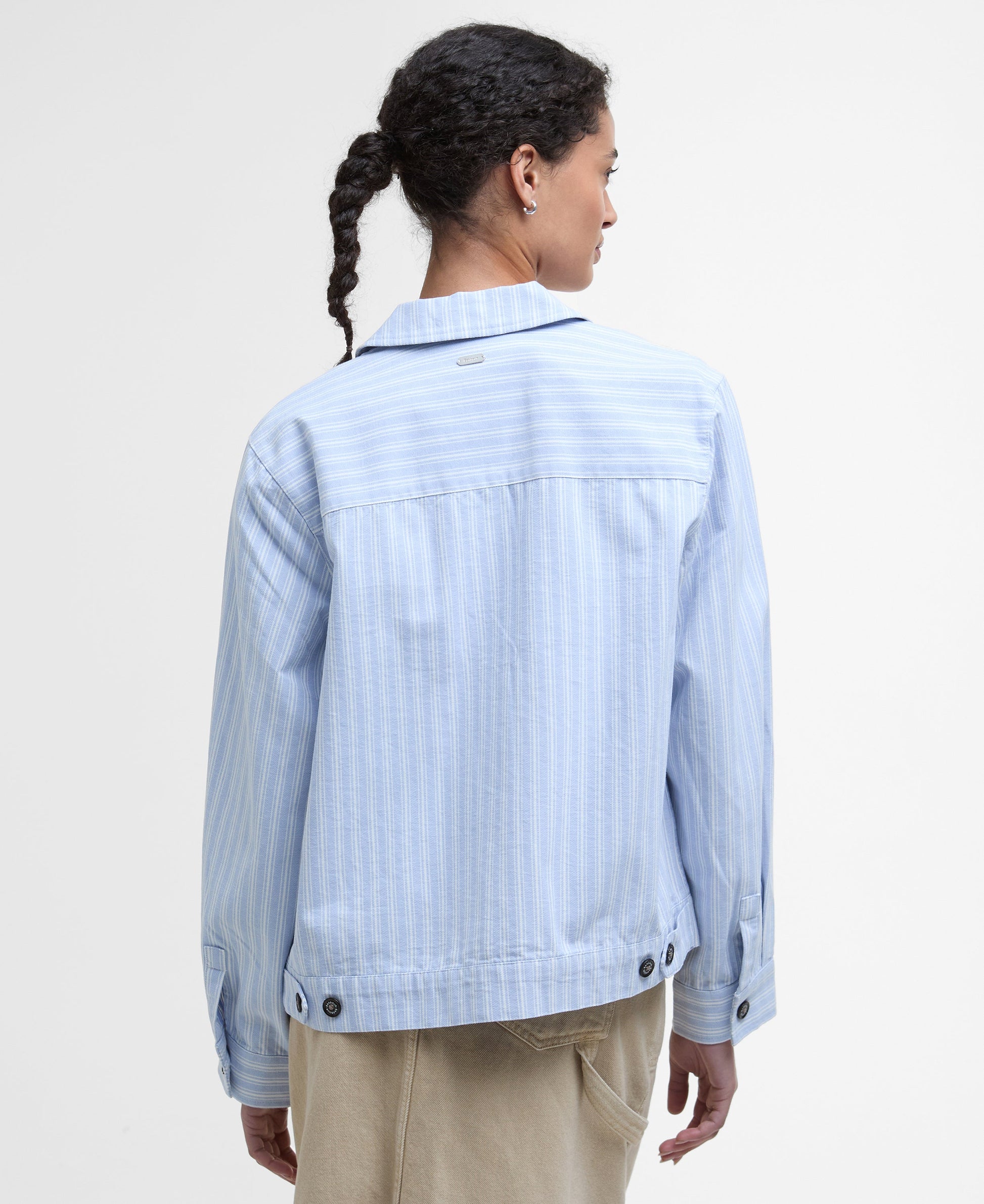 Stripe cotton twill workwear overshirt. This overshirt features a a double chest pocket, pointed collar detail and self fabric hem adjuster.