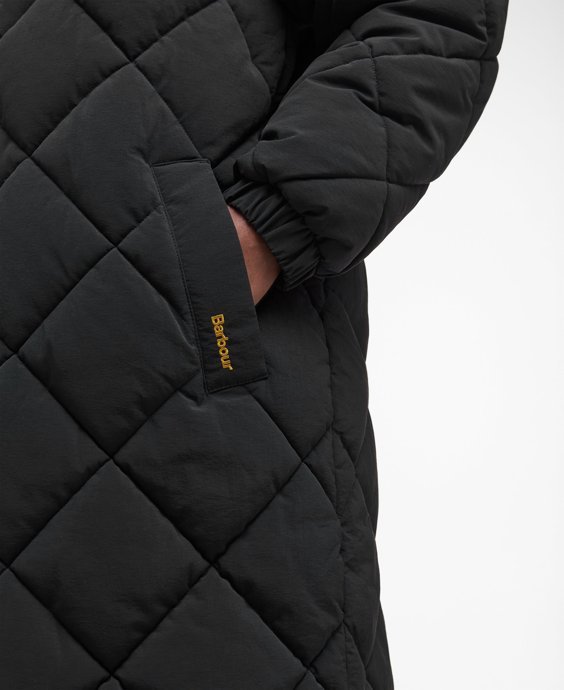 Invest in Barbour's signature diamond quilting with the Barbour Kirkton Puffer Jacket. This longline style features Barbour's iconic diamond quilting in a magnified form thanks to its 4" style. Complete with an oversized fixed hood and elastic cuff details to lock in the warmth, it's perfect for heading out into the colder weather.