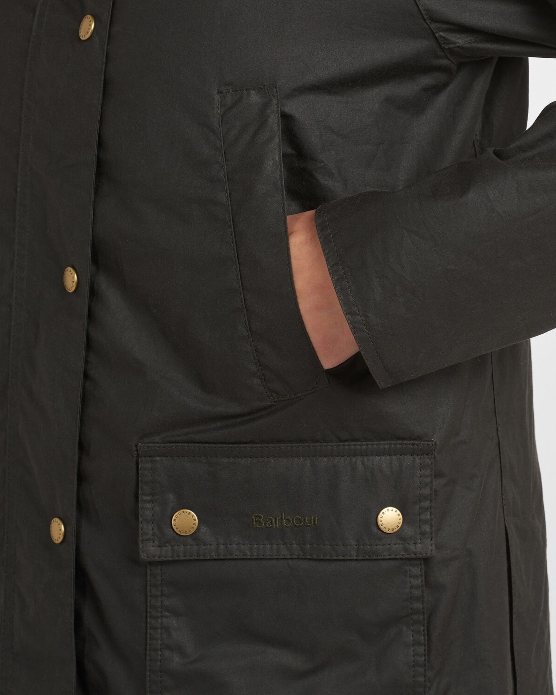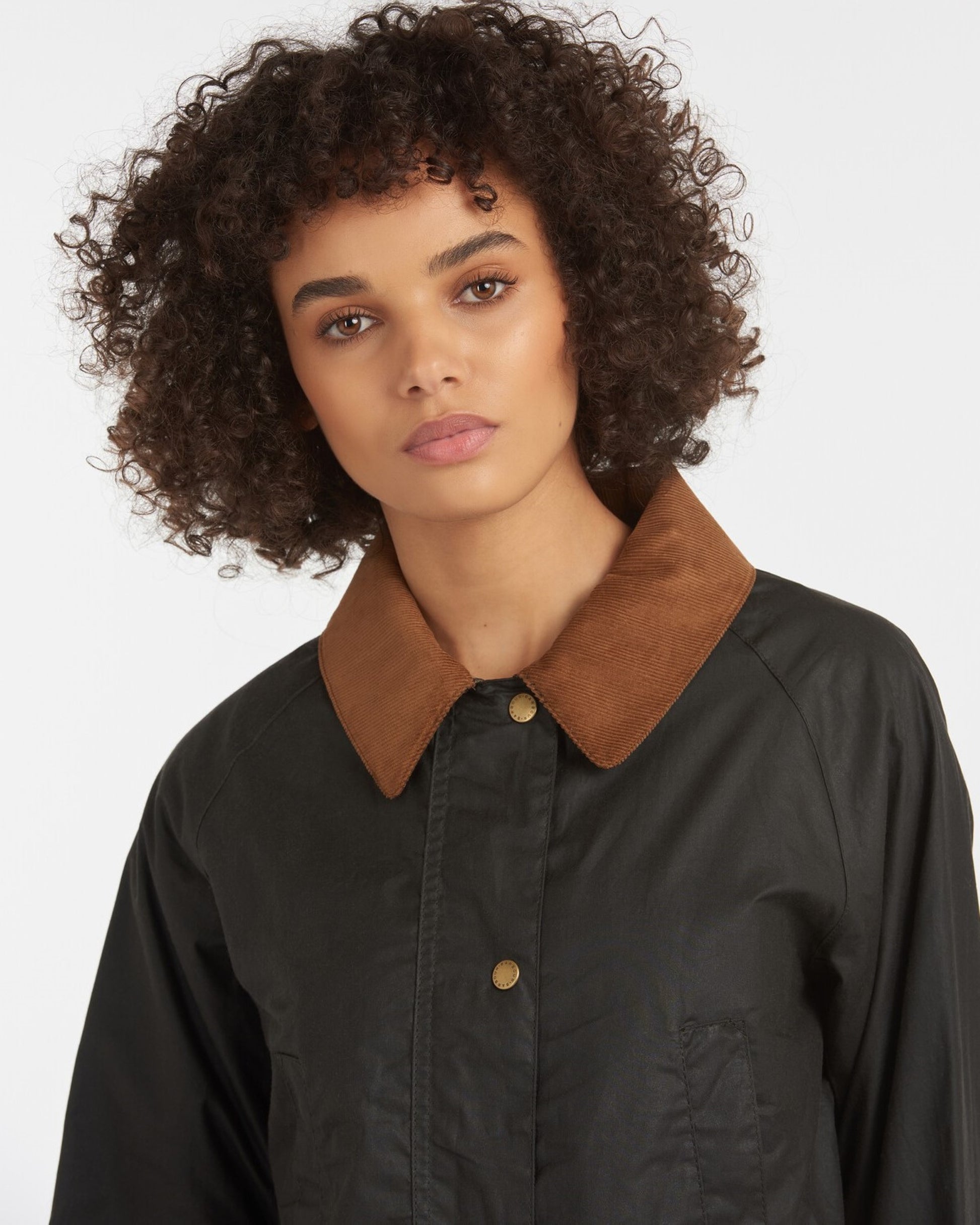 This shorter-length women's wax jacket is designed with signature Barbour style and offers all the protection of traditional waxed Cotton in a lightweight 4oz construction. Raglan sleeves, a regular fit and a Cotton lining ensure comfort, while handwarmer pockets and side-entry patch pockets add everyday practicality.