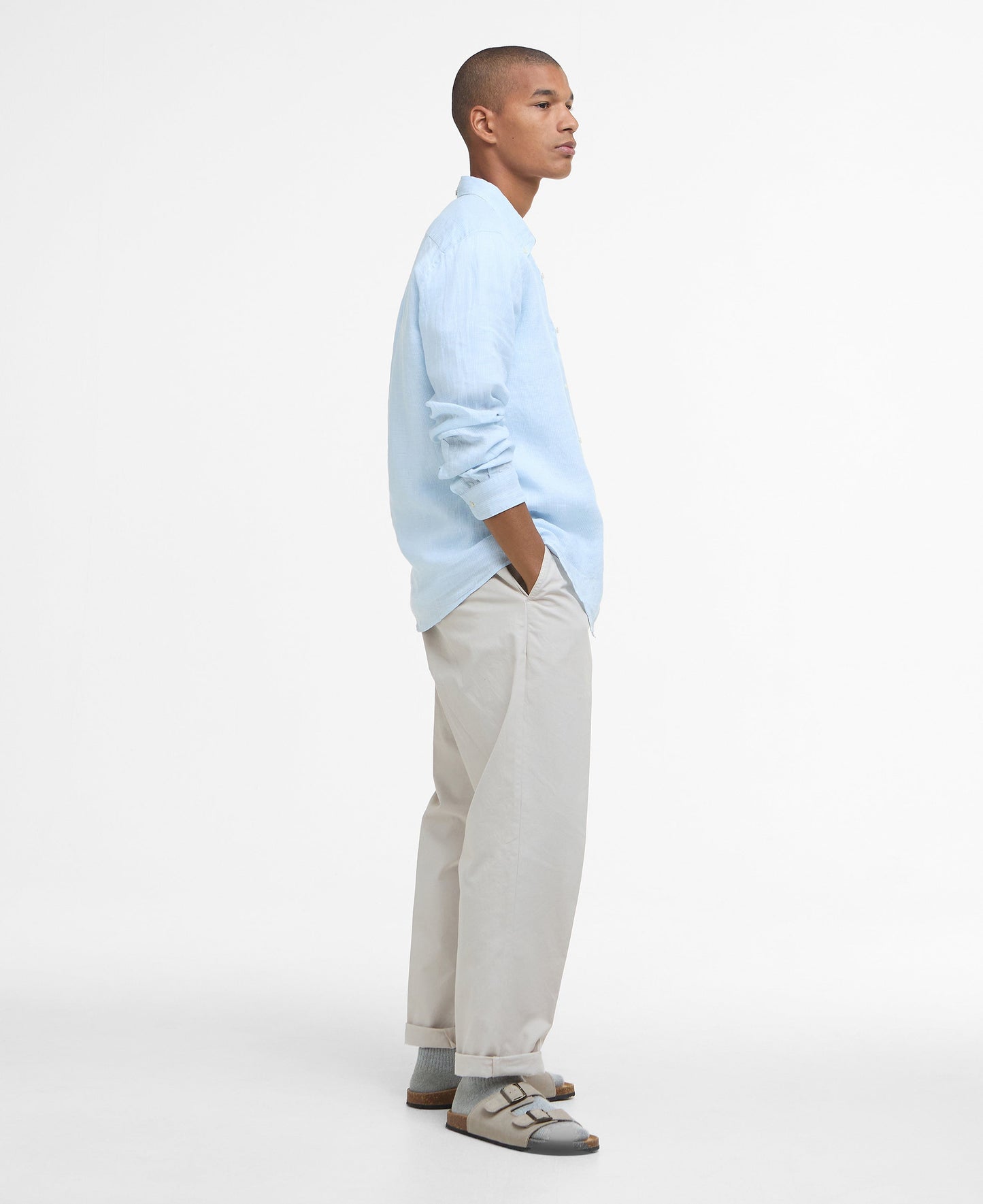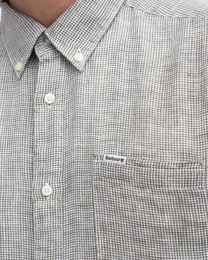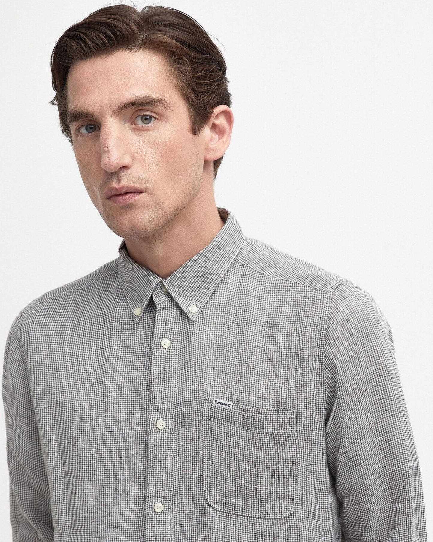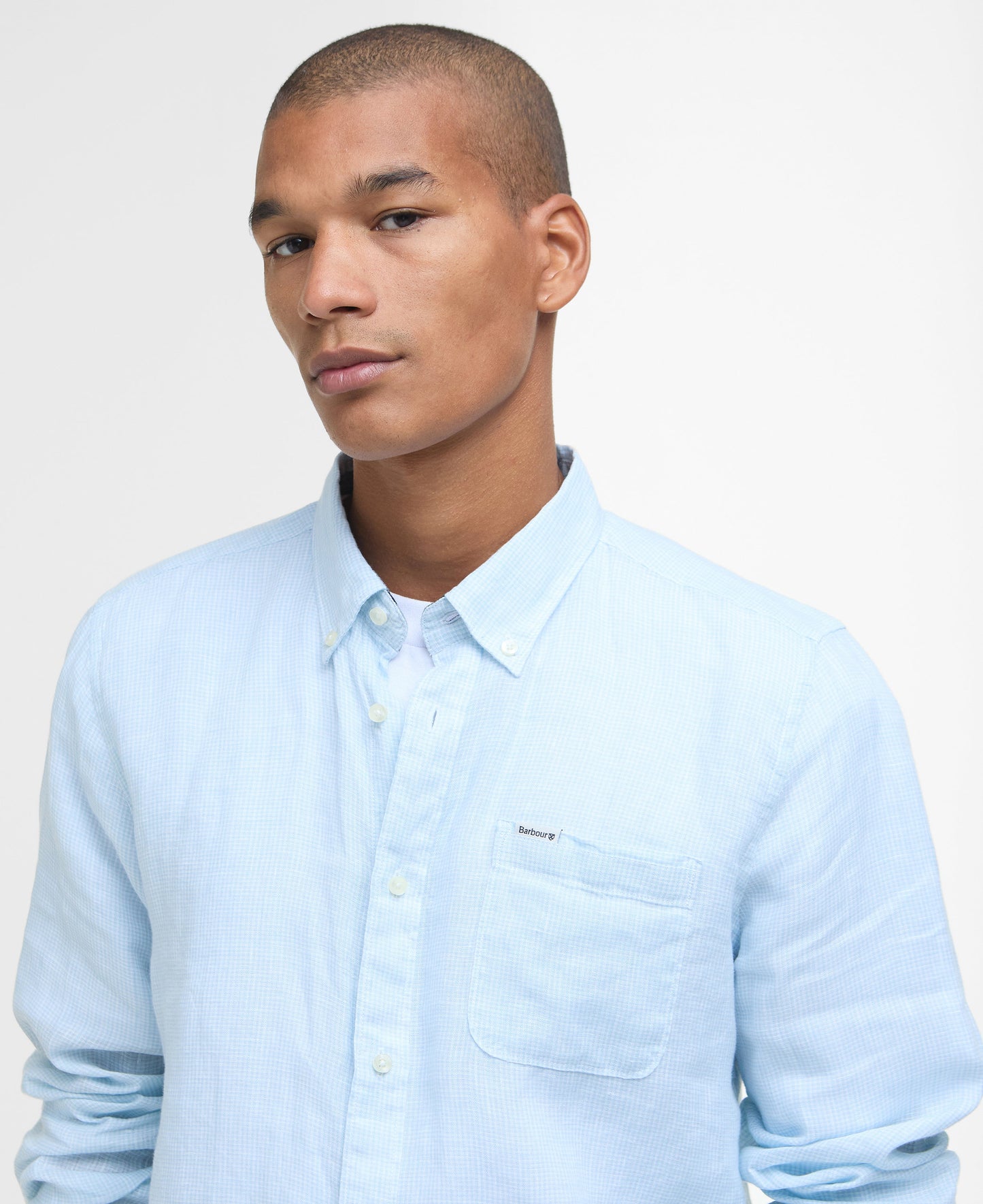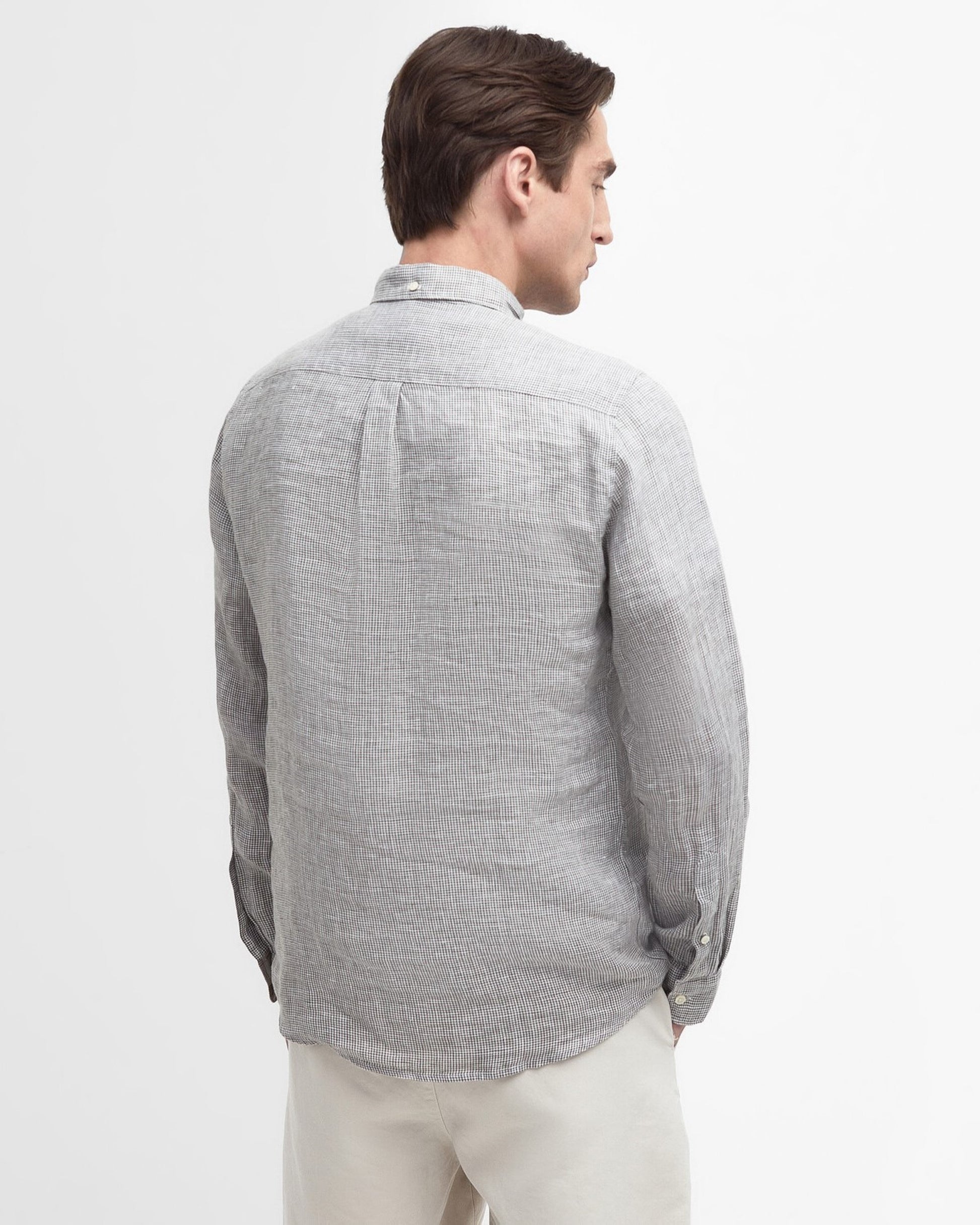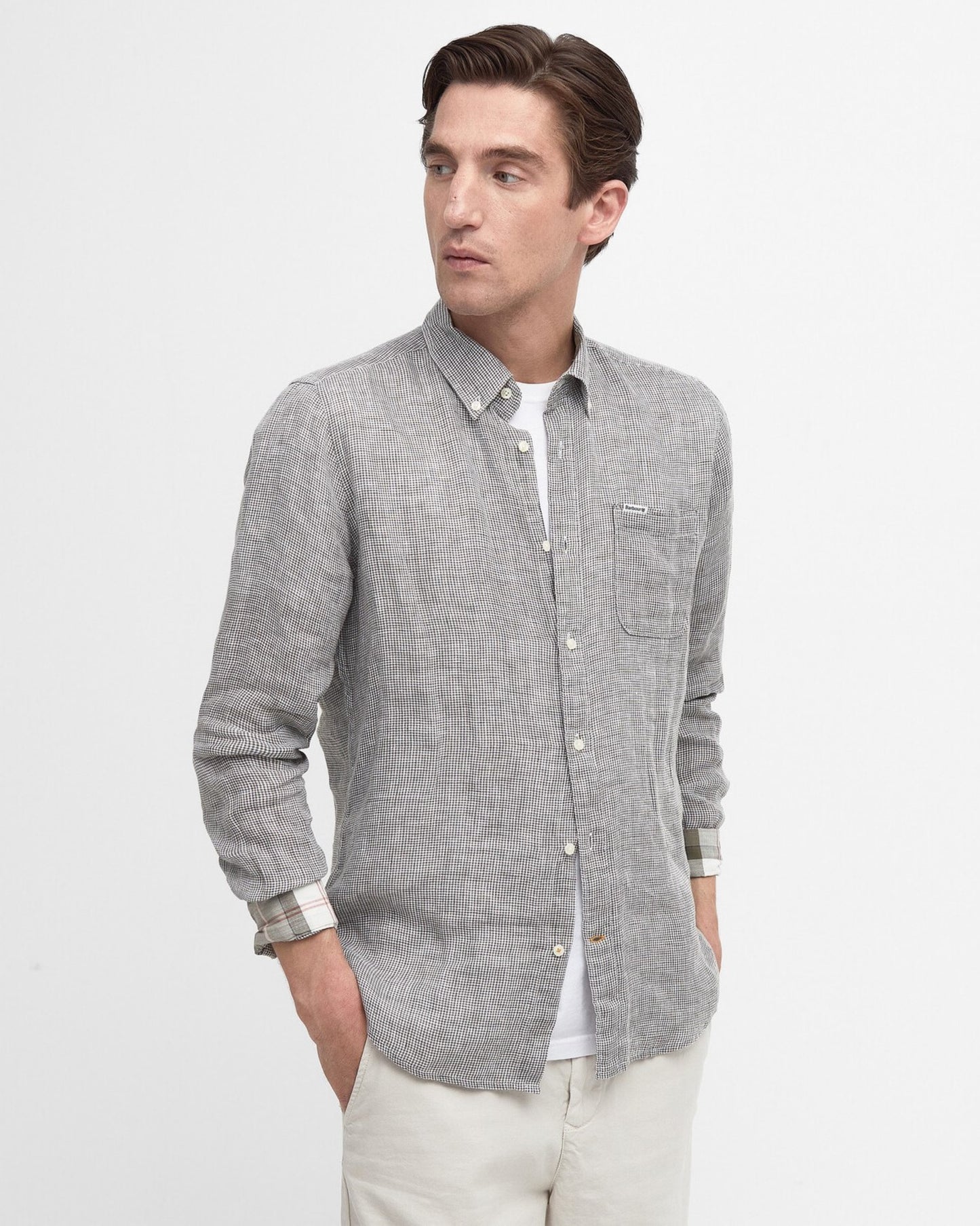 Exuding contemporary refinement, this tailored-fit shirt is crafted from 100% linen in a micro houndstooth weave with a soft finish. This long-sleeved garment is simply detailed with a button-down collar and a branded Barbour flag to the side seam.