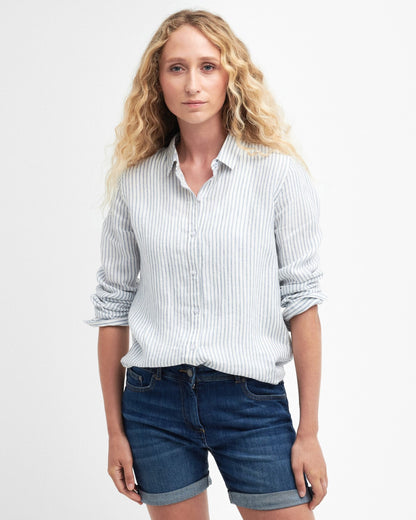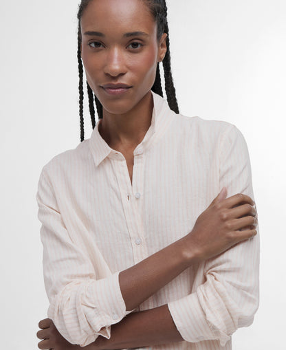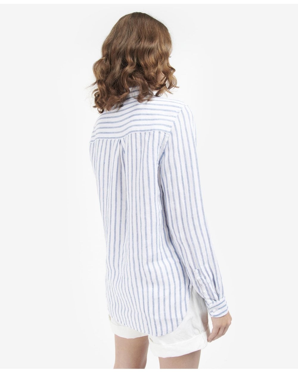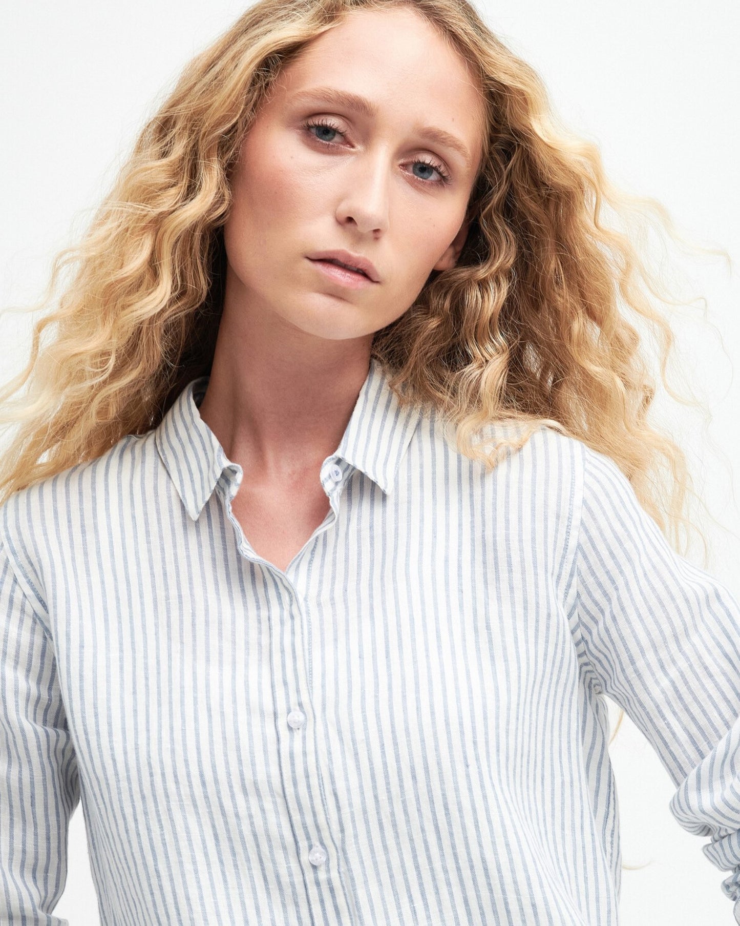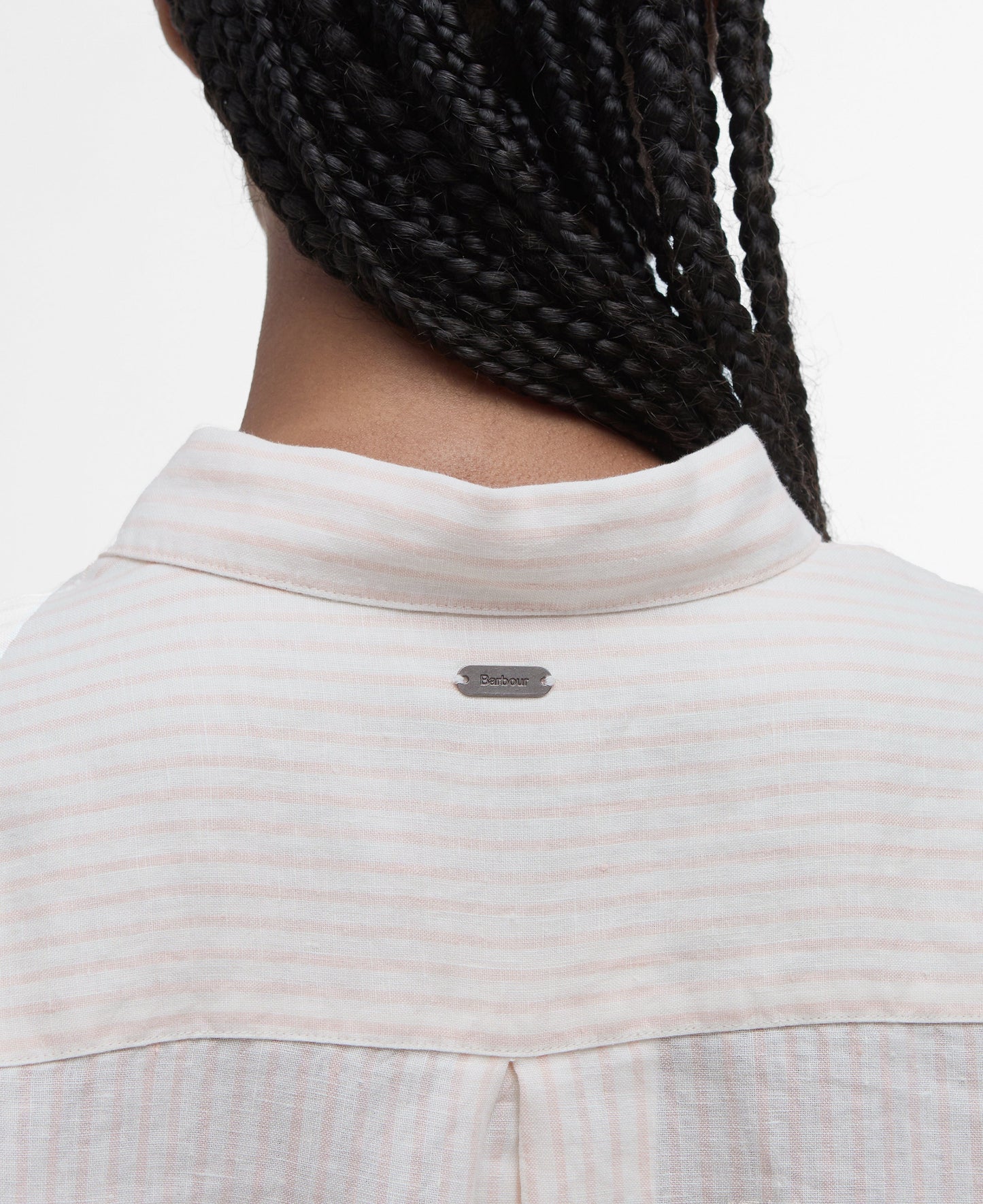 Cut to a relaxed fit from soft and summery pure linen, this is the perfect layer for the warmest days. Featuring a slim collar and a curved hem for a feminine touch, the shirt is finished with a discreet metal brand badge to the back neck.