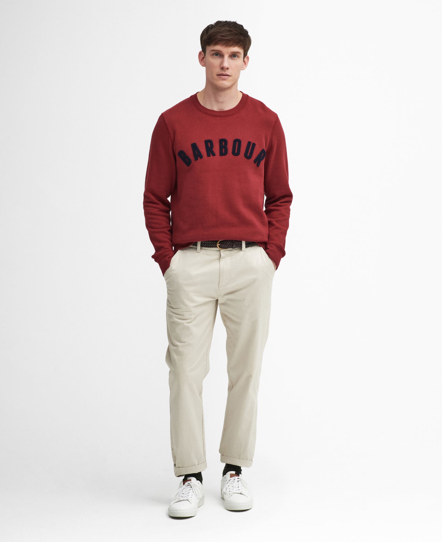 Crafted from a cotton blend this essential crew neck sweater is a wardrobe staple for the spring seasons. Created in a tailored fit this sweater is designed to sit closer to the body for a traditional style. Featuring raglan-style sleeves with a bold Barbour logo gives this timeless classic a modern edge- perfect for everyday wear or casual occasions.