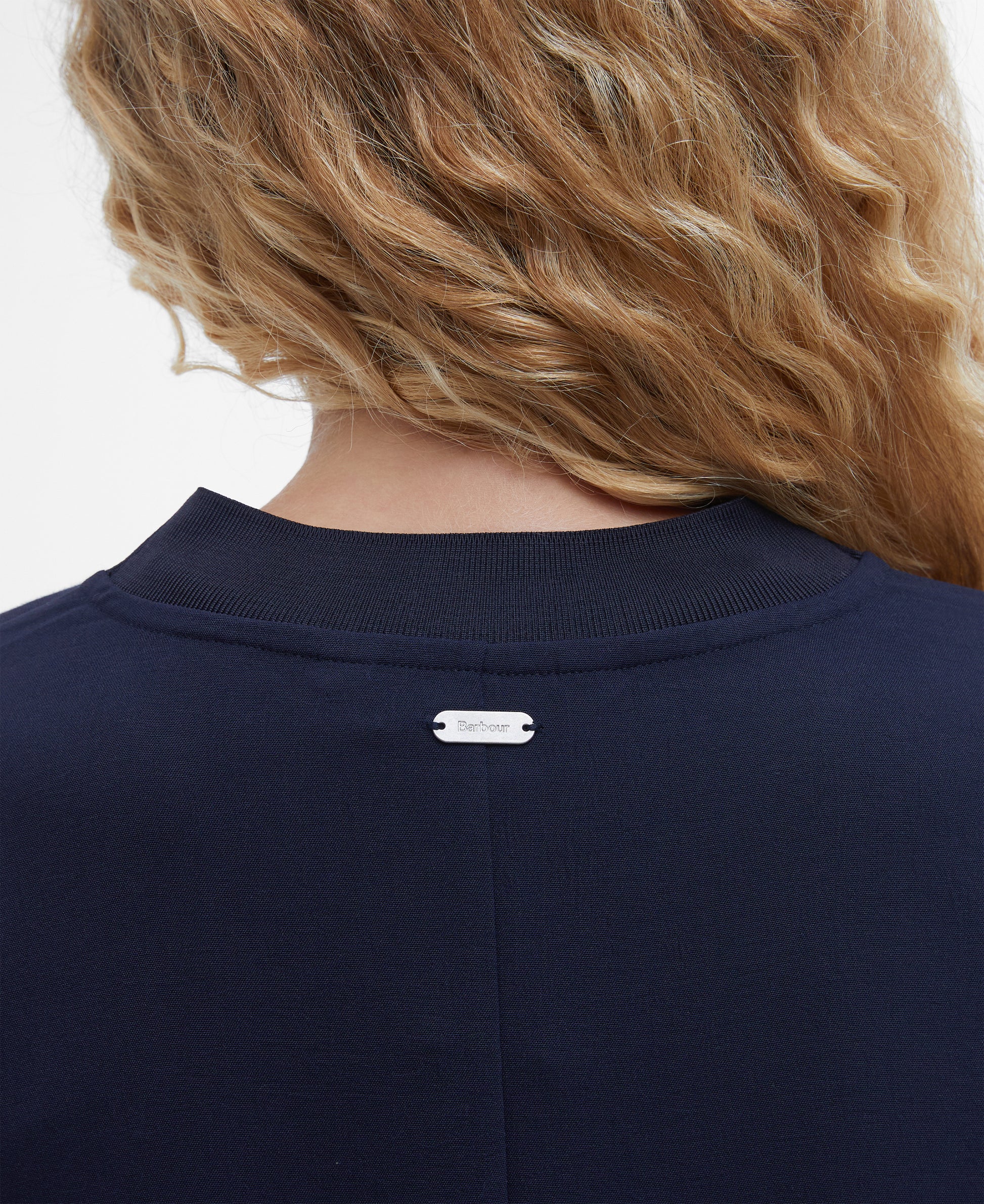 - Slim metal ID bar to centre back neck.
