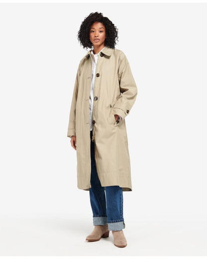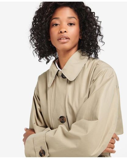 Presenting a modern take on a Barbour favourite, the Somerland Jacket is a premium women’s fashion garment. Shaped to a relaxed trench coat style with a single-breasted front, this design's timeless details make it a go-to countryside style to wear year after year.