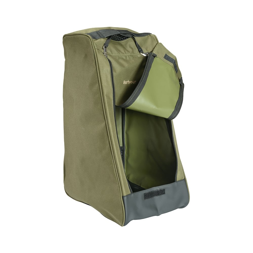 Never have to worry about transporting dirty wellingtons again with this bag! Created with a double zip, reinforced base and top carry handle this boot bag is perfectly practical for storing your Wellington boots this season. Suitable for Barbour wellingtons this also has two side pockets for other essentials.