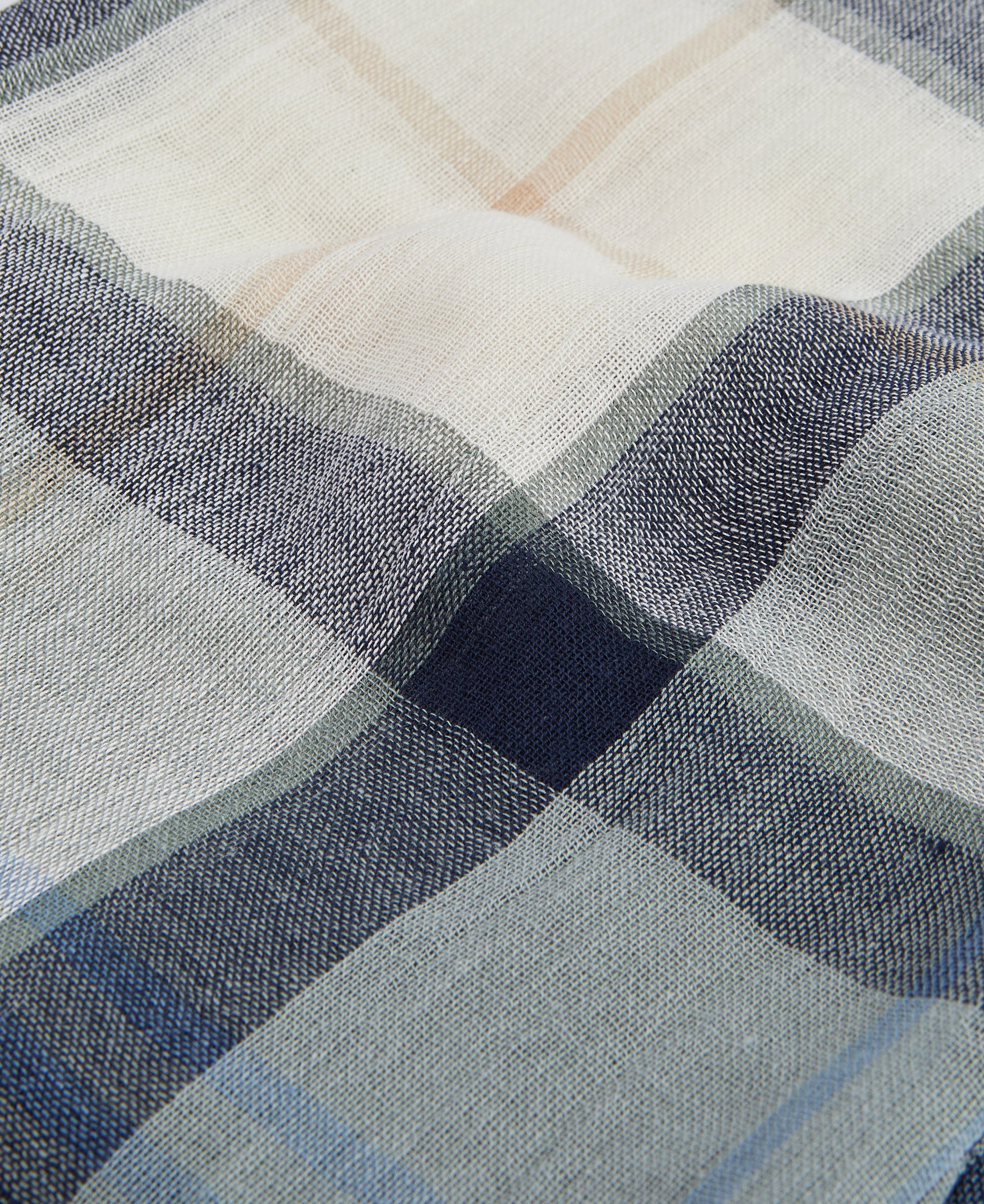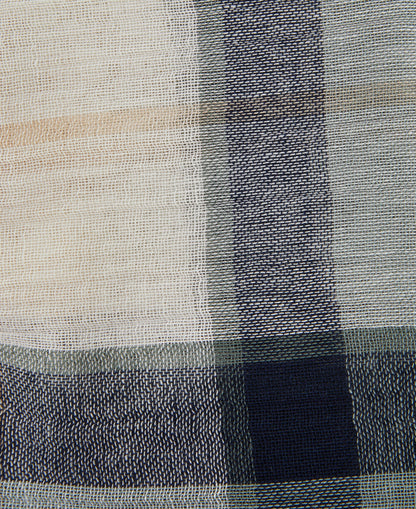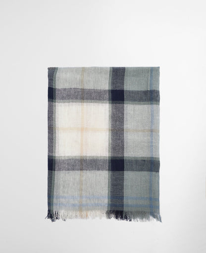 Lightweight woven tartan scarf in a cotton/linen blend with fringe detail. Features all-over signature Barbour tartan design.