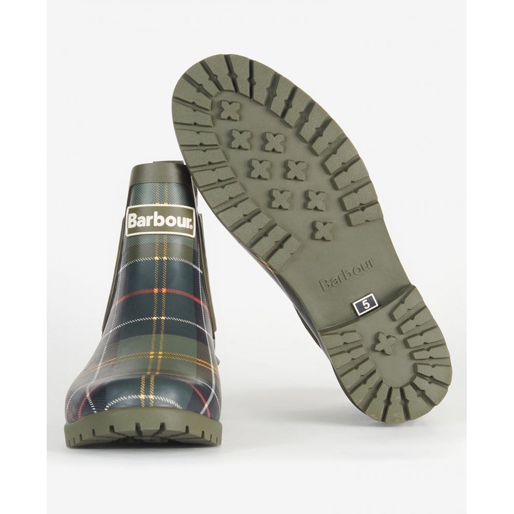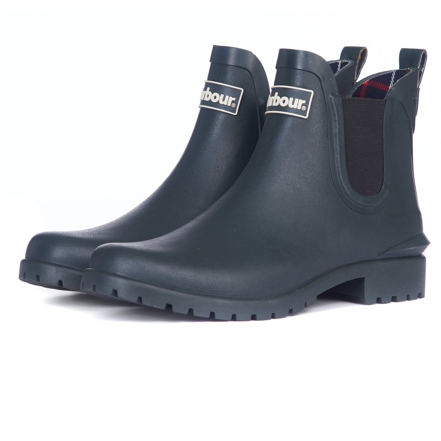 These classic Wilton ankle wellies from Barbour are a timeless wardrobe staple, ideal for year-round wear. They have been created in the fashionable Chelsea boot style, featuring an elasticated side gusset and rear pull tabs for an easy pop-on design. Signature tartan lining, commando-style sole and Barbour branding add all the finishing touches to these boots- great for long walks on wet days.