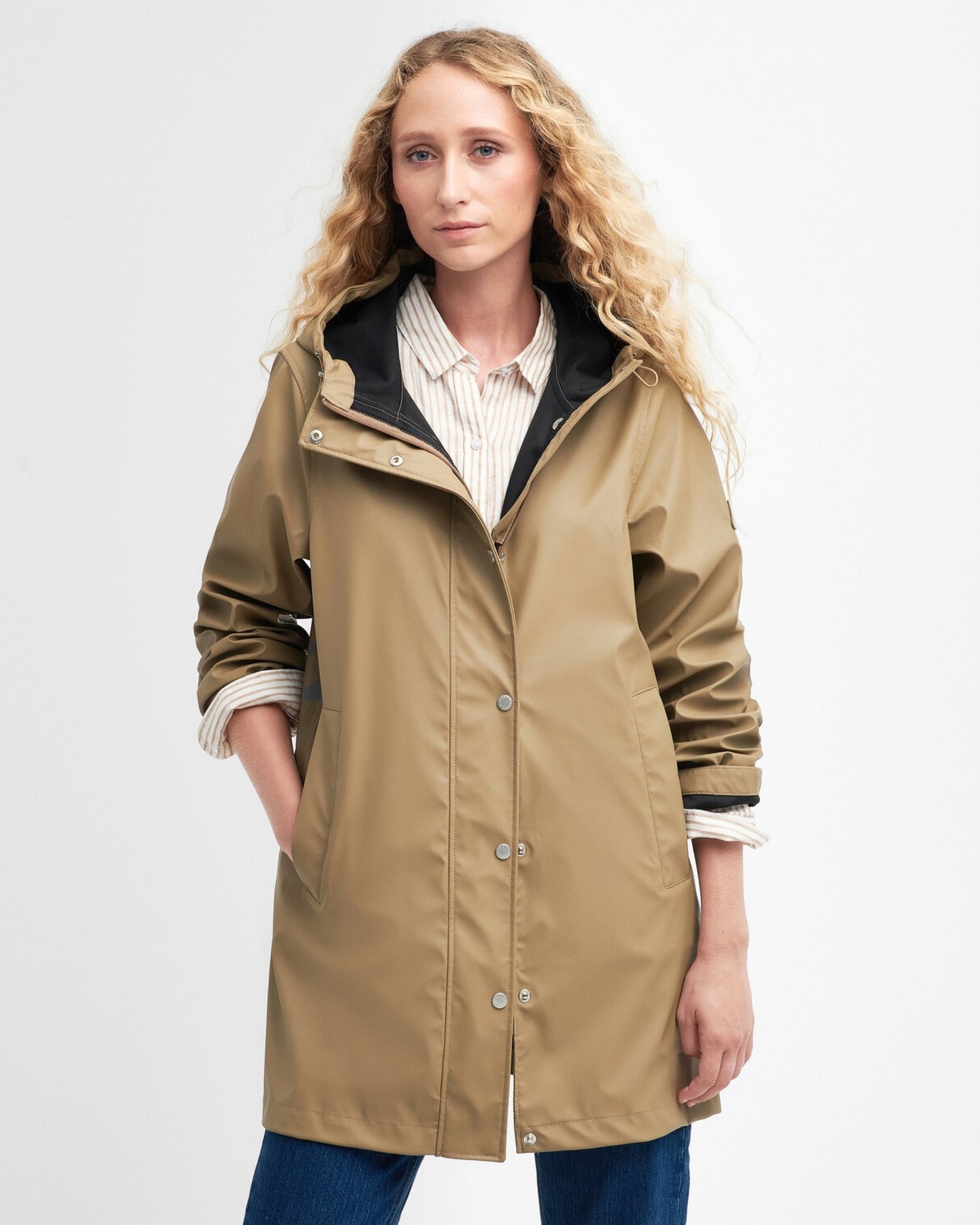 Boasting a rubberised outer fabric with a showerproof finish, the Barbour Woodland Showerproof Jacket is cut to a longline silhouette with a lightweight design. Practical features include a wide press-stud placket to the front for added protection and an adjustable fixed hood for added protection.