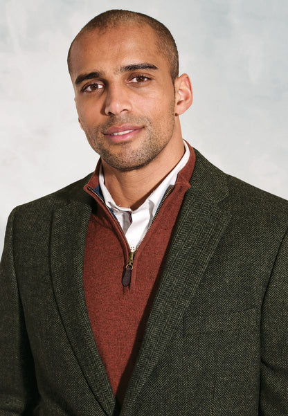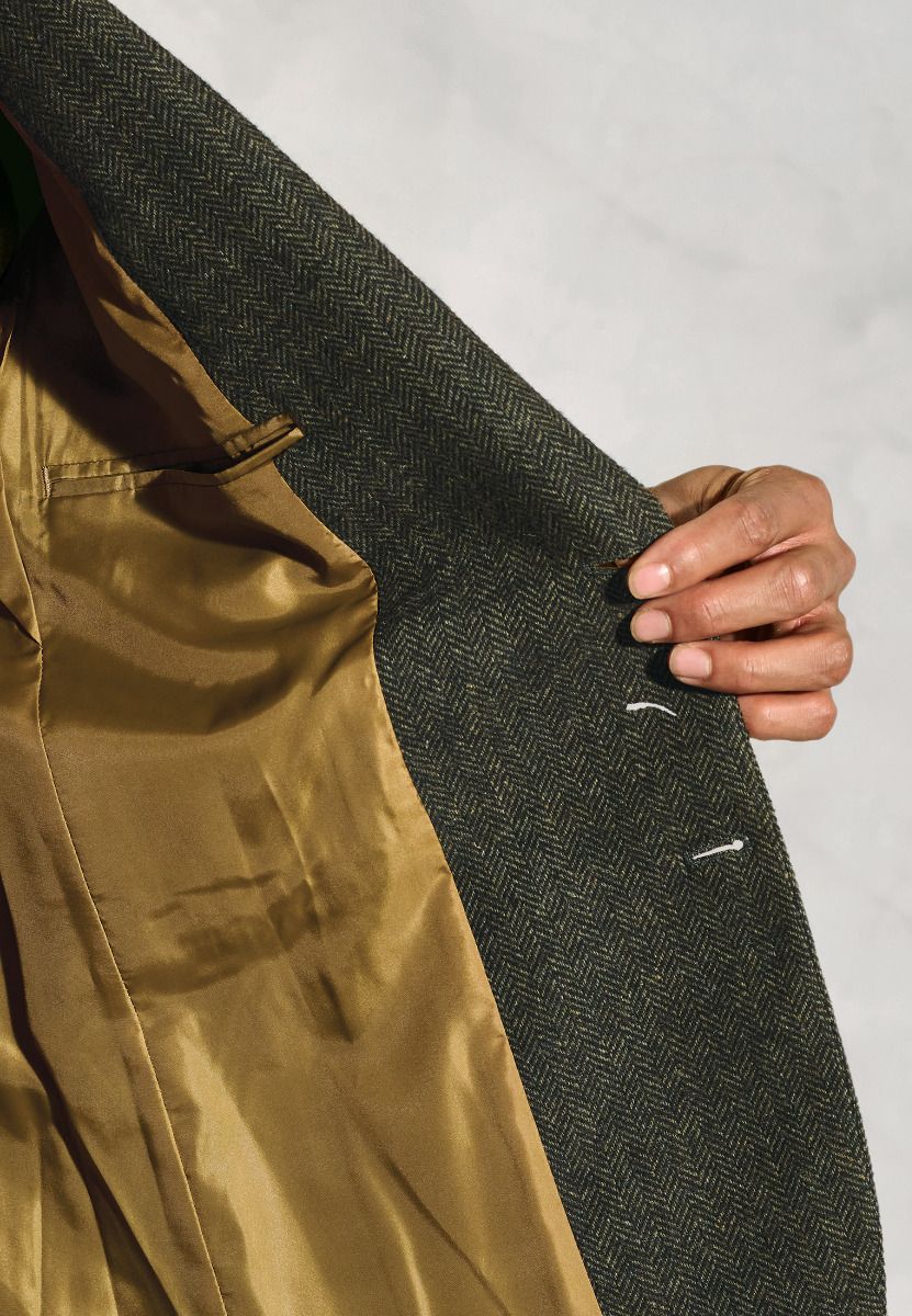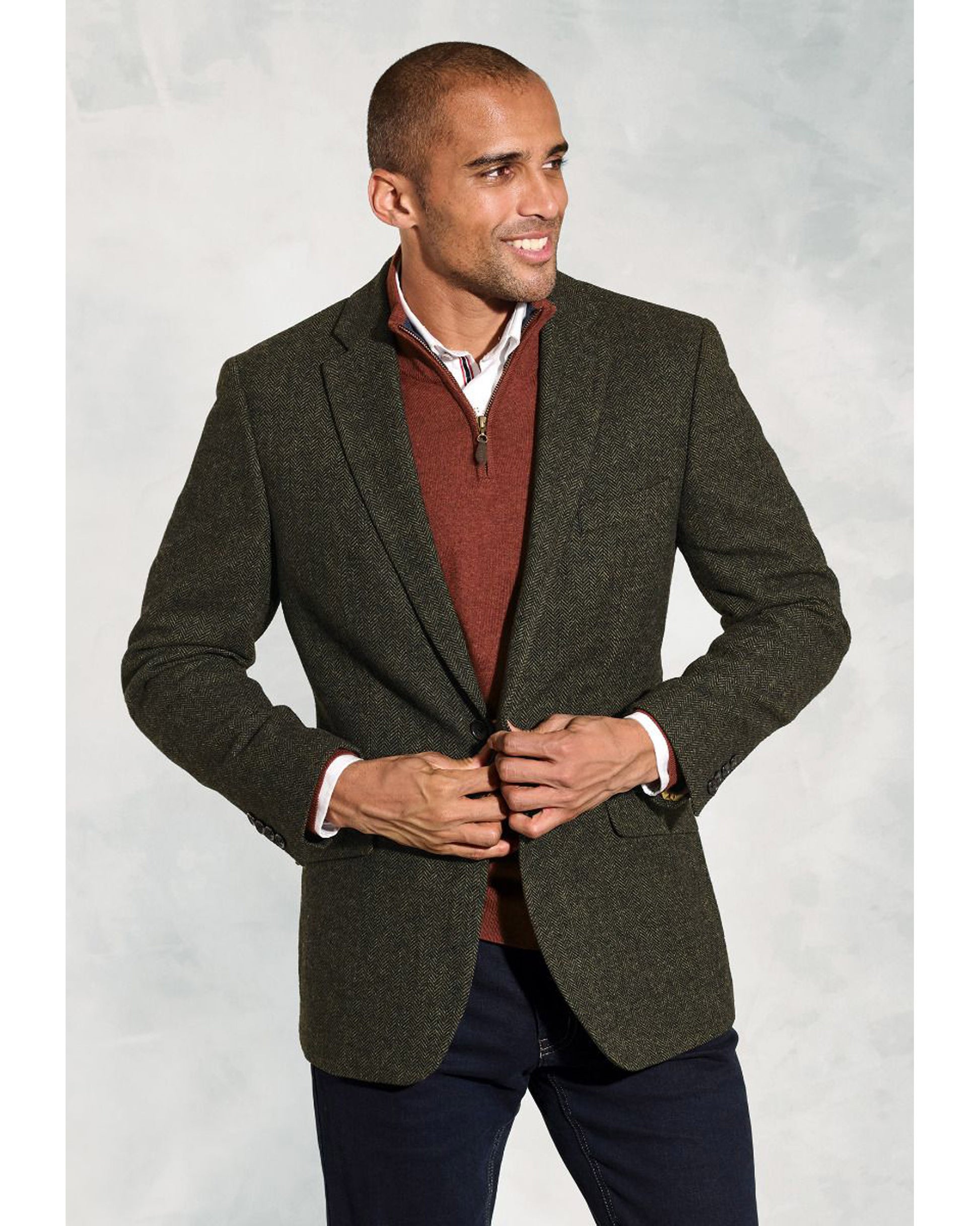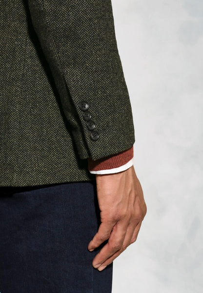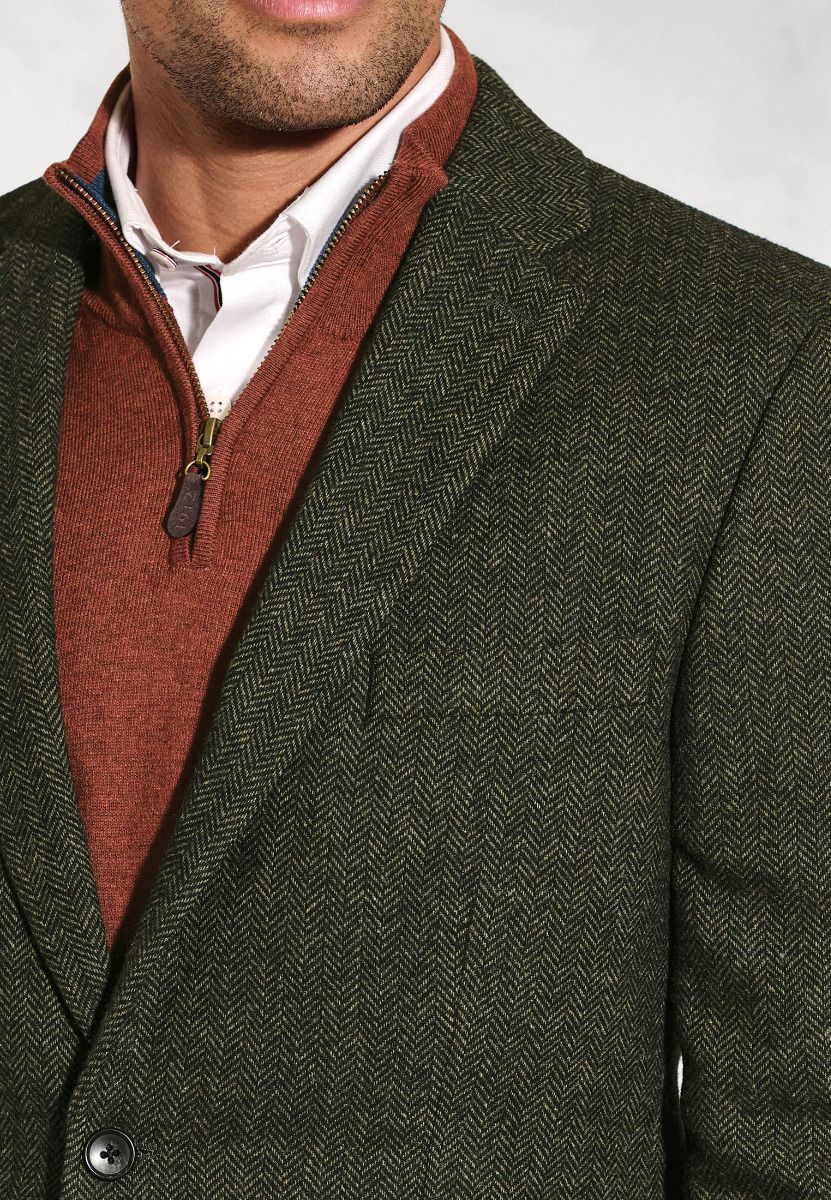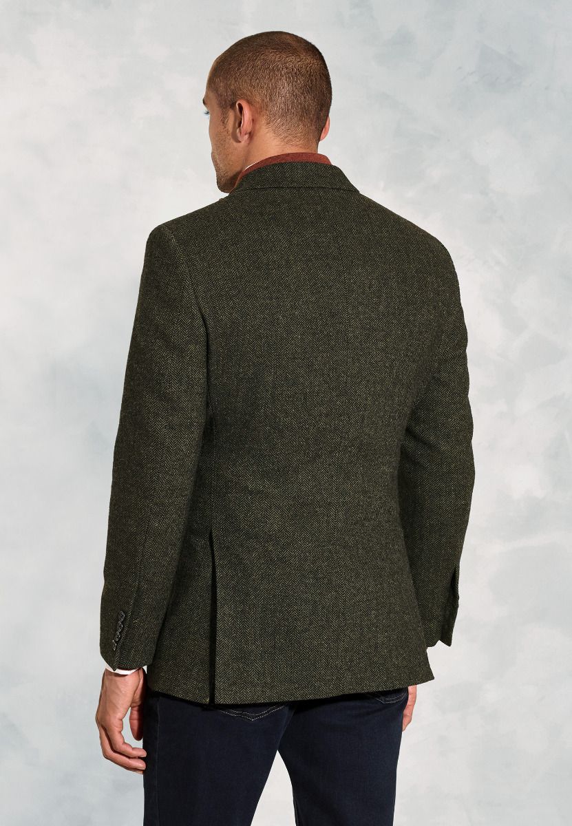 Regular Fit Dee Olive Herringbone Wool Blend Jacket
