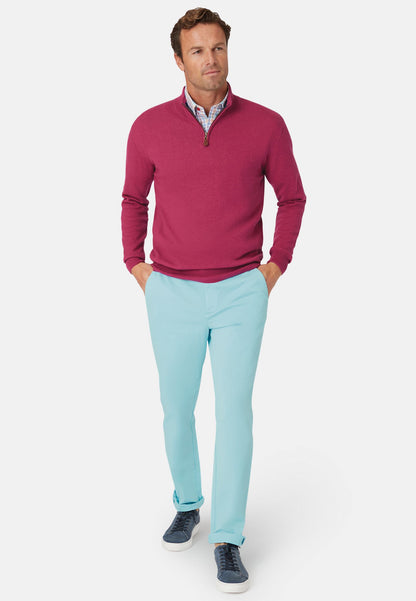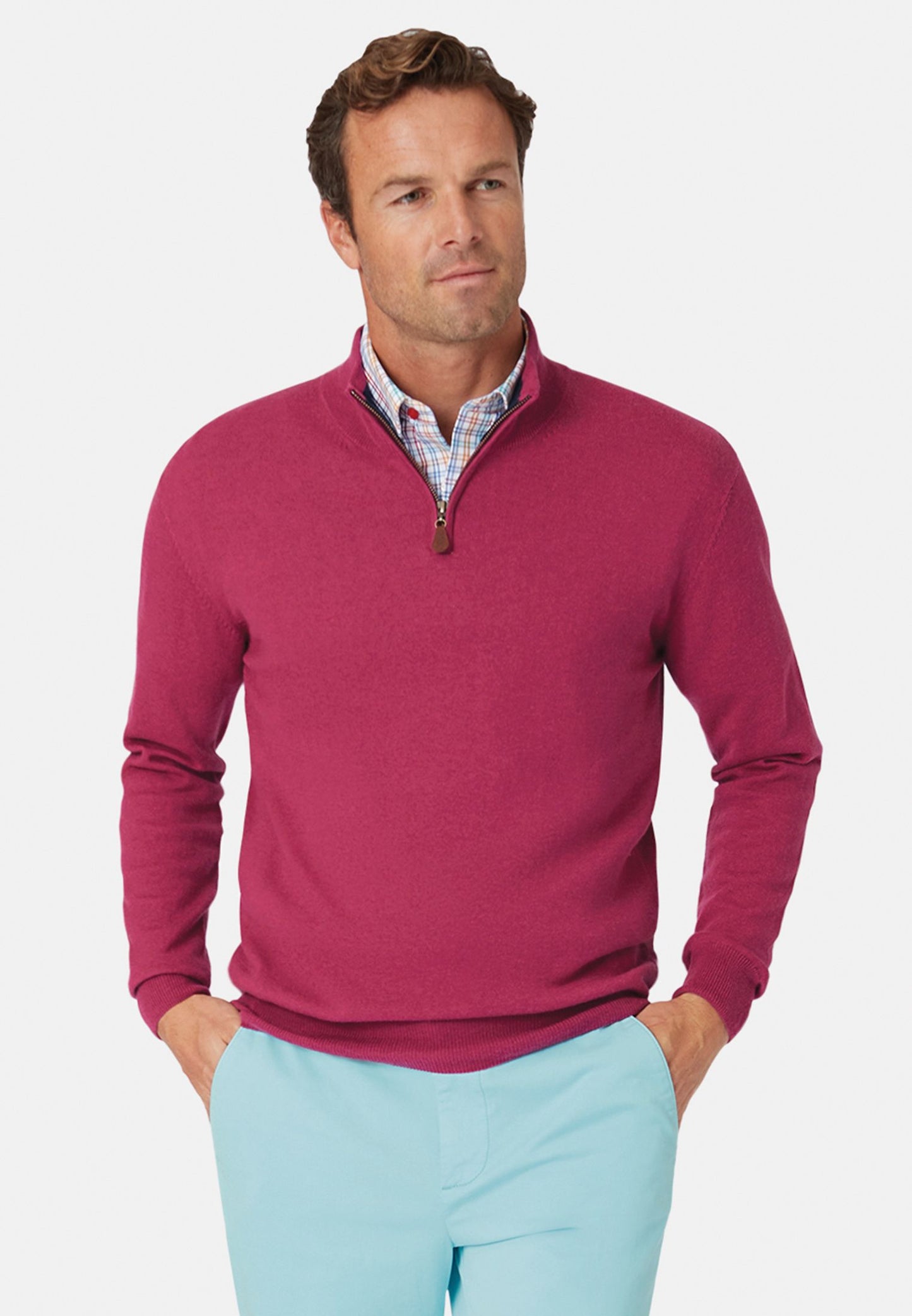 Sussex Raspberry Cotton Merino Zip Neck Jumper