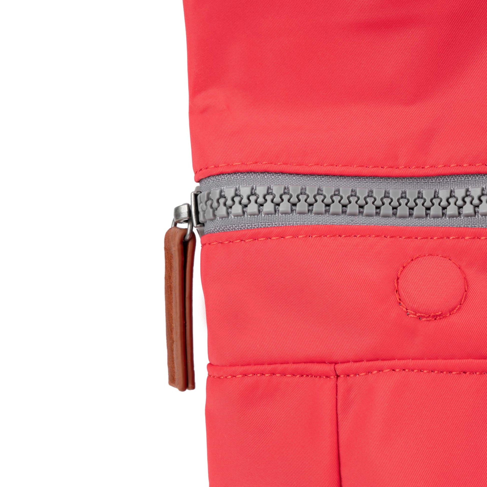 The Canfield comes in both Recycled Canvas and Recycled Nylon options. The Nylon has a shiny look and smooth feel, and the Canvas has a textured look and matte feel. See our Sustainability tab below for more information.