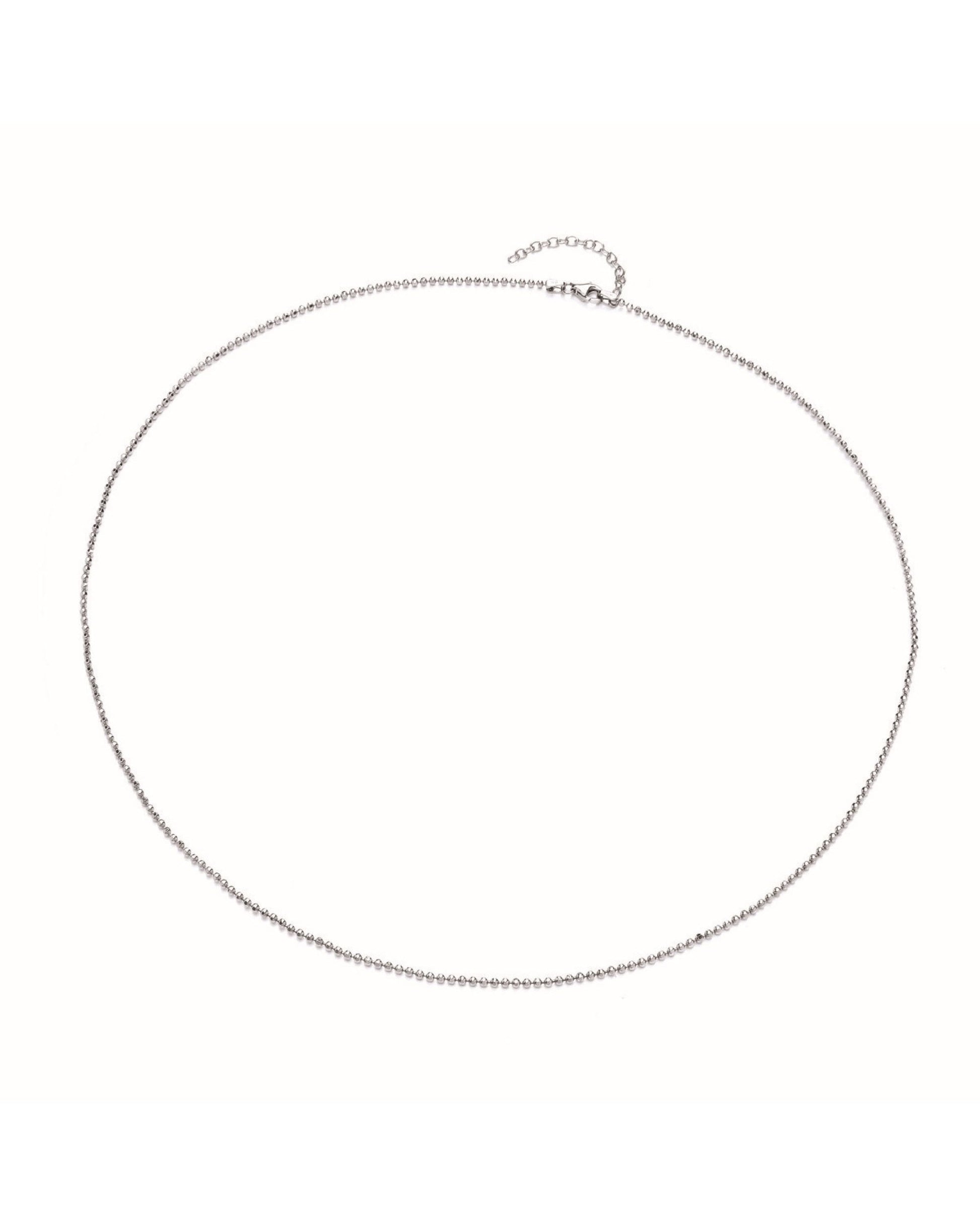 A sterling silver chain from Cavendish French, which is known as a popcorn chain because of the design. It is rhodium plated to prevent tarnishing and is available in a number of different lengths so you can choose the perfect length for you. The shorter length necklaces look perfect with our smaller cubic zirconia pendants and the longer lengths are great with designs from our Celestial Collection and some of our bolder statement cubic zirconia pendants.