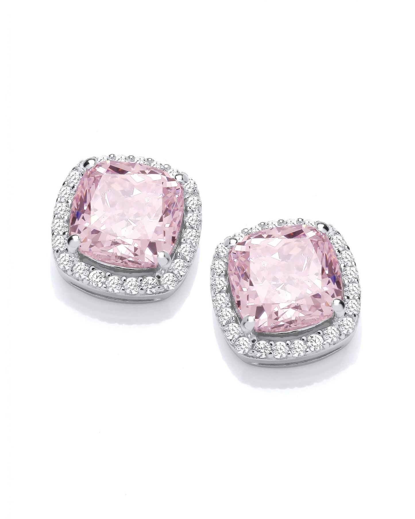 Silver & Pink Cubic Zirconia Square Cushion Earring