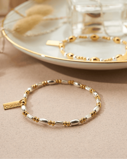 This beautifully minimalistic piece is a must-have for someone who loves clean cut, classic style, designed to be worn alone or layered with your other ChloBo pieces to add more texture to your growing stack. Handmade with 925 Sterling Silver and Gold plated beads, this piece adds just enough sparkle for every day, and keeps you on trend with a contemporary mixed metal look.