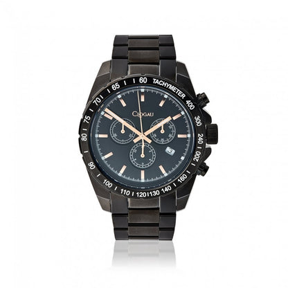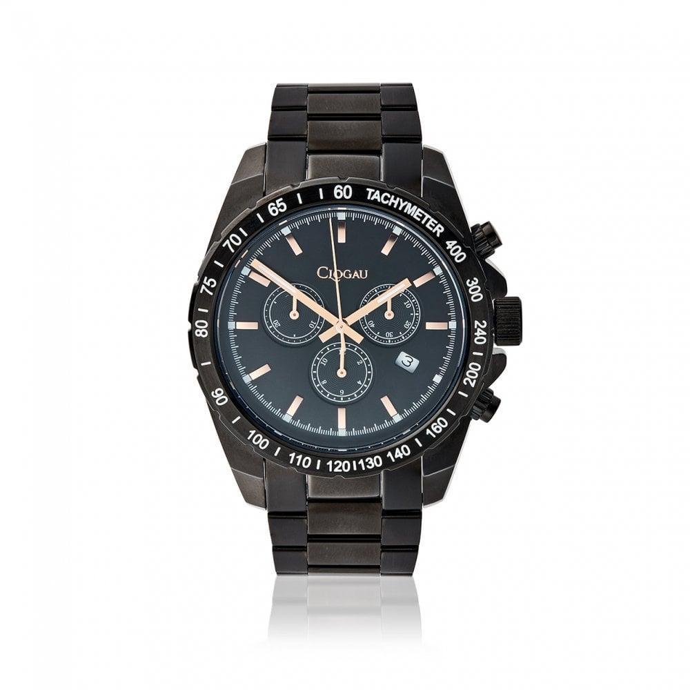 Tough, durable and stylish, get ready for game time with our Men’s Black and Rose Gold Sports Watch. Made from stainless steel containing rose gold and black IP plating, the display comes courtesy of a plan style black coloured face with rose gold-coloured hands. Built for action, it’s held in place by a classic oyster bracelet secured with a butterfly clasp.