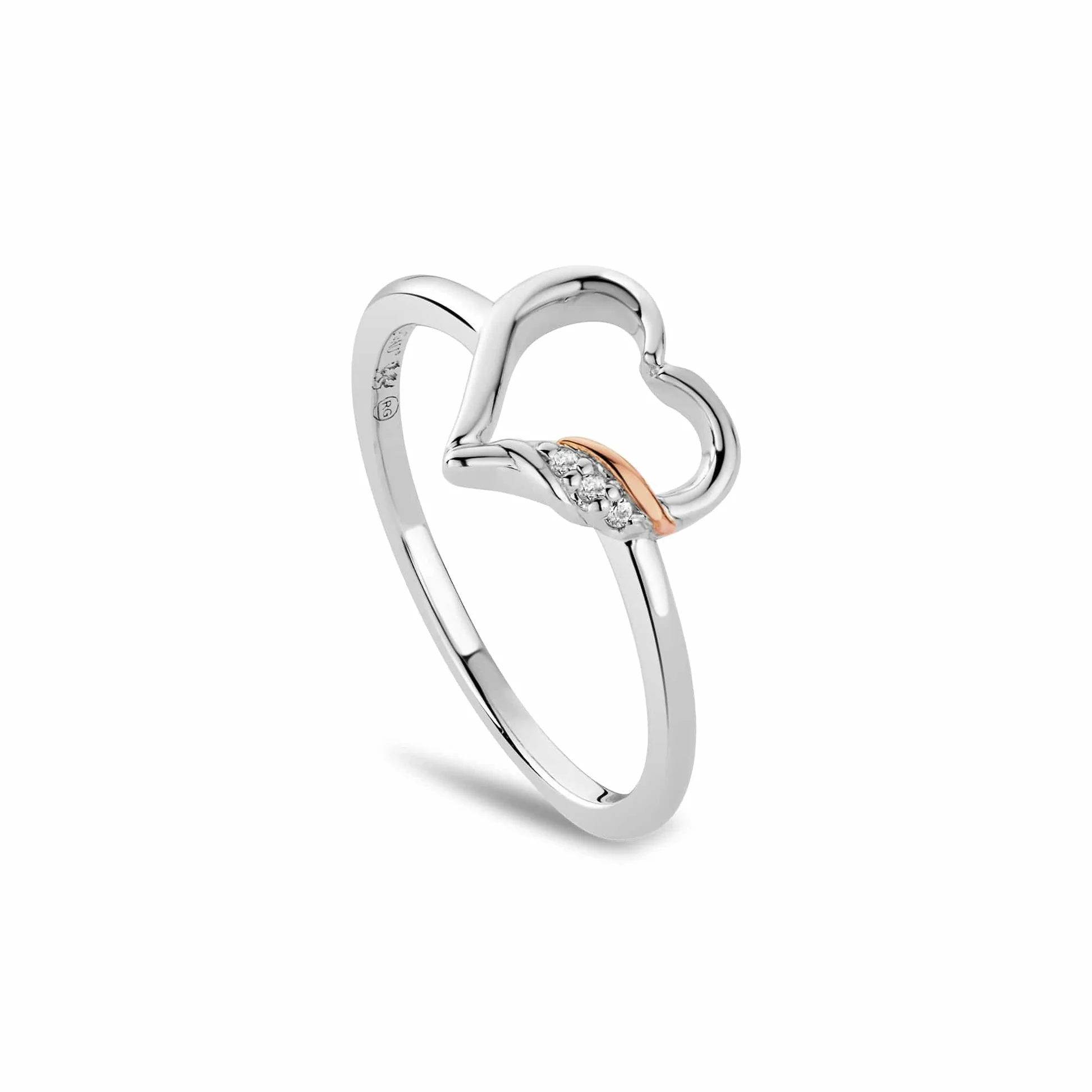 Past Present Future Sterling Silver Heart Ring with Topaz
