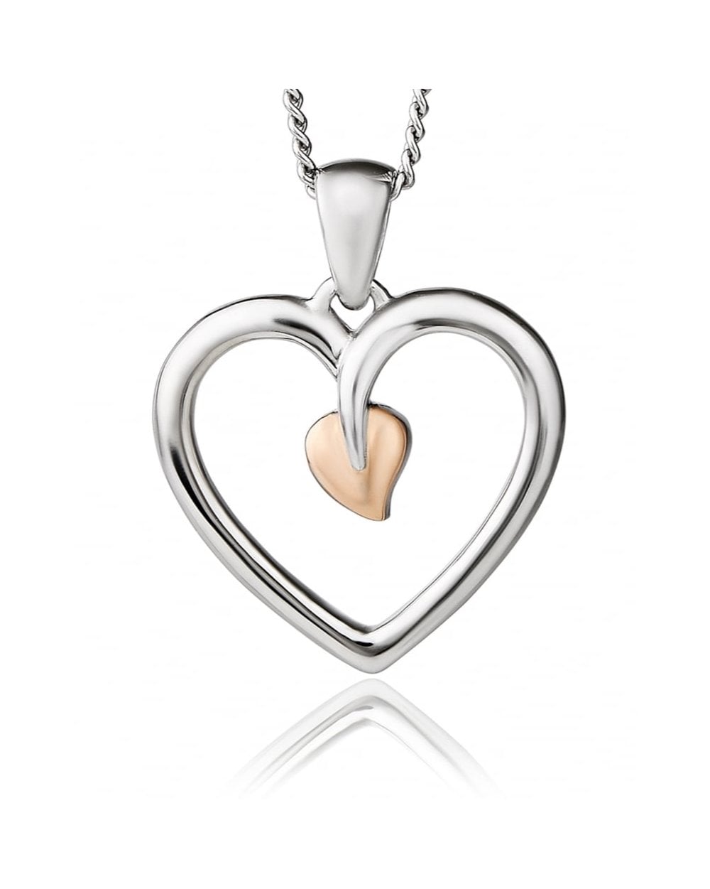 Clogau's iconic Tree of Life® motif symbolises creation, growth and renewal, making a wonderfully uplifting addition to your outfit. The sweeping heart-shaped vines of our Tree of Life® Sterling Silver Heart Pendant are tipped with 9ct rose gold detailing and clustered to form a pretty four-leafed flower.