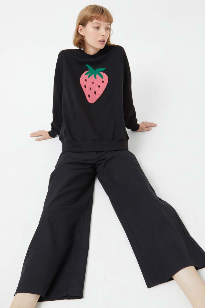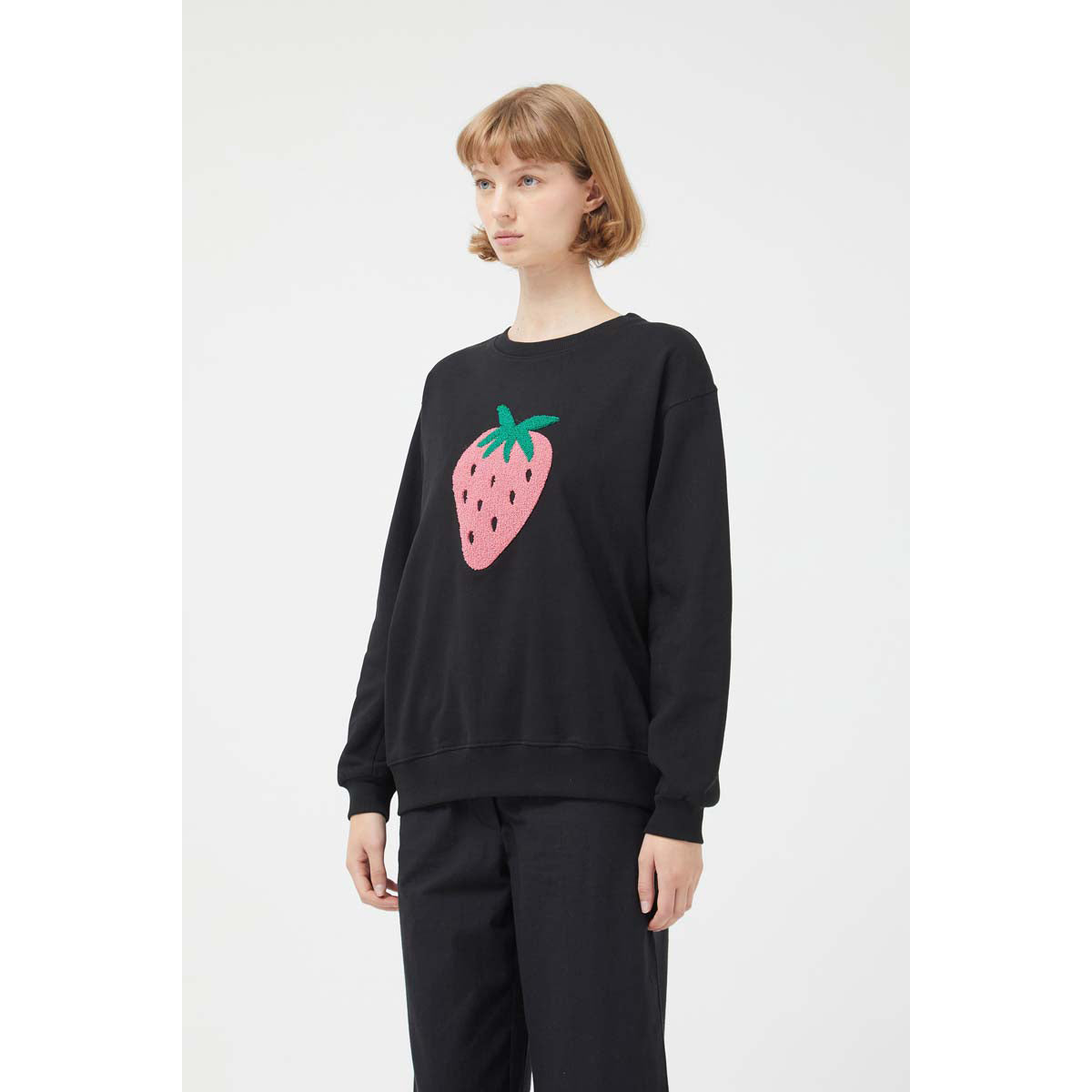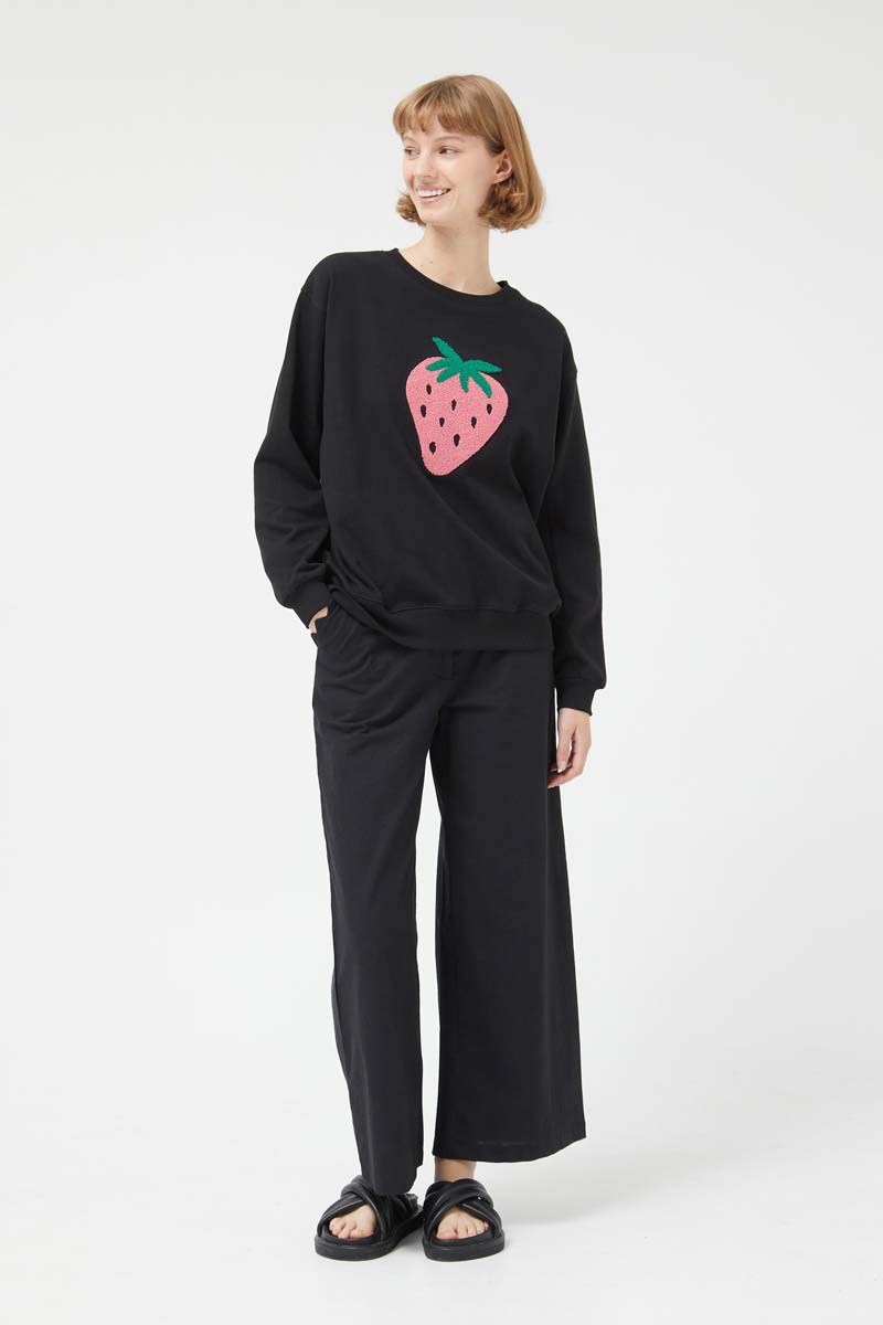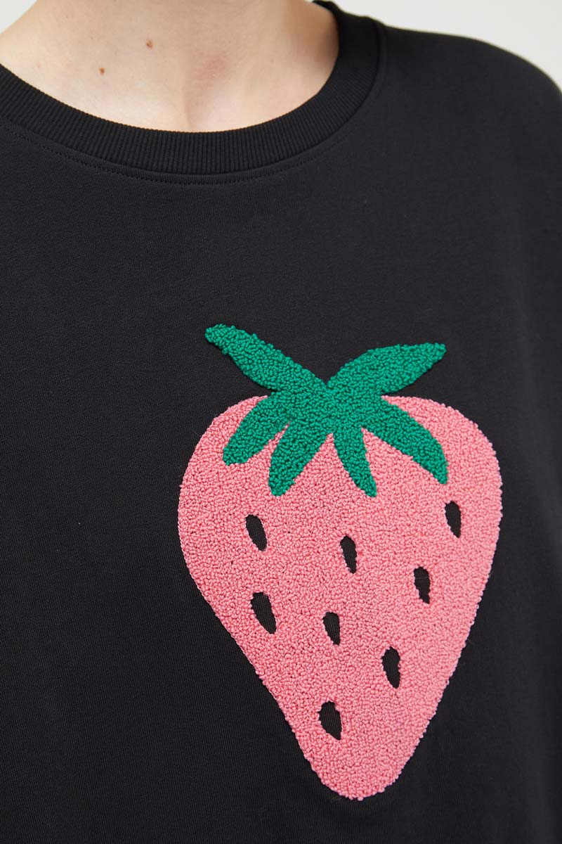 Cotton sweatshirt with strawberry print. With a round neck and long sleeves. Detail of rib finishes. The model is 177 cm tall and wears size S.