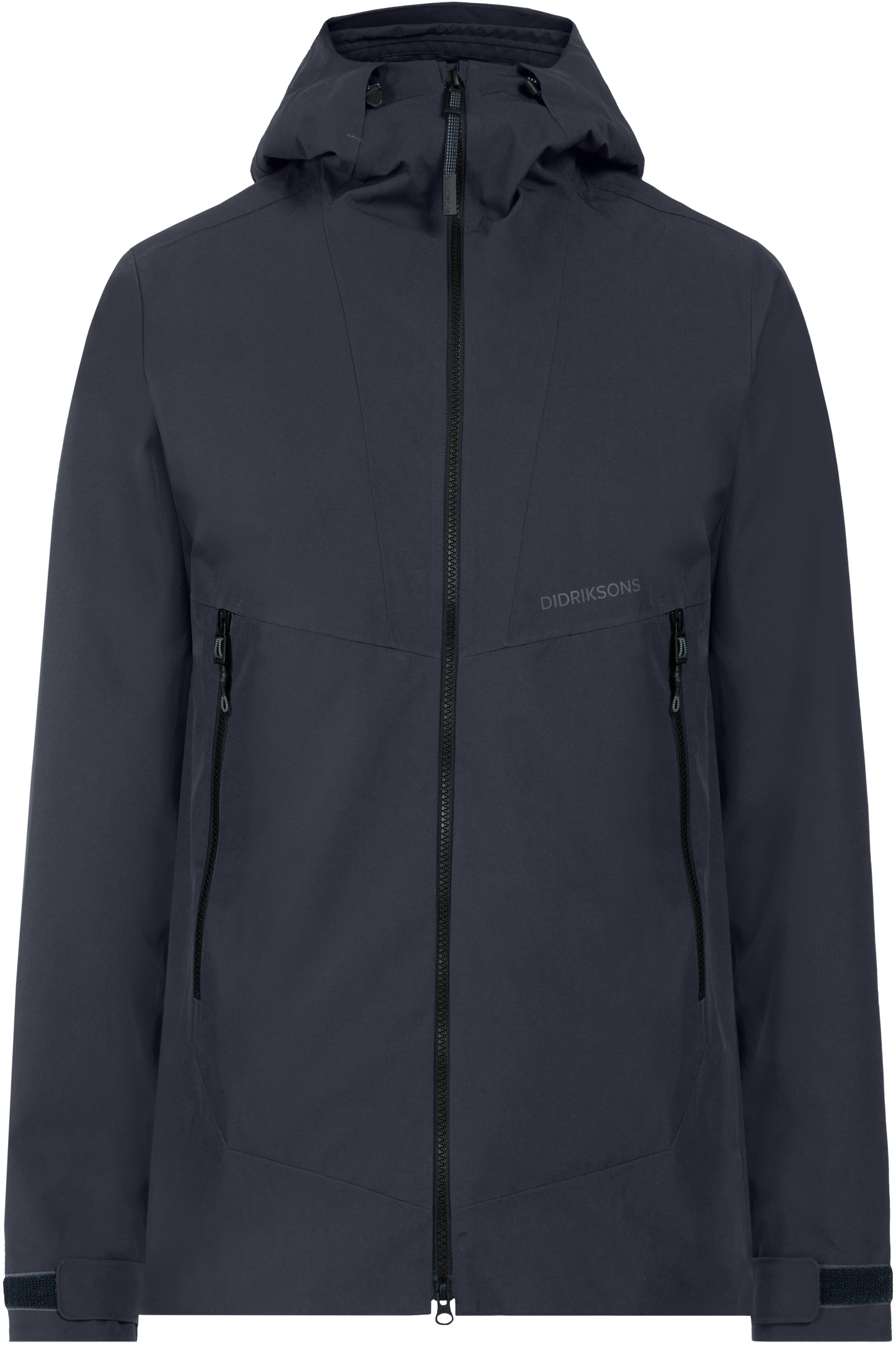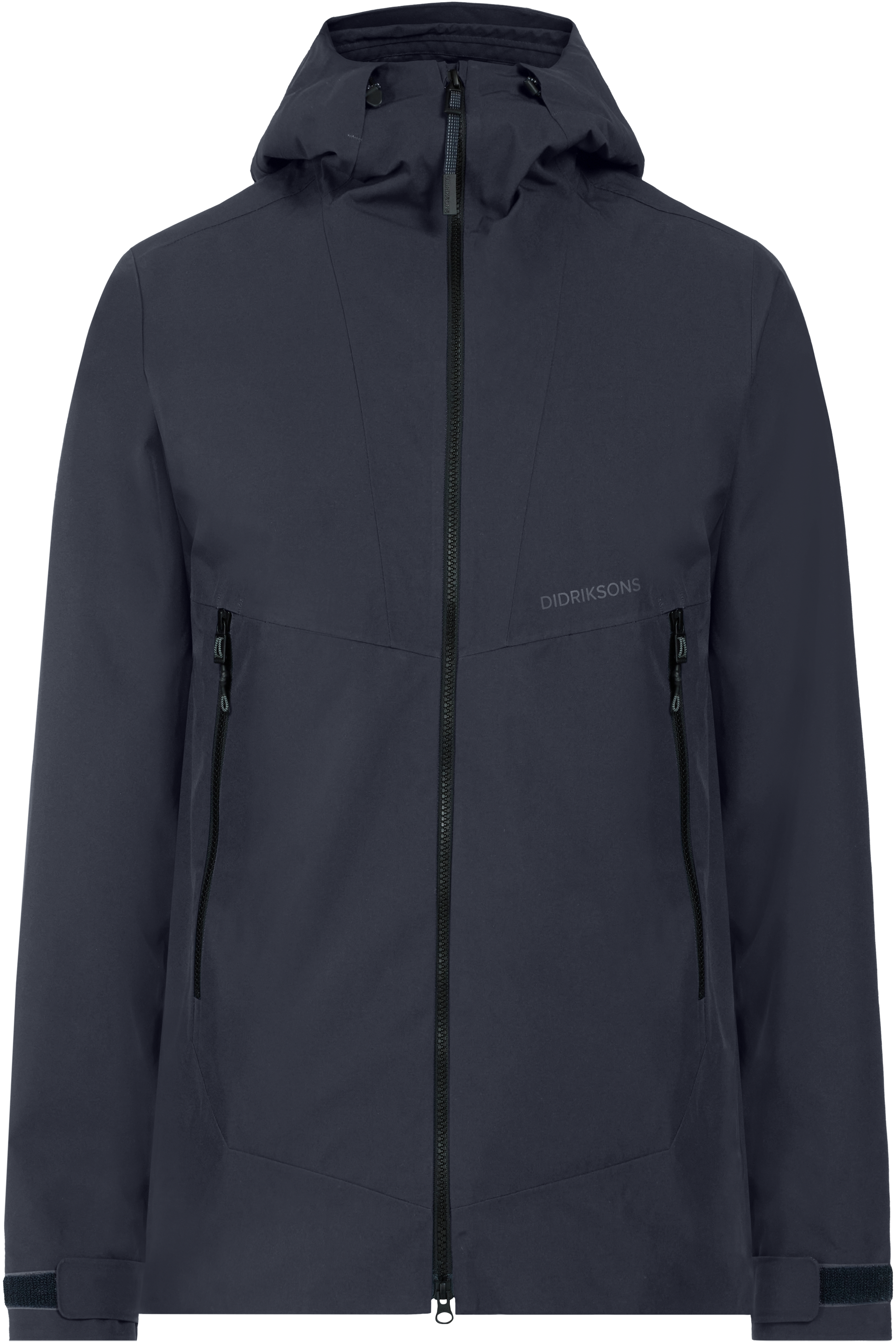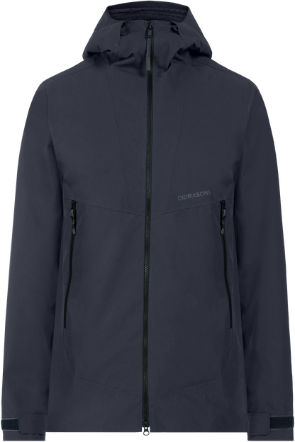 The jacket has a fixed hood with a shaped brim that can be adjusted in two directions for optimal protection. The cuffs can be adjusted with Velcro for a perfect fit, and the hem can be adjusted with a drawstring. Practical pockets include an inner zipped pocket and two outer zipped pockets for secure storage. Reflective details, including a logo and zip details, increase visibility in the dark.