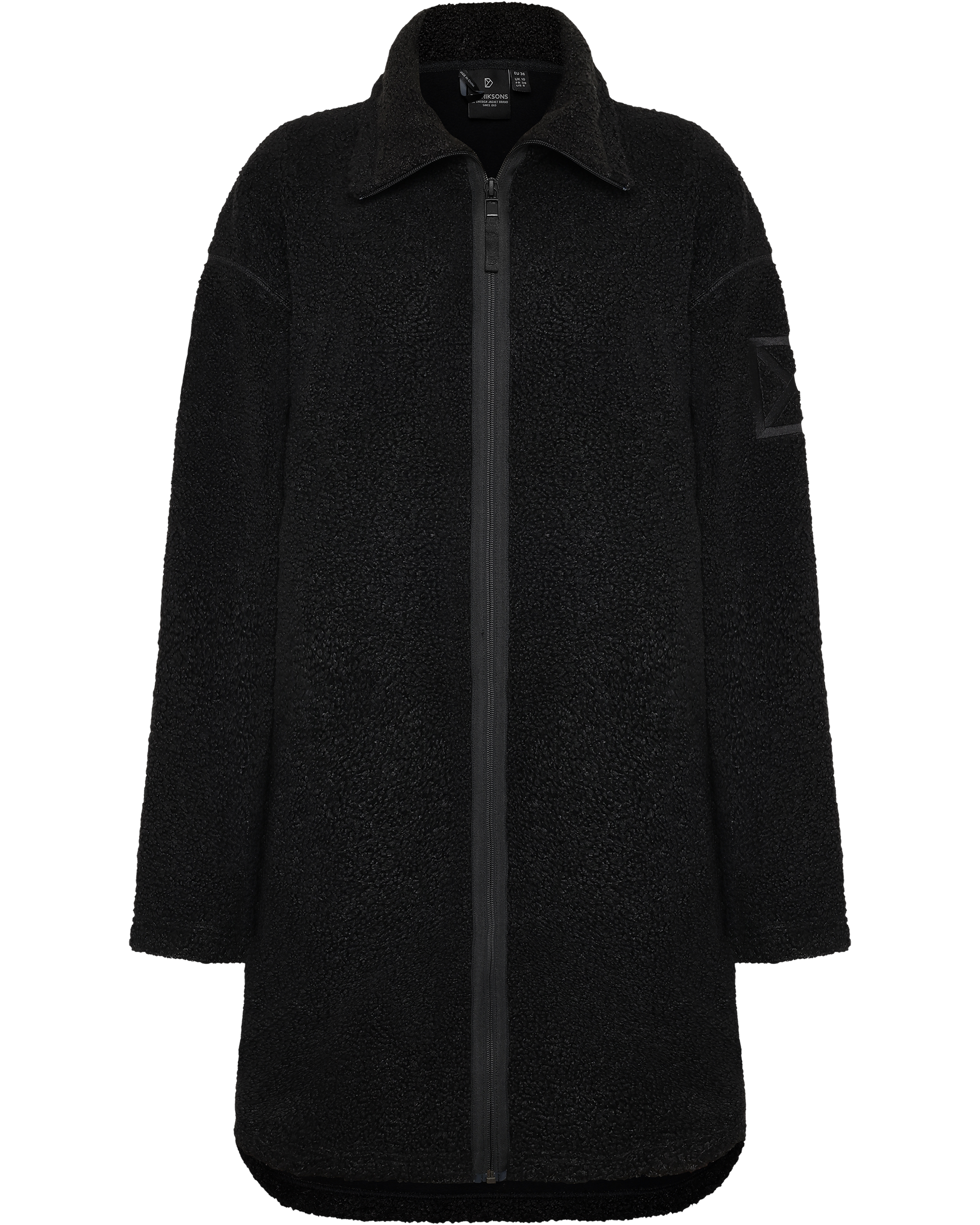 Jill is a long, cozy pile fleece sweater with a warm and soft brushed inside that protects you from chilly winds. It has two side pockets, a front zipper, and a high, soft collar for extra comfort.