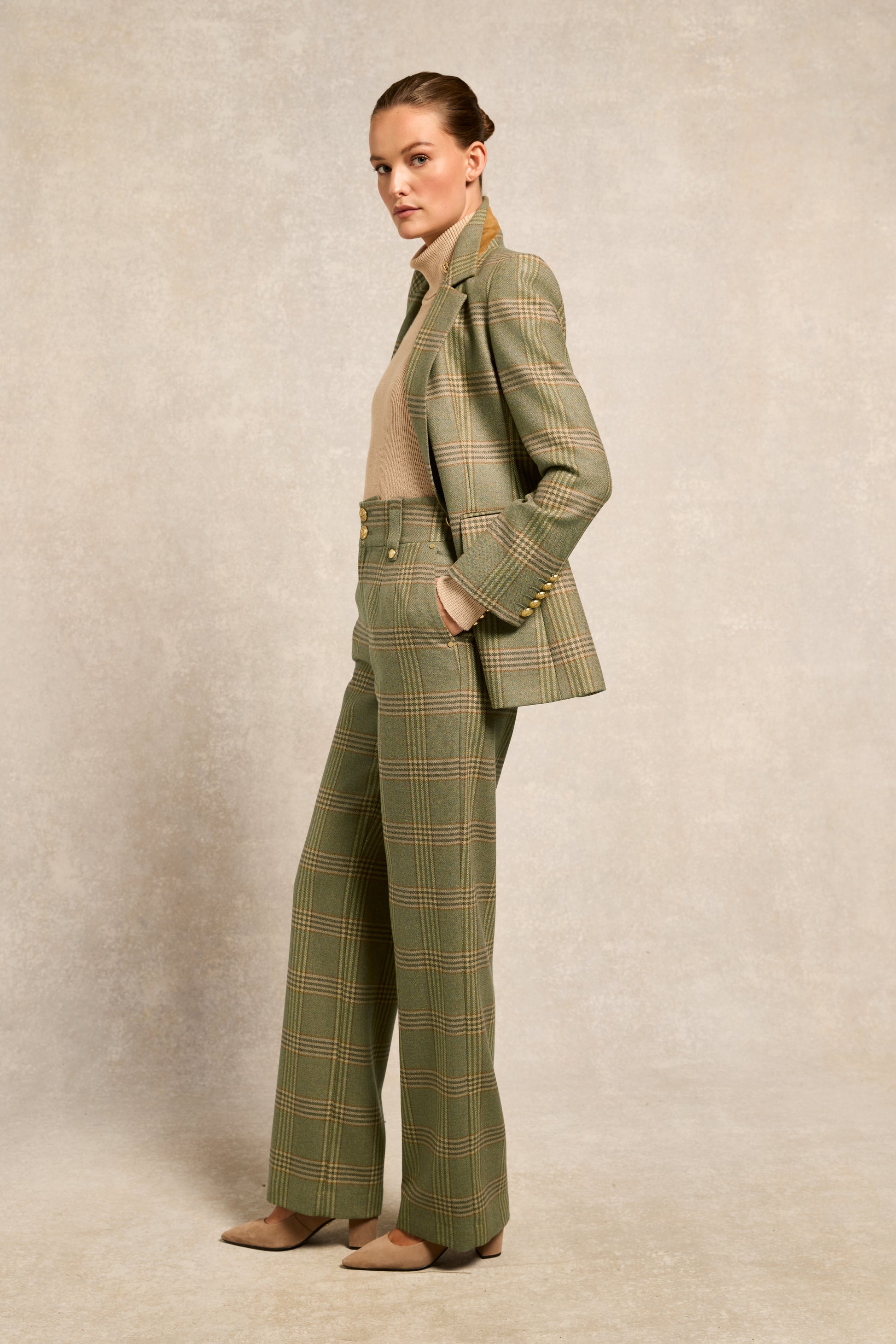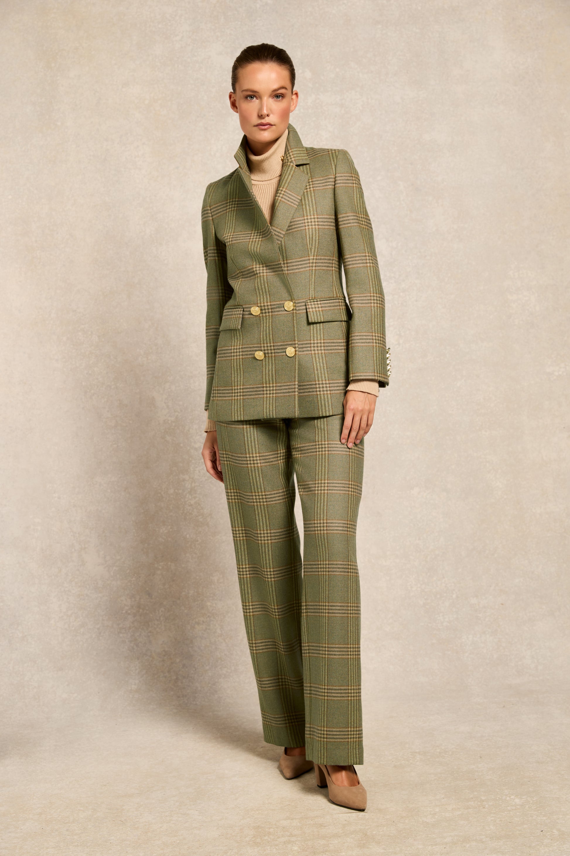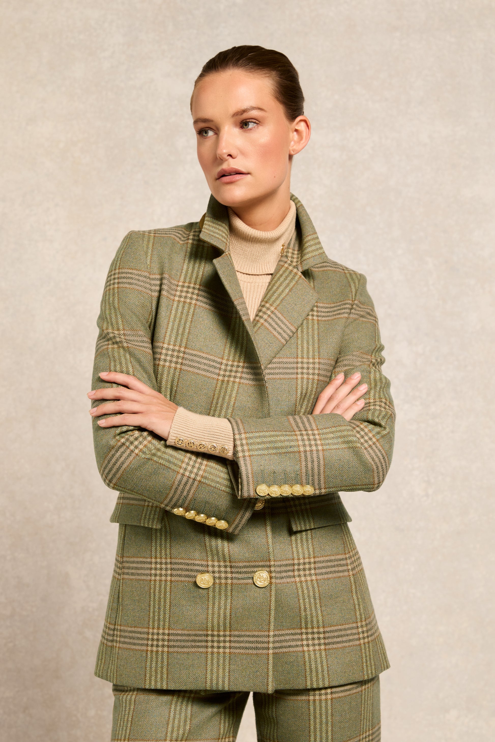 Designed to create a sharp tailored silhouette worn open or closed, the Double Breasted wool blazer has been handmade in the UK. Crafted from our statement houndstooth fabric & fully lined with a luxury stretch lining for extra comfort, this piece is a must-have staple for your wardrobe. With bold lapels & subtle hip pockets, each blazer has been elevated with HC signature gold hardware to the front and cuffs.