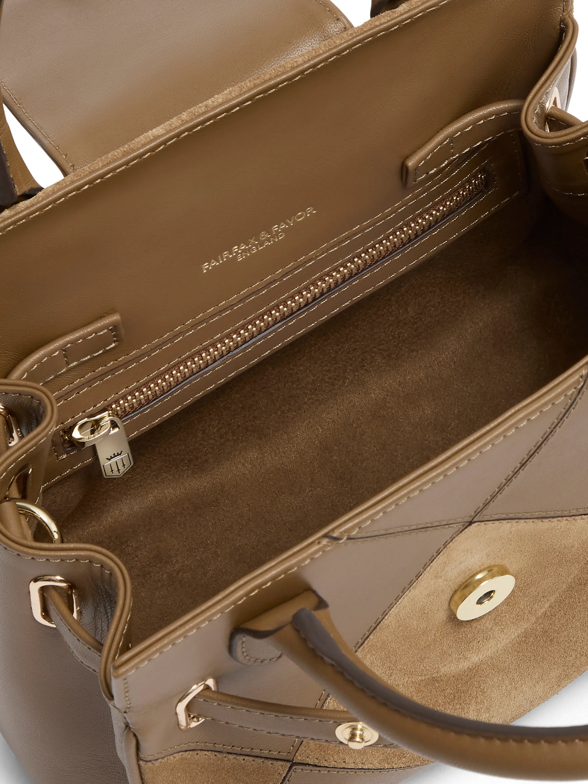 A new addition to the iconic family, the Harlequin Mini Windsor boasts a refined patchwork design that’s equally smart and eye-catching. With all the details you expect, including a detachable shoulder strap so you have a choice of wearing it over your arm or your shoulder – and comes in a wearable neutral shade of tan to complete so many of your new season looks.