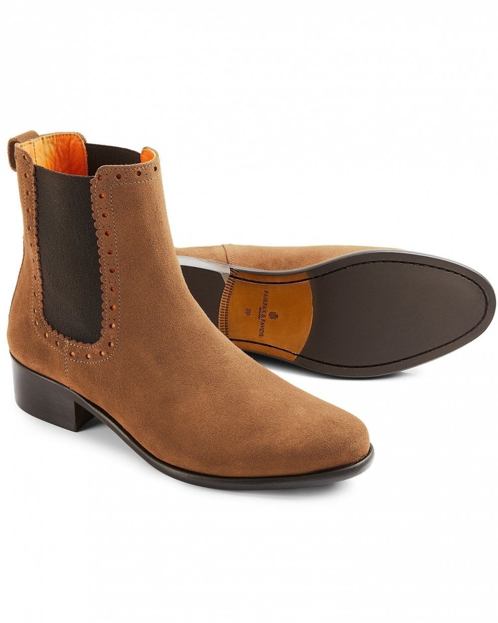 The Brogued Chelsea Boot from Fairfax & Favor is an effortlessly versatile boot, made with luxurious suede and soft scalloped edges. These functional yet stylish boots are set on a shallow heel, featuring an elegantly rounded toe and the signature branded shield. A true wardrobe essential that will carry you through the seasons.