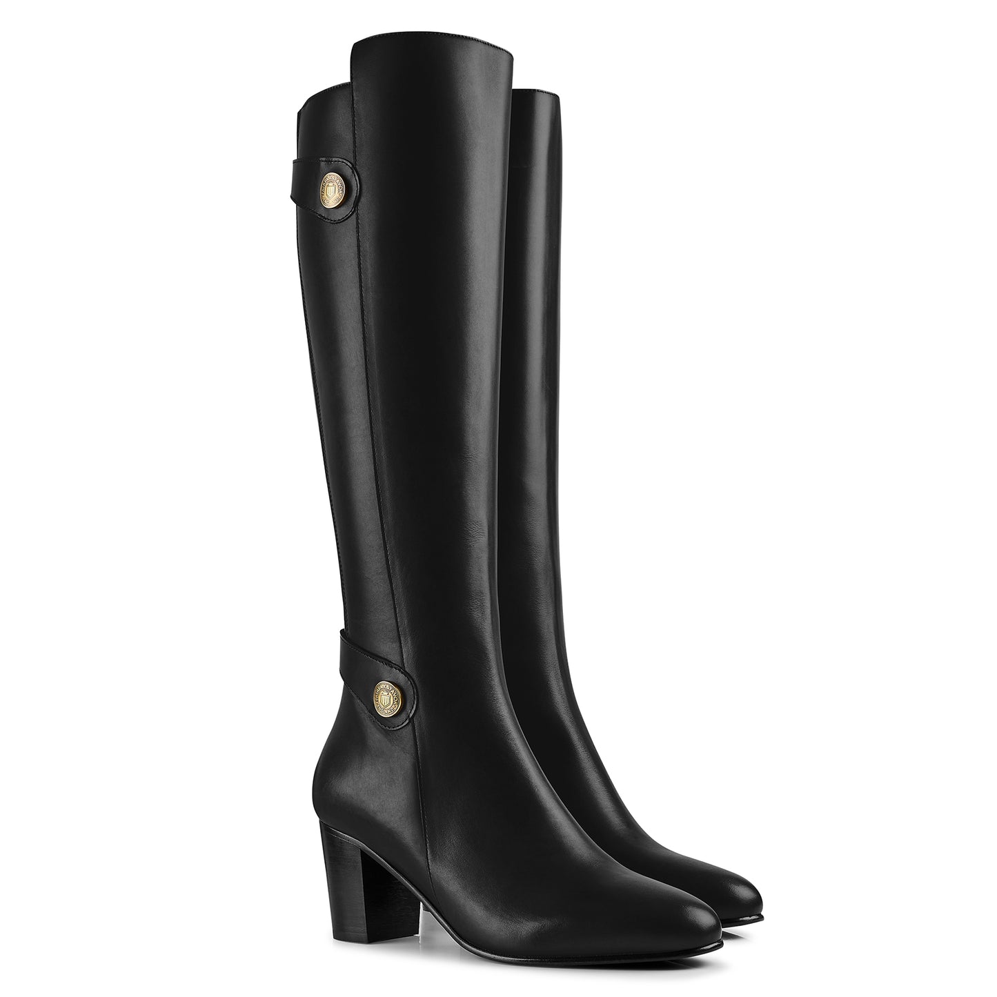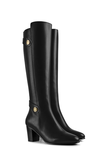 Sophistication itself, Fairfax & Favor's Upton Heeled Boot is designed to elevate any look, effortlessly. With an almond toe shape, wearable 7cm block heel and antique brass coin hardware detail, the look is confident yet understated - with two timeless colours to choose from to complete your smart wardrobe.