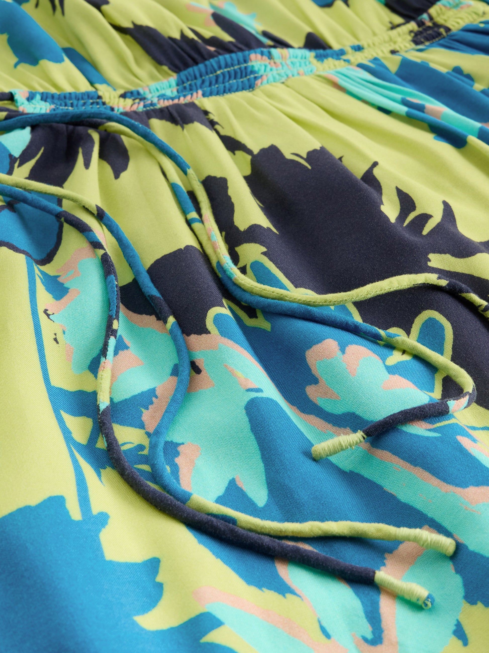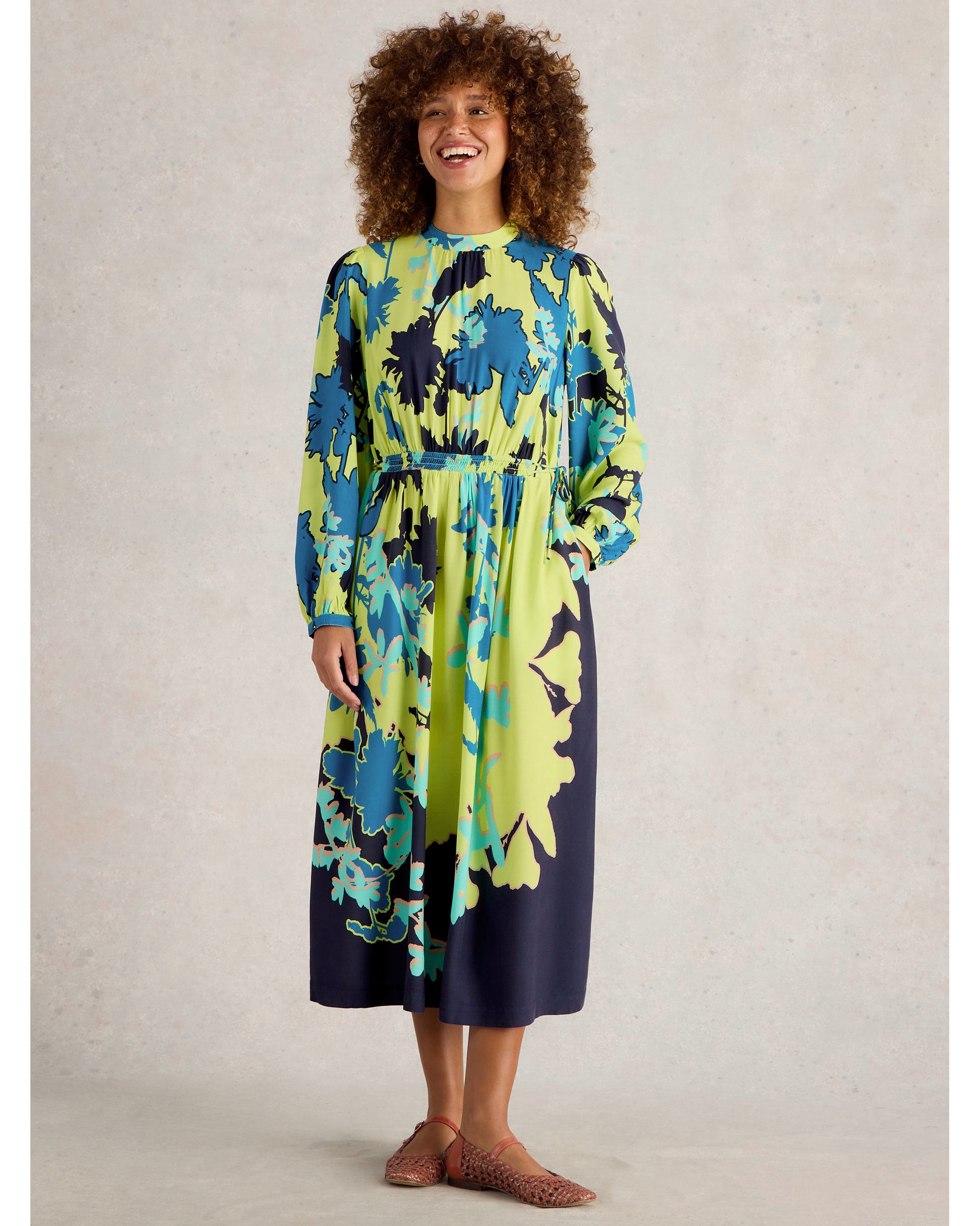 The Freya midi dress is like a breath of fresh air. A bold botanical print in bright and zesty shades. A fitted bodice with a free-flowing skirt. And a gathered waist with tie details at the side. Easy breezy.