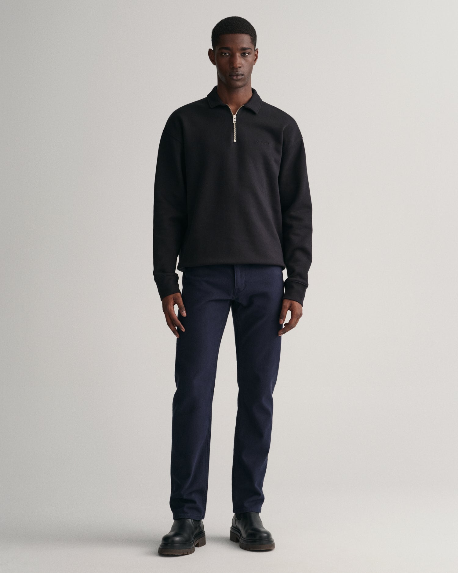 These Regular Fit Soft Twill Jeans are a GANT classic. Cut for a regular fit and with a mid-rise waist, they are fashioned with a brushed twill fabric for extra comfort and stretch. The jeans sit slim over the hip and are straight at the knee and leg. They are detailed with 5-pockets, branded shank buttons, a zip fly closure and a leather GANT logo patch on the back.