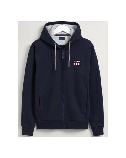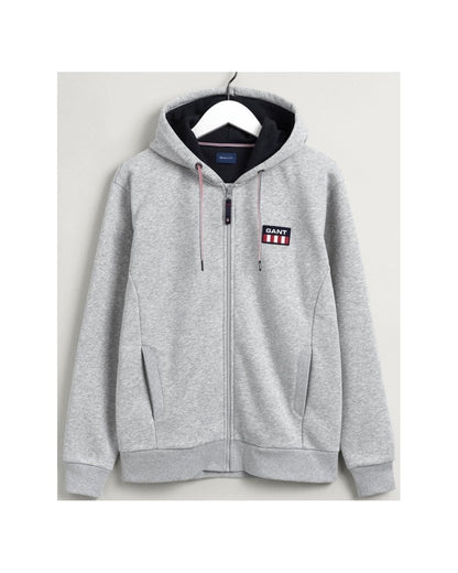 The Retro Logo Full Zip Hoodie is a classic staple from Gant, a fantastic addition to your wardrobe. This timeless hoodie features a full length front zip, a split kangaroo pocket, ribbed details and the Gant logo to the chest.