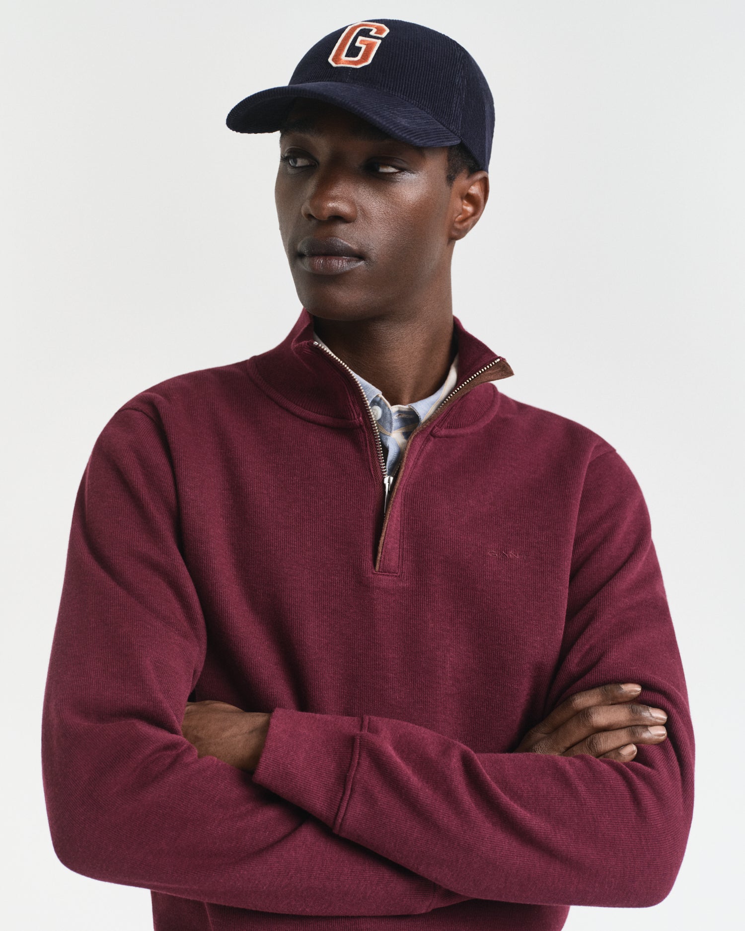This piece from GANT elevates the everyday sweatshirt, giving you a dressier alternative whilst remaining comfortable. Made from 100% cotton in a regular fit, it features a half-zip collar, ribbed detailing and imitation suede accents on the placket and neck tape. This sweatshirt is complete with a tonal GANT logo embroidered at the chest.
