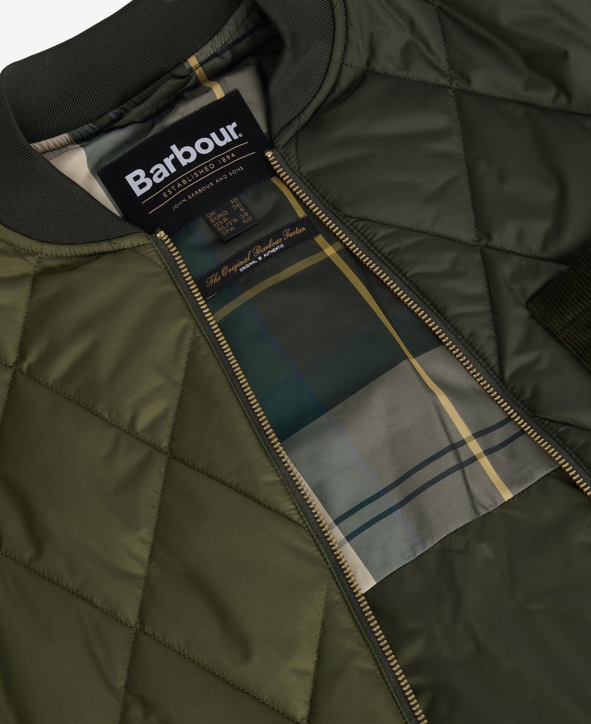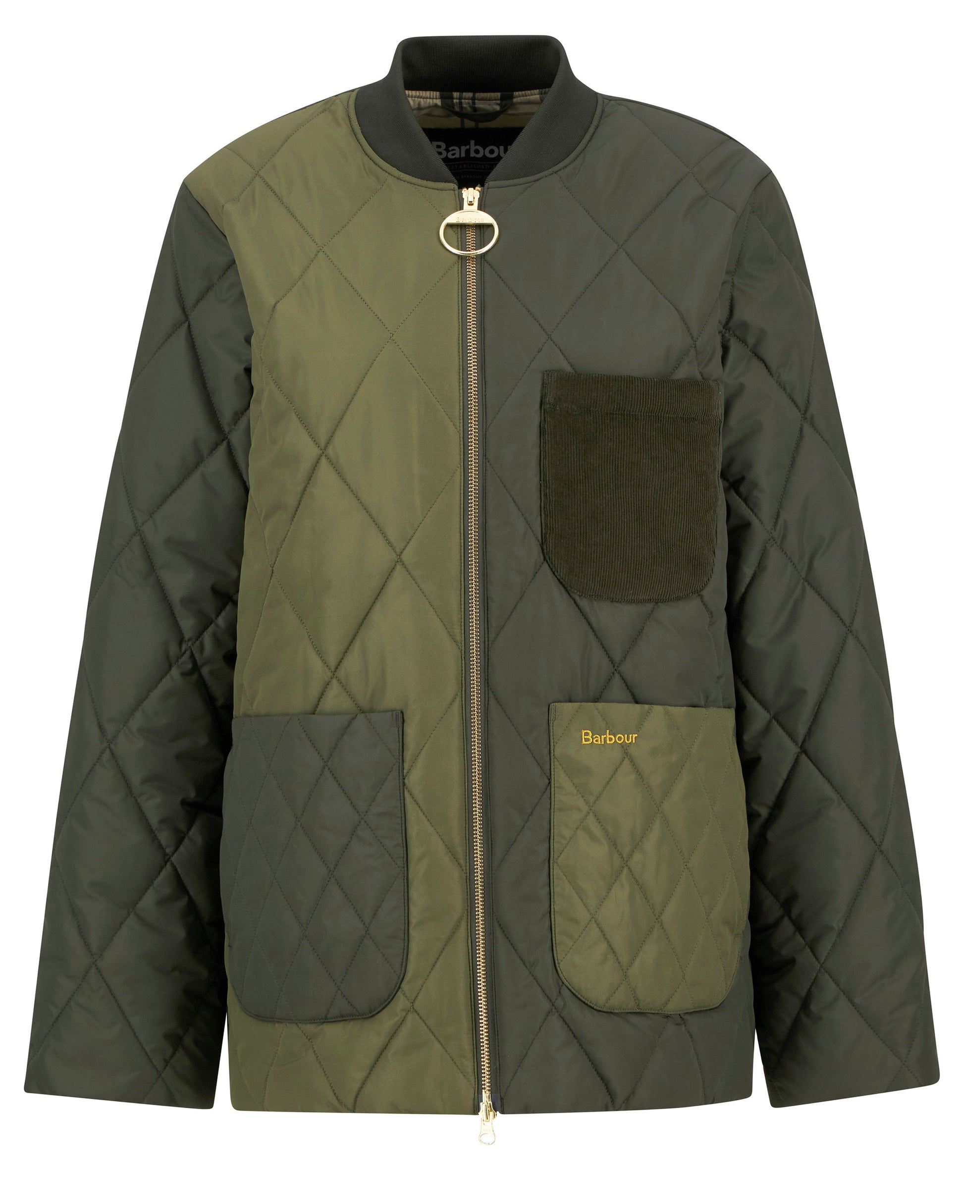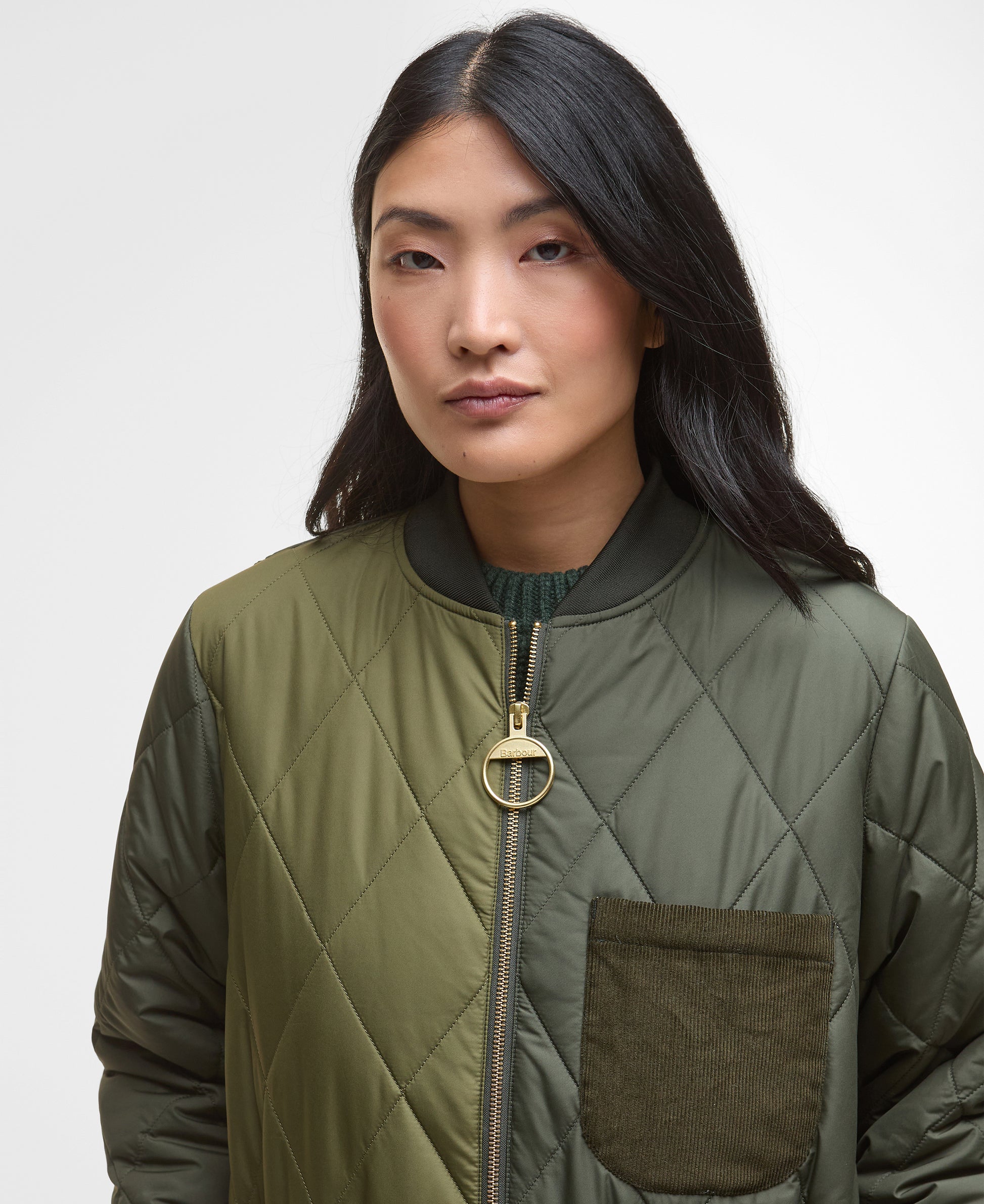 The perfect balance of laid-back athleisure and timeless style, the Barbour Leonie Quilted Bomber Jacket is a contemporary style. Featuring woven cuffs and collar, with Liddesdale-inspired pockets and contrasting quilted details, this longer-line bomber jacket-inspired silhouette is a combination of our signature details interwoven with a modern silhouette.