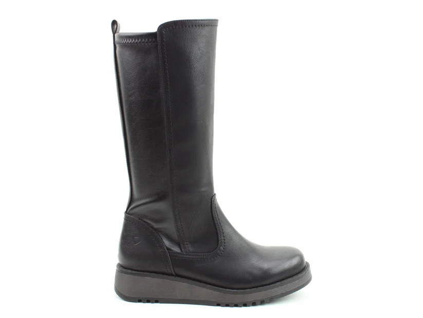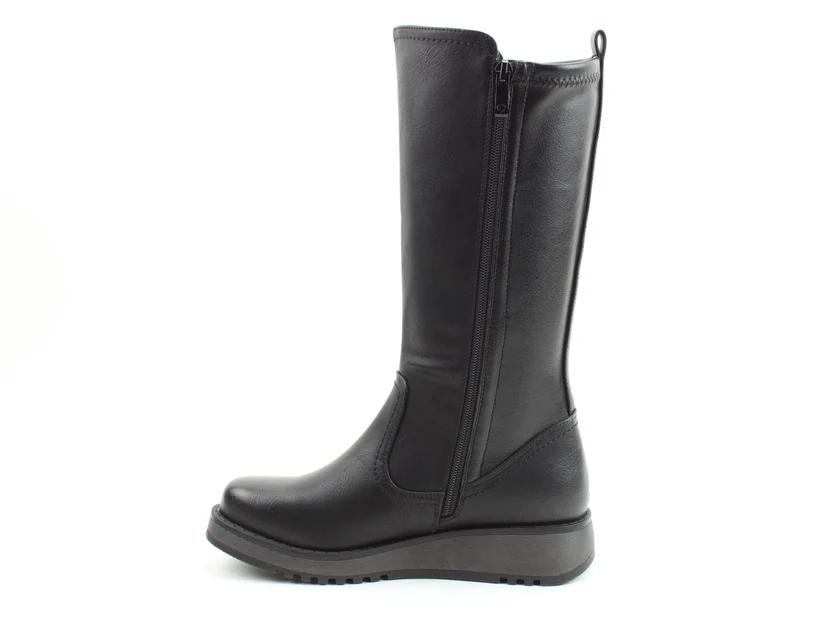 Fabulously stylish vegan friendly ladies tall comfort boot featuring Heavenly Feet's 3-heart out-sole. Soft easy-care wipe clean upper. The upper design allows for a little expansion around the calf, for a more comfortable fit on the fuller calf, by way of the twin-elastic stretch panels either side of the heel pull tab. Soft textile lining is complimented by a removable memory foam insole for supreme underfoot comfort. A lightweight, durable design this boot is the perfect wardrobe essential for this season.