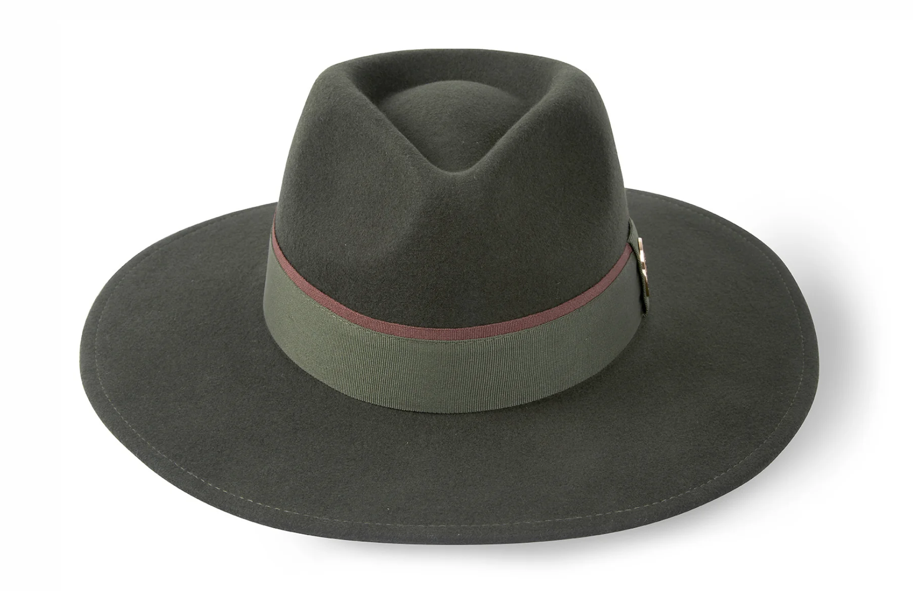 New this season, the Oxley Fedora in Olive Green adds to our wide brimmed collection of hats, designed to make a statement.