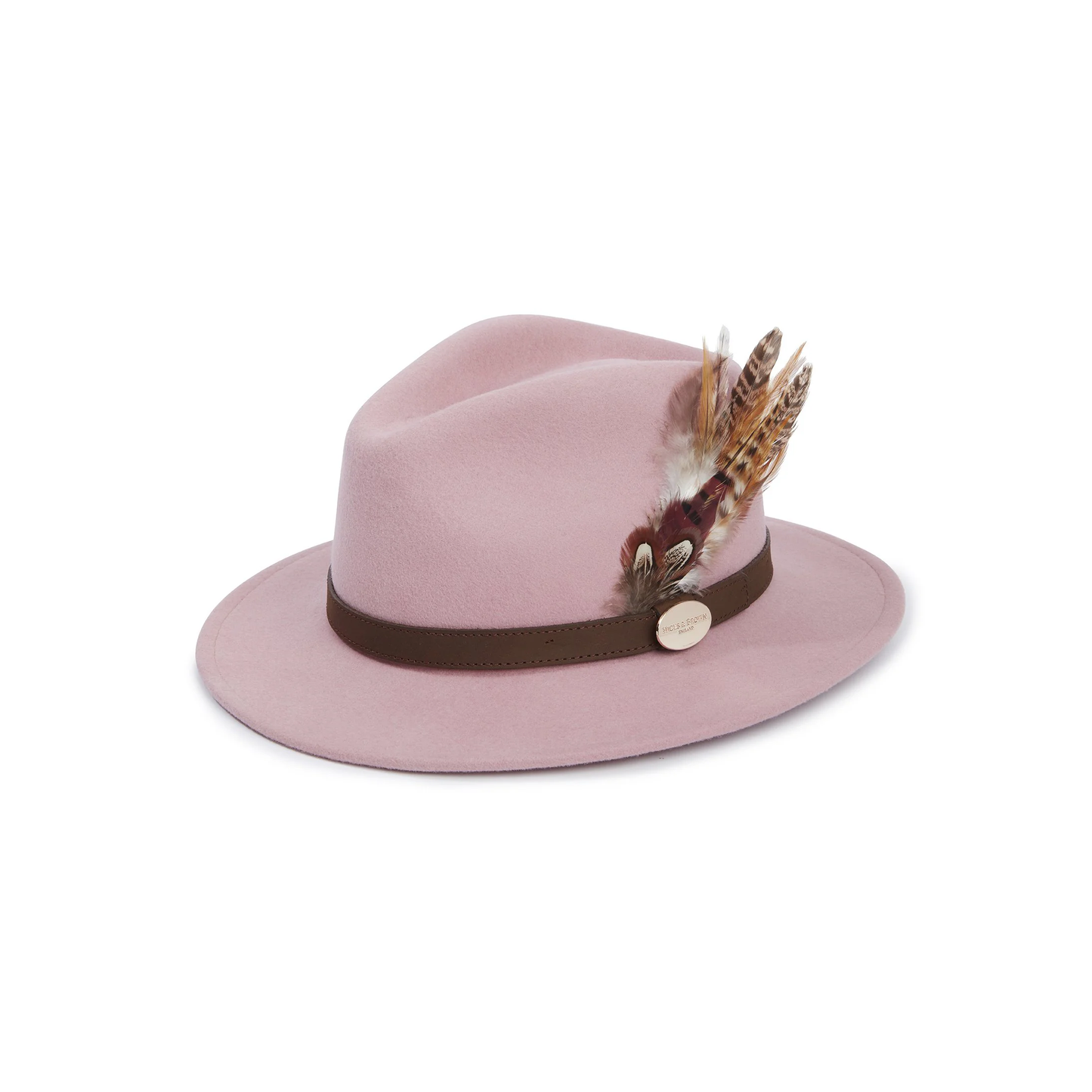 The stunning wool felt Suffolk Fedora is a timeless addition to your multi-seasonal wardrobe, hand finished with a cluster of natural feathers fastened behind a branded leather band.