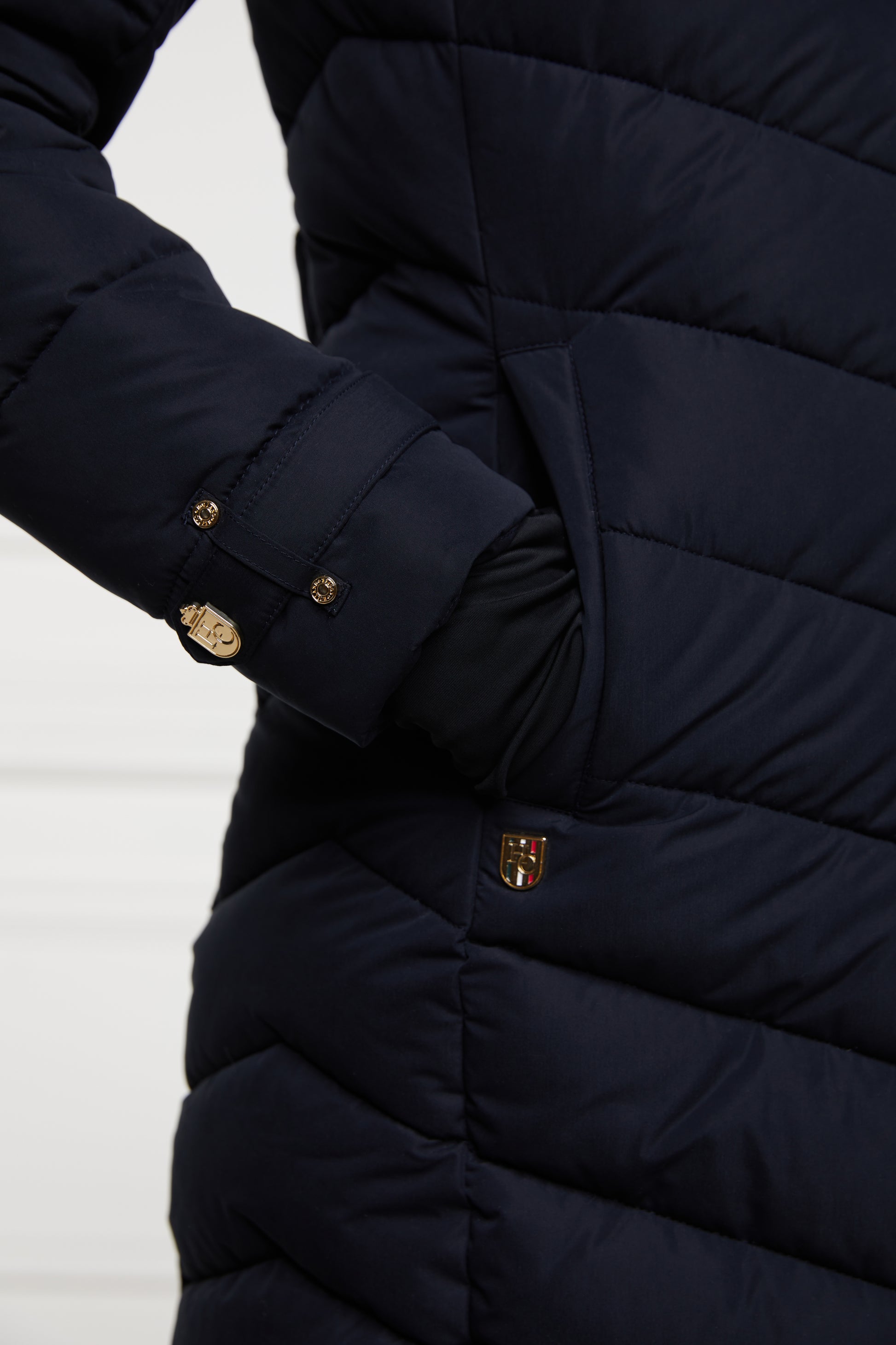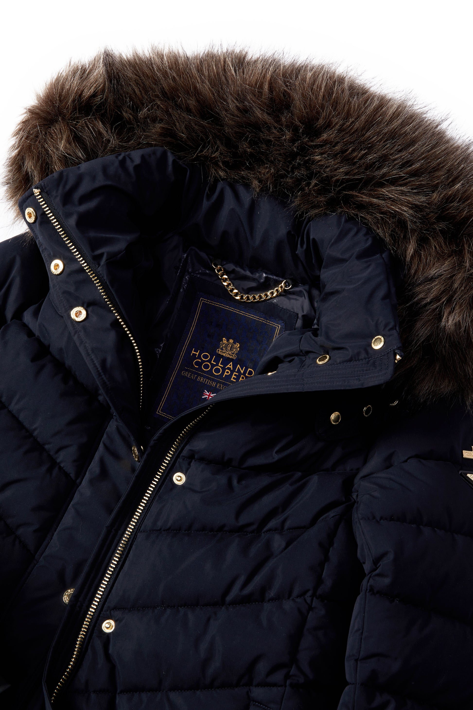 Created from a wind & water-resistant shell fabric, this durable coat has been filled with a premium eco fill to ensure ultimate warmth during those colder months. With detachable faux fur and detailed with our iconic gold hardware, this coat will elevate your winter wardrobe. Finished with two pockets to the hip and a two-way zip with a storm guard.