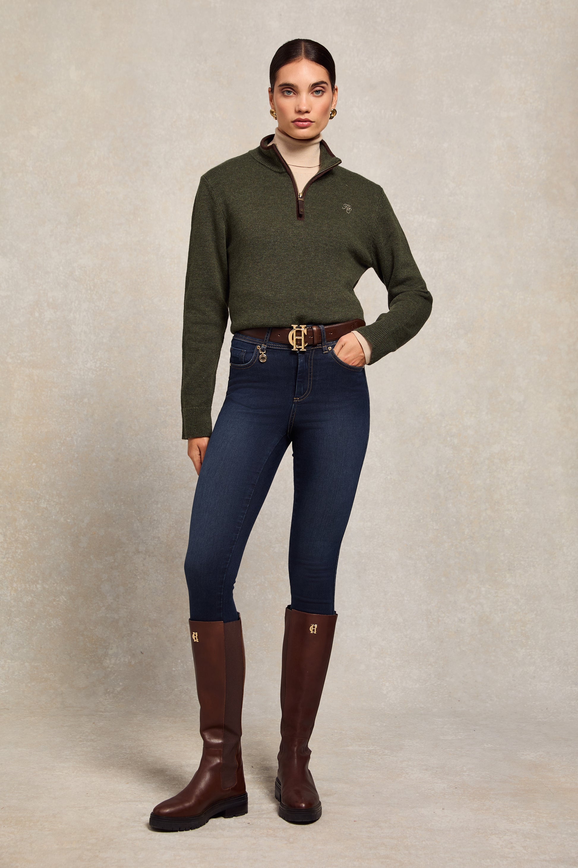 Redefining a wardrobe essential, the Contour Skinny Jean delivers the same super-skinny, body-sculpting fit made iconic by our Jodhpur Jeans. Reimagined with traditional five-pocket denim styling, these jeans combine contemporary design with timeless appeal. Perfectly proportioned back pockets enhance the silhouette, while the branded back jacron and signature gold hardware add a touch of luxury.