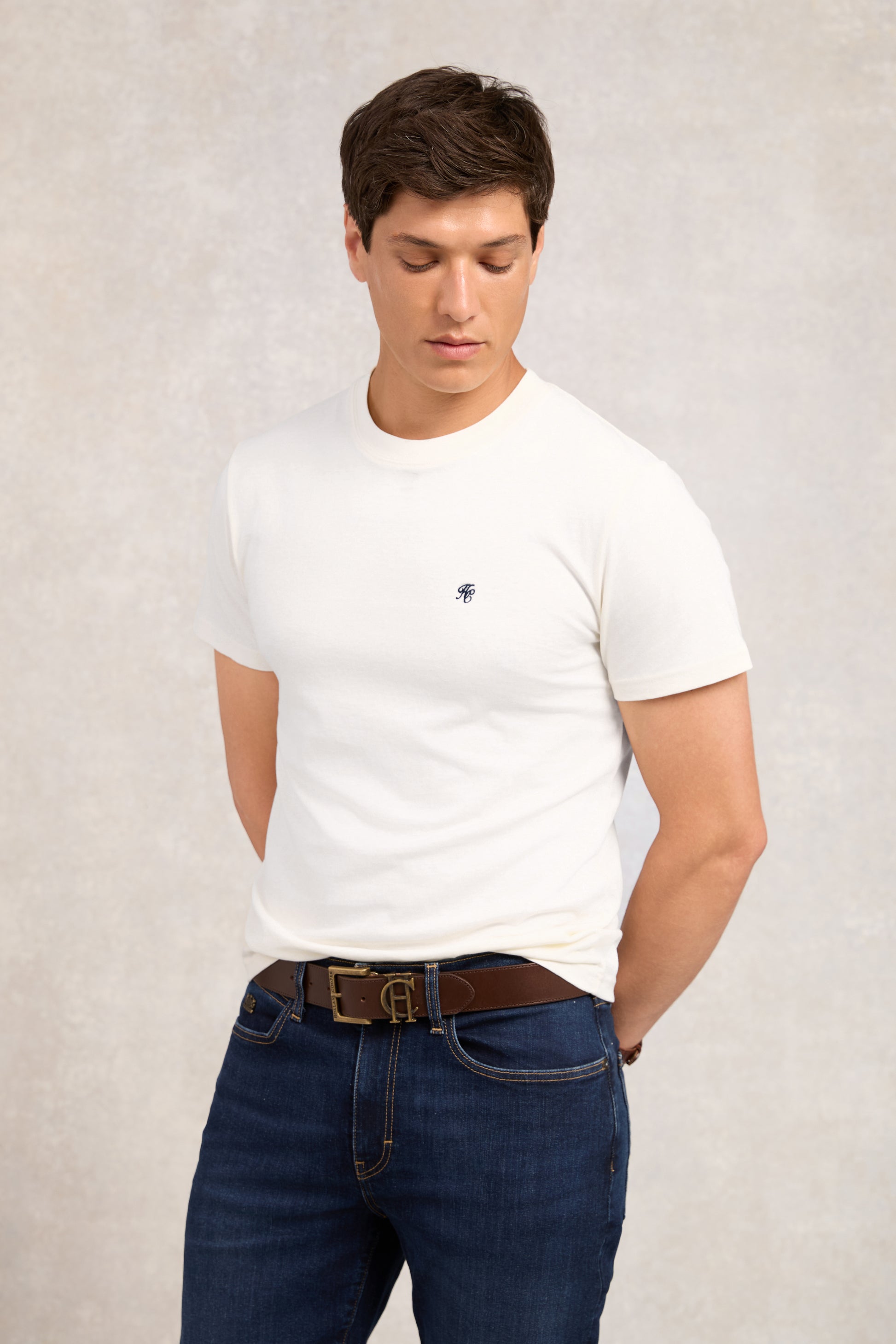 Sleek and slim-fitting, our Men’s Crew Neck Tee offers a modern take on a classic essential. Crafted from supersoft jersey fabric, it features a clean crew neckline with self-fabric rib for added structure. Subtle HC embroidery on the left chest is complemented by a signature back panel with additional HC detailing, delivering understated yet distinctive branding. The mid-length slim short sleeves and tailored fit make this tee perfect for layering or wearing solo with effortless style.