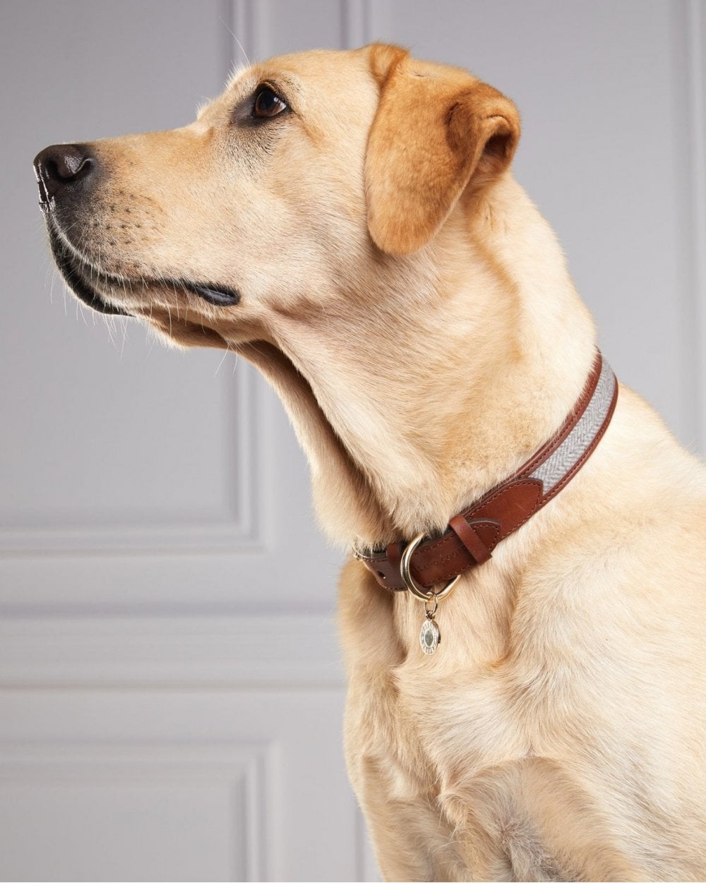 This luxurious classic dog collar from Holland Cooper is specifically designed for medium to larger dogs. Adorned with a British tweed, this collar has been cut from durable leather and made in the UK. Finished with the iconic Holland Cooper embossed branding, the collar fastens with a gold buckle and a branded gold charm. Pair with the matching classic dog lead for the ultimate luxurious accessory for your four-legged best friend.