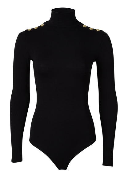 Holland Coopers' superior knitting technique ensures our bodies have a flawlessly smooth fit. Designed with a second-skin feel, this soft stretch bodysuit has a flattering thong brief that will remain undetectable beneath close-fitting tailoring or skirts. Due to the luxury super stretch fabric we can ensure that even those who are long in the body can be sure to have a comfortable fit. Adorned with gold HC crested rivets across the shoulders and cuffs for added style.