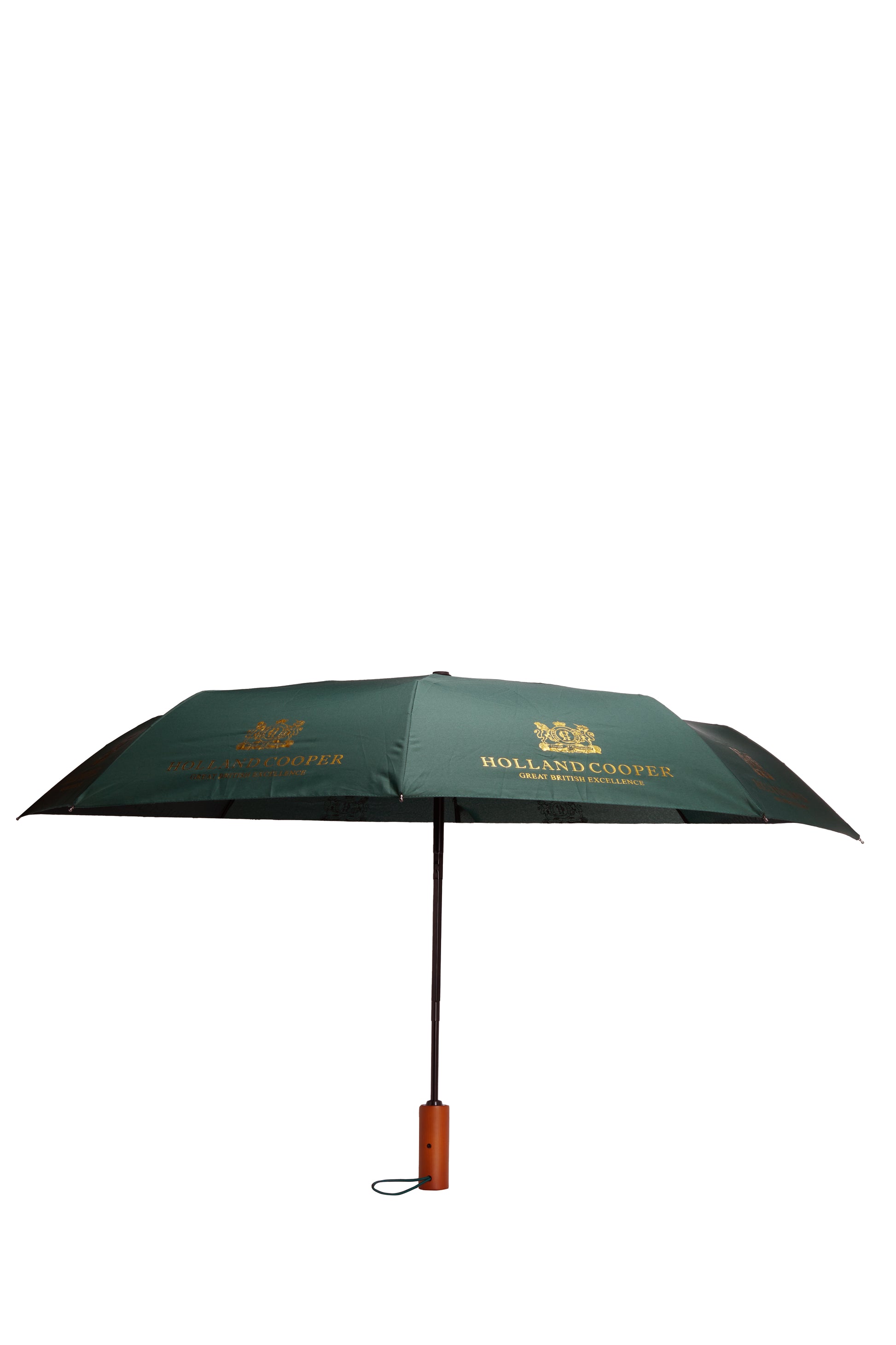Make rainy days shine with our compact telescopic umbrella. Crafted from 100% waterproof racing green fabric, each panel is adorned with our signature gold metallic branding. Perfectly handbag-sized, this umbrella collapses effortlessly into its monogram-printed sleeve, making it a chic and practical addition to your daily essentials.