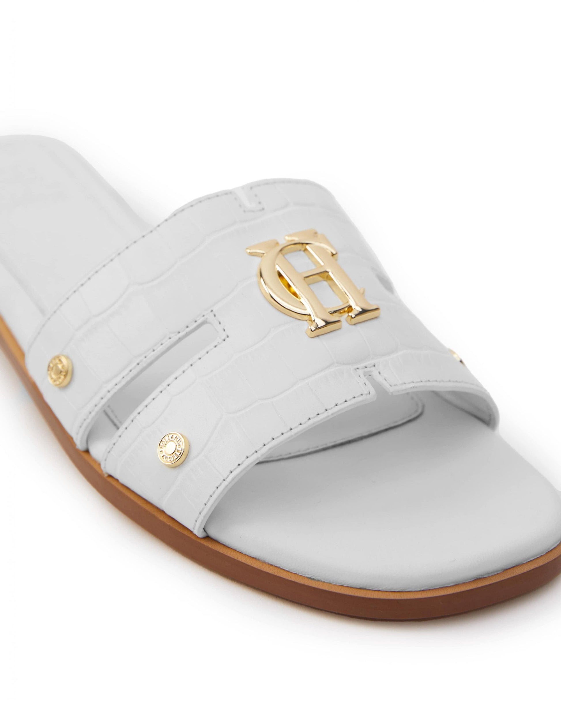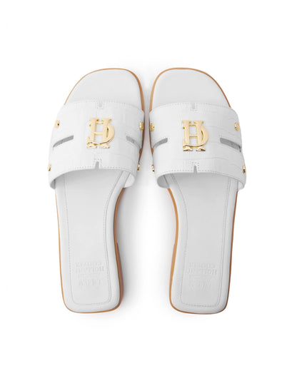 Introducing the new Monogram Sliders from Holland Cooper. Made for summer, they have been lovingly created from sumptuous leather, with a wide padded soft suede strap, and beautifully adorned with Holland Cooper's iconic gold hardware.
